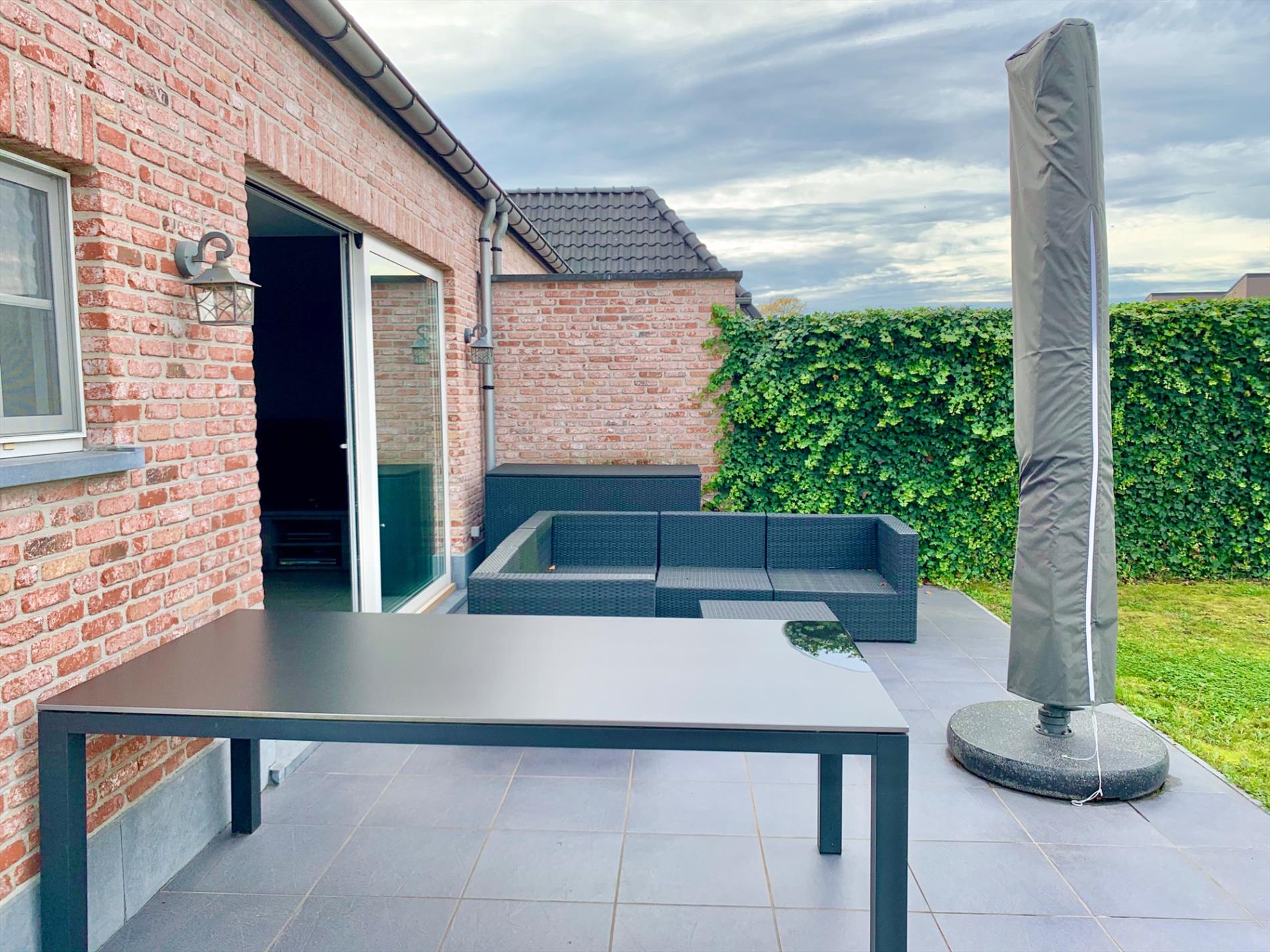 De oprit is voorzien van 2 autostaanplaatsen. Via de fraai aangelegde voortuin stapt u de inkomhal binnen. Aan de linkerzijde is er een apart bureau voorzien met nodige inbouwkasten, ideaal voor telewerk. Verder komt u aan het gastentoilet en aansluitend de enorm ruime, lichtrijke woonkamer met open keuken, voorzien van alle nodige toestellen. Van hieruit gaat u naar de zonovergoten en volledig afgesloten tuin die voorzien is van een tuinhuis, zijpoortje en een zeer groot terras.