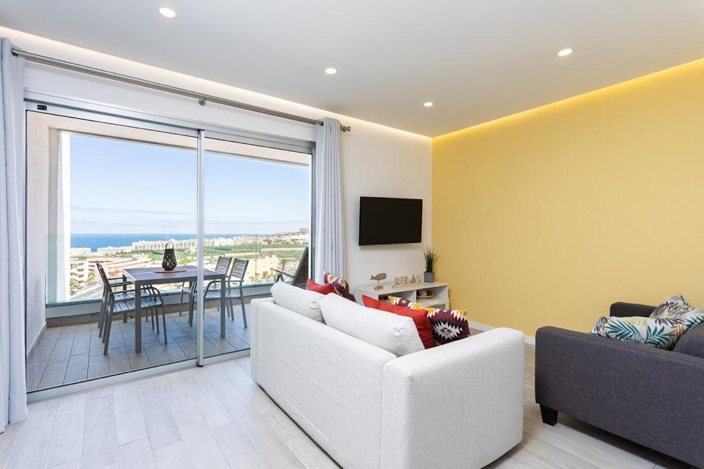 De penthouse heeft verder een volledig ingerichte ruime moderne open keuken met een gezellige woonkamer. Er is een terras met zicht op zee en op het naburige eiland La Gomera.