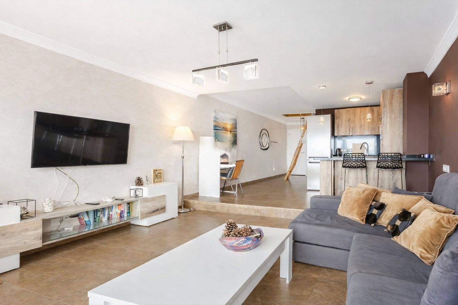 Dit penthouse bevindt zich in het gewilde Torviscas Alto, binnen het rustige en goed onderhouden complex Villas Canarias. Ref:I.H.S.APAR014 Met een oppervlakte van 80 m² biedt het een ruime open woonkamer met volledig uitgeruste keuken, twee comfortabele slaapkamers en een gerenoveerde badkamer van hoogwaardige afwerking. Het grote terras is perfect om te ontspannen, te genieten van de zon en te kijken naar het adembenemende uitzicht over de Atlantische Oceaan en het eiland La Gomera. Het complex beschikt over een gemeenschappelijk zwembad en groene zones, waardoor het een aangename woonomgeving biedt het hele jaar door. De ligging is ideaal: winkels, restaurants, supermarkten en de stranden van Costa Adeje zijn snel bereikbaar. Dit penthouse is een veelzijdige optie, geschikt als permanente woning, tweede huis of als aantrekkelijke investering. Wenst u graag meer informatie of een bezoek, contacteer ons via mail naar info@immo-home.be. Volg ons op Fb en insta. Meer info via www.immo-home.be. GRATIS SCHATTING GRATIS FINANCIEEL ADVIES
