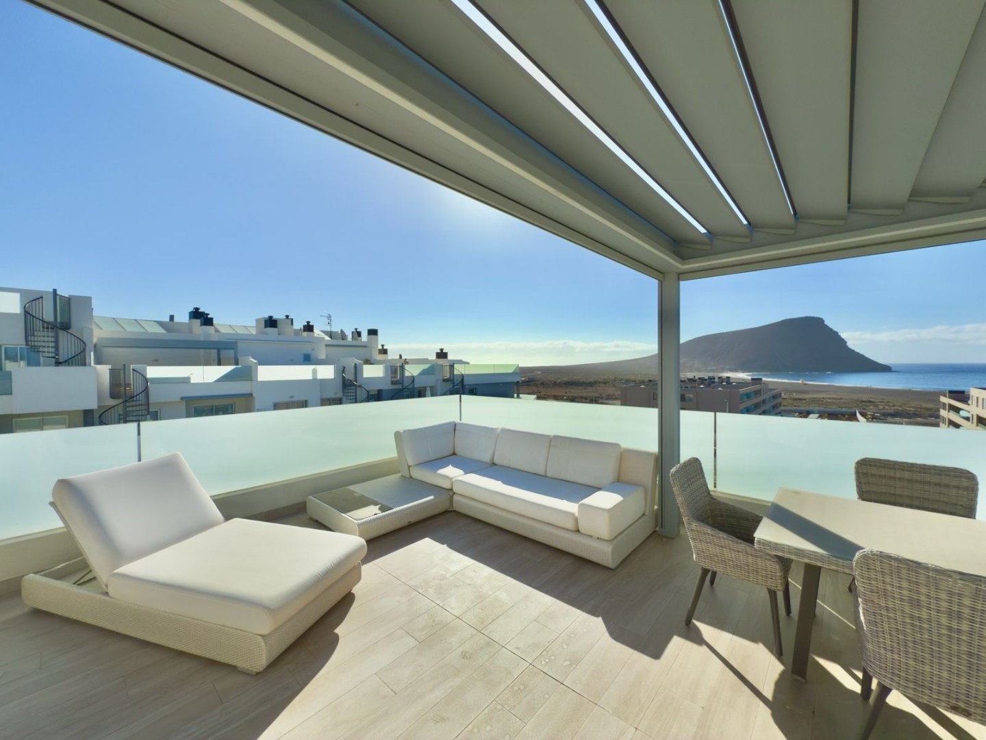 Maak kennis met een opmerkelijke penthousewoning in de gewilde enclave La Tejita, op slechts een steenworp afstand van een van de meest ongerepte stranden van Tenerife. I.H.S.: PENT001 Deze verfijnde woning, gelegen op de bovenste verdieping van een modern gebouw, biedt een bebouwde oppervlakte van 166 m² en combineert eigentijdse elegantie met een ontspannen leven aan de kust.