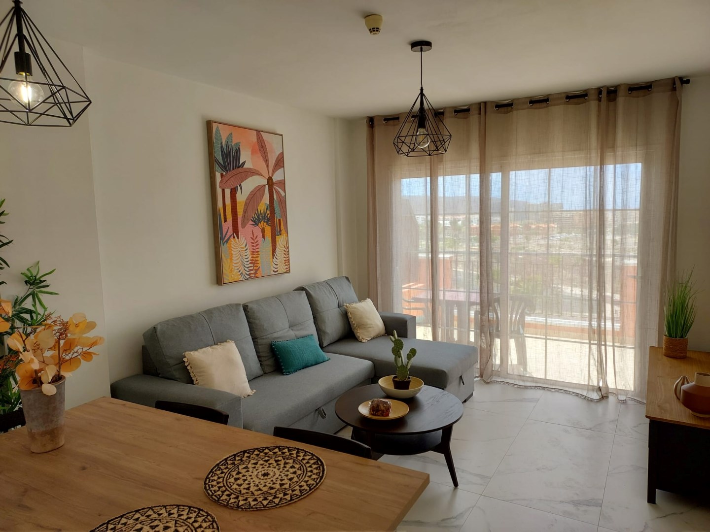 Schrijf u inGerenoveerde penthouse met uitzicht op zee in Granada Park. I.H.: 858 De woning heeft twee slaapkamers, een badkamer, volledig ingerichte keuken en een ruim zonnig terras met vrij uitzicht. een wenteltrap leidt naar het dakterras met uitzicht op zee.