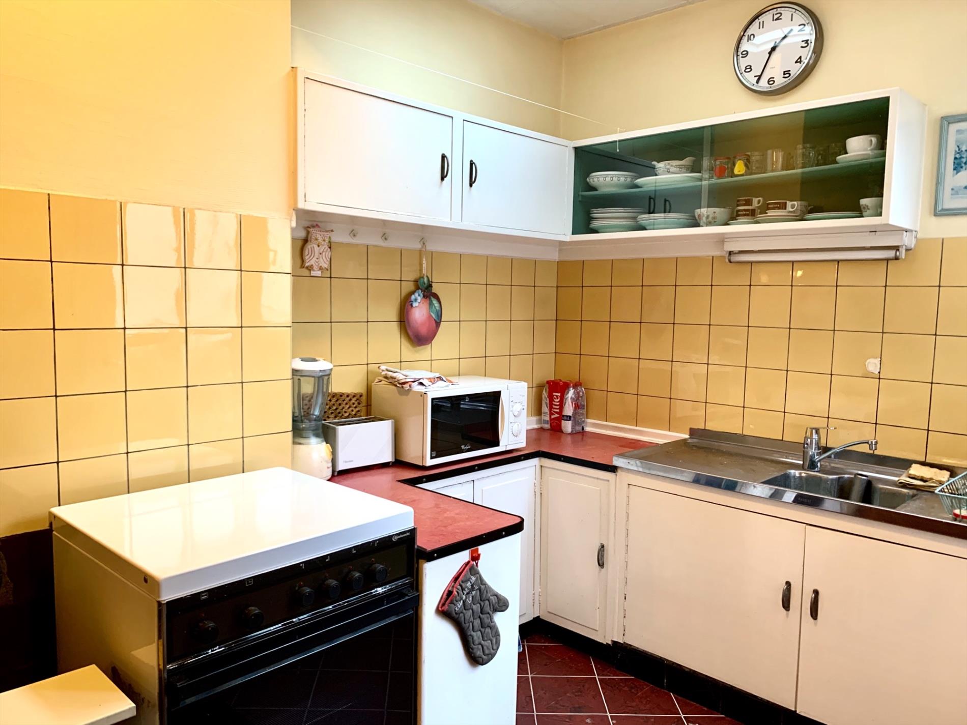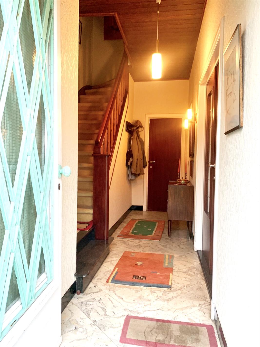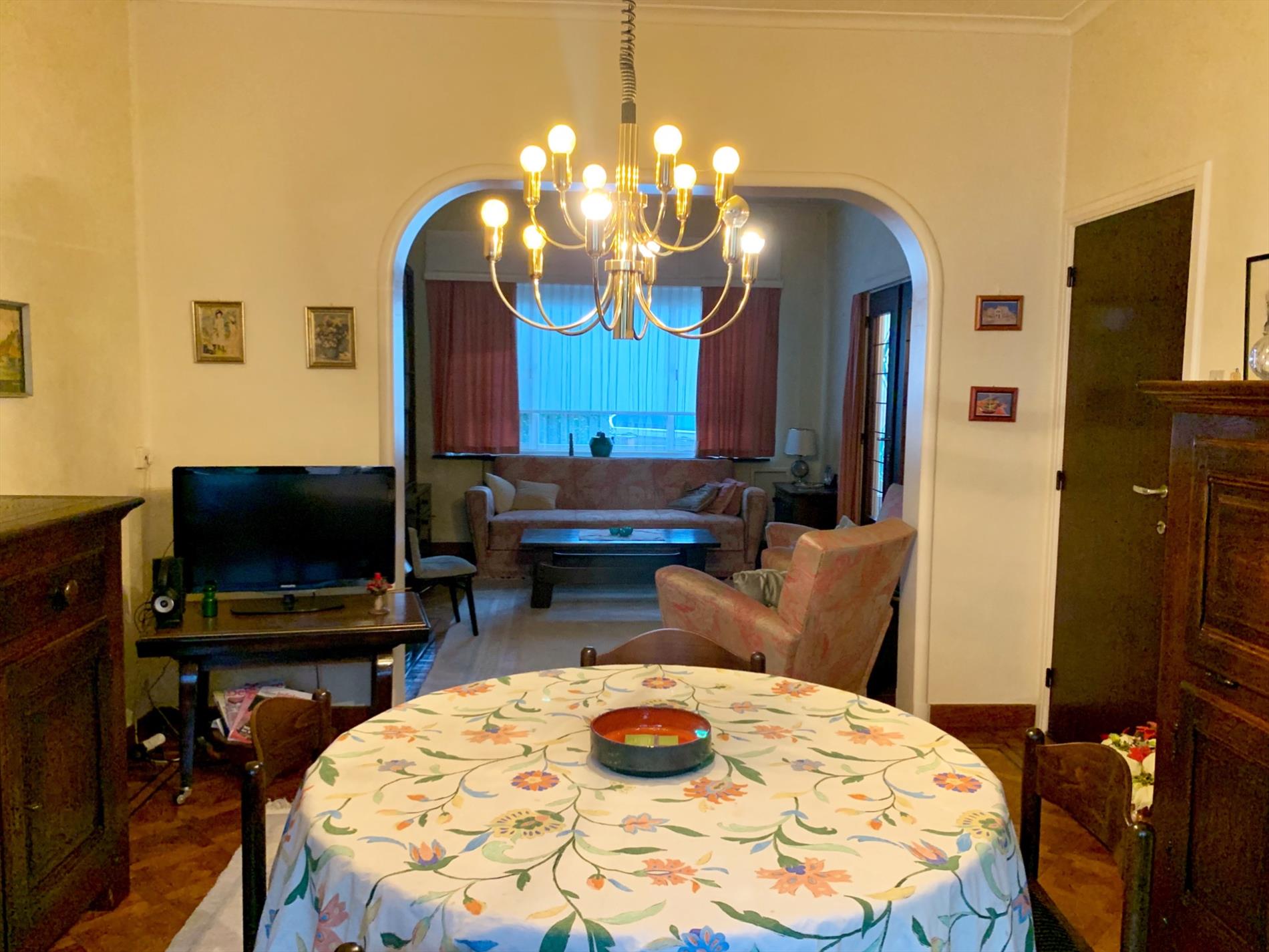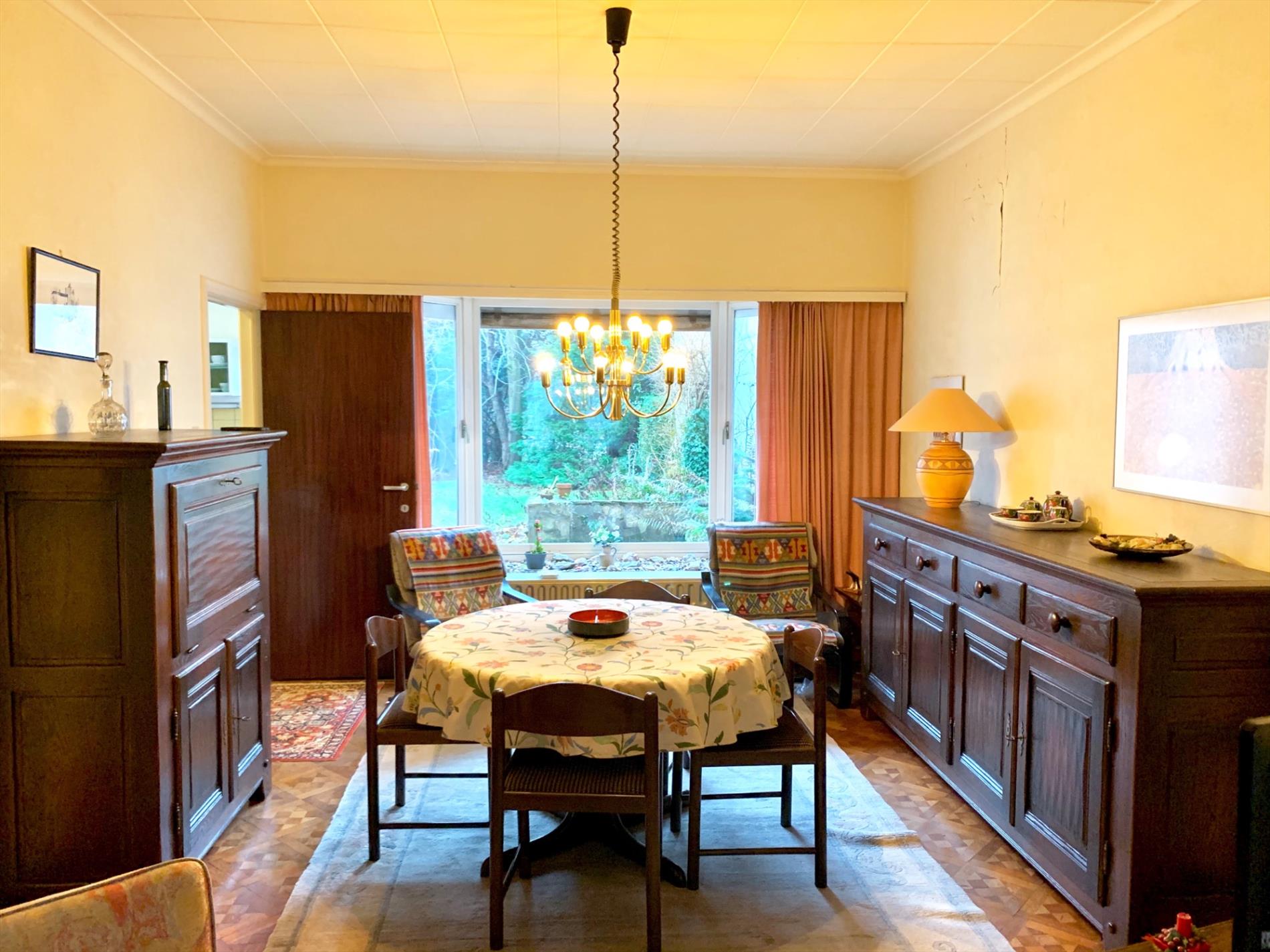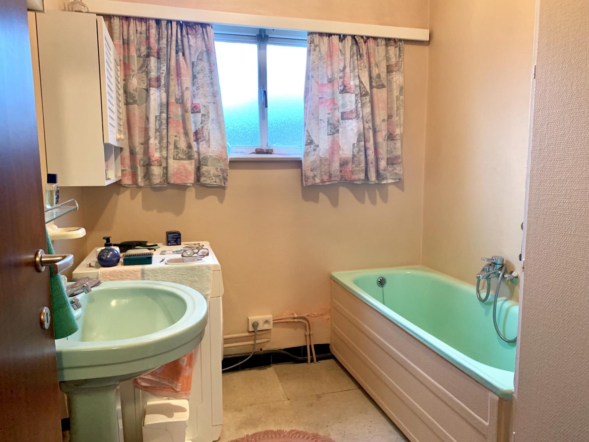 Schrijf u inDeze woning is mits enkele opfriswerken ideaal voor een gezin met kinderen. Via de voortuin kom je aan de ingang van de woning. De traphal is ruim en heeft een gastentoilet. Via de dubbele glazen deur komt u binnen in de zeer ruime woonkamer met veel lichtinval. Achteraan kijkt u uit op de tuin met terras. Aanpalend is de keuken met bijhorende enorm grote én droge kelder die uit 3 delen bestaat.