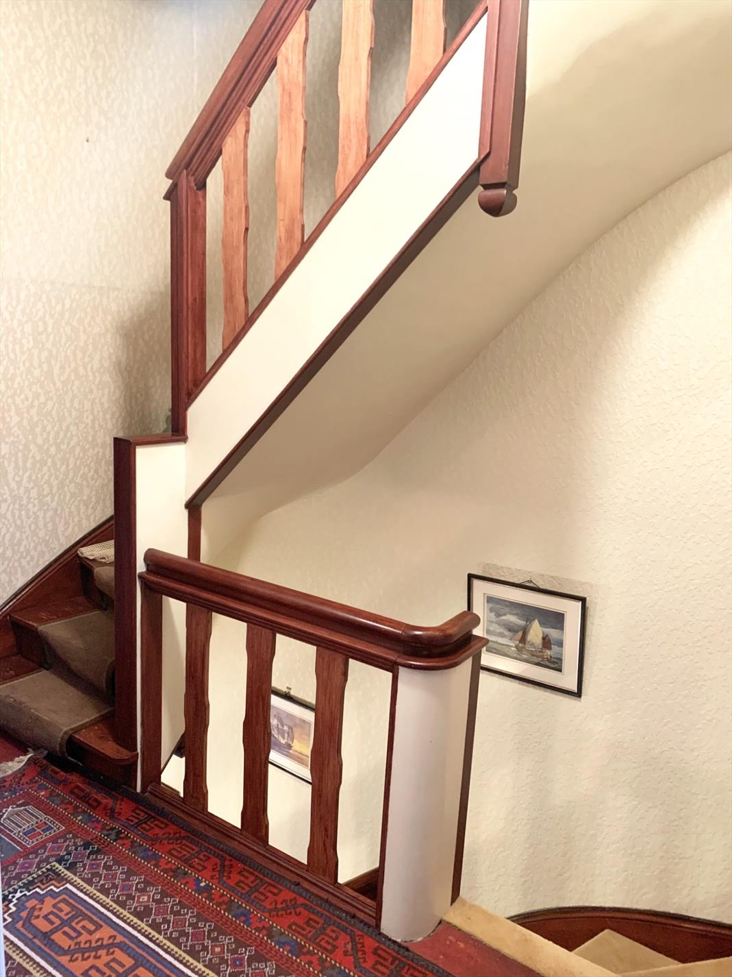 Via de keuken kan u naar het terras, tuin en buitenberging. Aan de andere zijde van de keuken komt u terug in de inkomhal terecht. Op de eerste verdieping bevinden zich 3 slaapkamers, 2 daarvan zijn immens groot en 1 iets kleinere. Ook de badkamer is op deze verdieping aanwezig met ligbad en lavabomeubel.