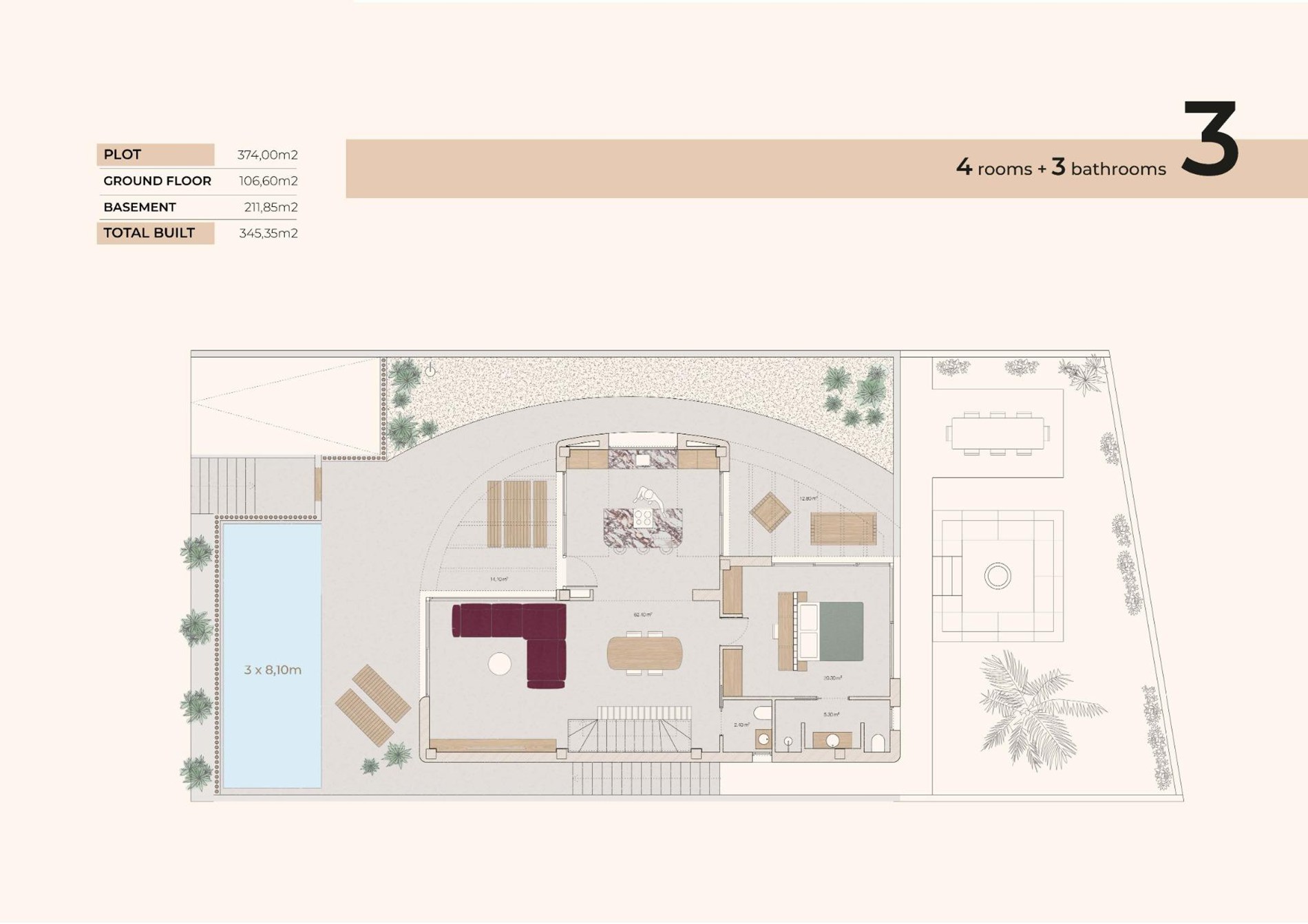 Nieuwbouwwoningen in La Finca Golf, Algorfa: moderne luxe in het hart van de Costa Blanca Exclusief project van 6 vrijstaande villa's Deze exclusieve collectie van zes nieuwbouwwoningen in La Finca Golf, Algorfa biedt een uitzonderlijke kans om te genieten van luxe, comfort en het mediterrane leven in een van de meest prestigieuze golfresorts aan de zuidelijke Costa Blanca. Deze eigentijdse woningen zijn ontworpen met het oog op elegantie en functionaliteit en beschikken over ruime interieurs, privétuinen en hoogwaardige afwerkingen. Elegant ontwerp en ruime indeling Elke villa is verdeeld over de begane grond en de kelder en biedt meer dan 300 m² woonoppervlak. De indeling omvat 4 slaapkamers, allemaal met en-suite badkamers, een extra gastentoilet en een lichte open keuken en woonkamer met directe toegang tot het terras en het zwembad. De kelder biedt een garage, wasruimte en berging, wat zorgt voor functionaliteit en gemak. Grote ramen laten veel natuurlijk licht binnen en creëren een naadloze verbinding tussen binnen- en buitenruimtes, perfect om het hele jaar door te genieten van het milde mediterrane klimaat. Premium voorzieningen en energie-efficiëntie Elke villa is gebouwd volgens de hoogste normen, met gebruik van hoogwaardige materialen en geavanceerde energie-efficiënte systemen: Volledig ingerichte keuken met apparatuur. Badkamers met vloerverwarming, inbouwkasten met spiegel en doucheschermen. Aerothermisch warmwatersysteem. Airconditioning met Airzone-regeling. 4 kW fotovoltaïsche zonnepanelen voor energiebesparing. Gemotoriseerde jaloezieën in de slaapkamers. LED-verlichting in het hele interieur en exterieur. Privézwembad en aangelegde tuin. Deze kenmerken zorgen voor maximaal comfort, duurzaamheid en een lage ecologische voetafdruk. Toplocatie in La Finca Golf Resort Deze villa's liggen in La Finca Golf Resort in Algorfa en genieten van een rustige en exclusieve omgeving, omgeven door natuur en golfbanen. Bewoners profiteren van nabijgelegen restaurants, een 5-sterrenhotel met spafaciliteiten en een verscheidenheid aan recreatiemogelijkheden. Afstanden tot belangrijke bezienswaardigheden: La Finca Golfbaan: 1200 m Strand van Guardamar del Segura: 13 km (15 minuten) Internationale luchthaven van Alicante: 35 minuten Almoradí, Benijófar, Ciudad Quesada: 5-10 km Torrevieja en Orihuela Costa: 15 minuten Ervaar de mediterrane golflevensstijl Deze nieuwbouwwilla's in La Finca Golf, Algorfa, combineren moderne architectuur, hoogwaardige afwerking en een onovertroffen locatie en zijn de perfecte woning voor golfliefhebbers en mensen die op zoek zijn naar rust in de buurt van de kust. Neem vandaag nog contact met ons op om een bezichtiging te regelen en uw nieuwe leven aan de Costa Blanca te ontdekken.