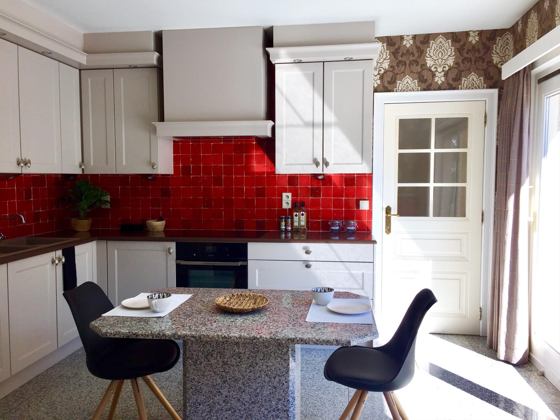 Van zodra u deze villa zal binnen wandelen zal u versteld staan van het enorme volume en prachtige uitzicht op de tuin. Deze woning biedt tal van mogelijkheden, zowel voor samengestelde gezinnen als voor een vrij beroep. De woning bestaat uit 2 delen met elk een aparte inkom. Het eerste gedeelte bestaat uit een lichtrijke inkomhal, gastentoilet,ruime woonkamer met aansluitend een nieuwe keuken met Amerikaanse koelkast/diepvriezer. Op de bovenverdieping bevinden zich 3 slaapkamers,waarvan 1 master bedroom. De badkamer is een pareltje met zijn mozaïeken en natuursteen en bestaat uit een ligbad/douche, dubbel lavabomeubel met ingemaakte kasten en toilet.