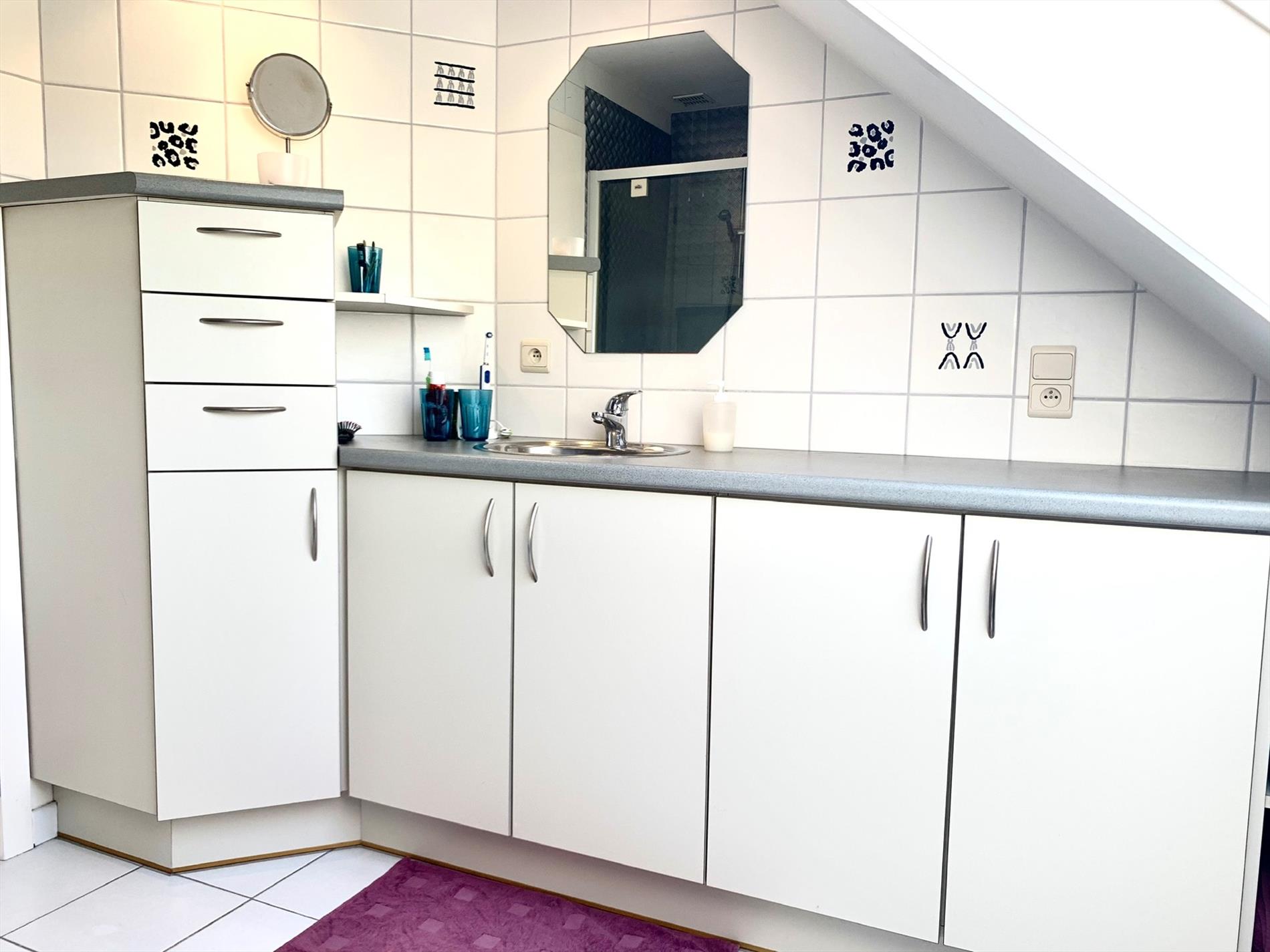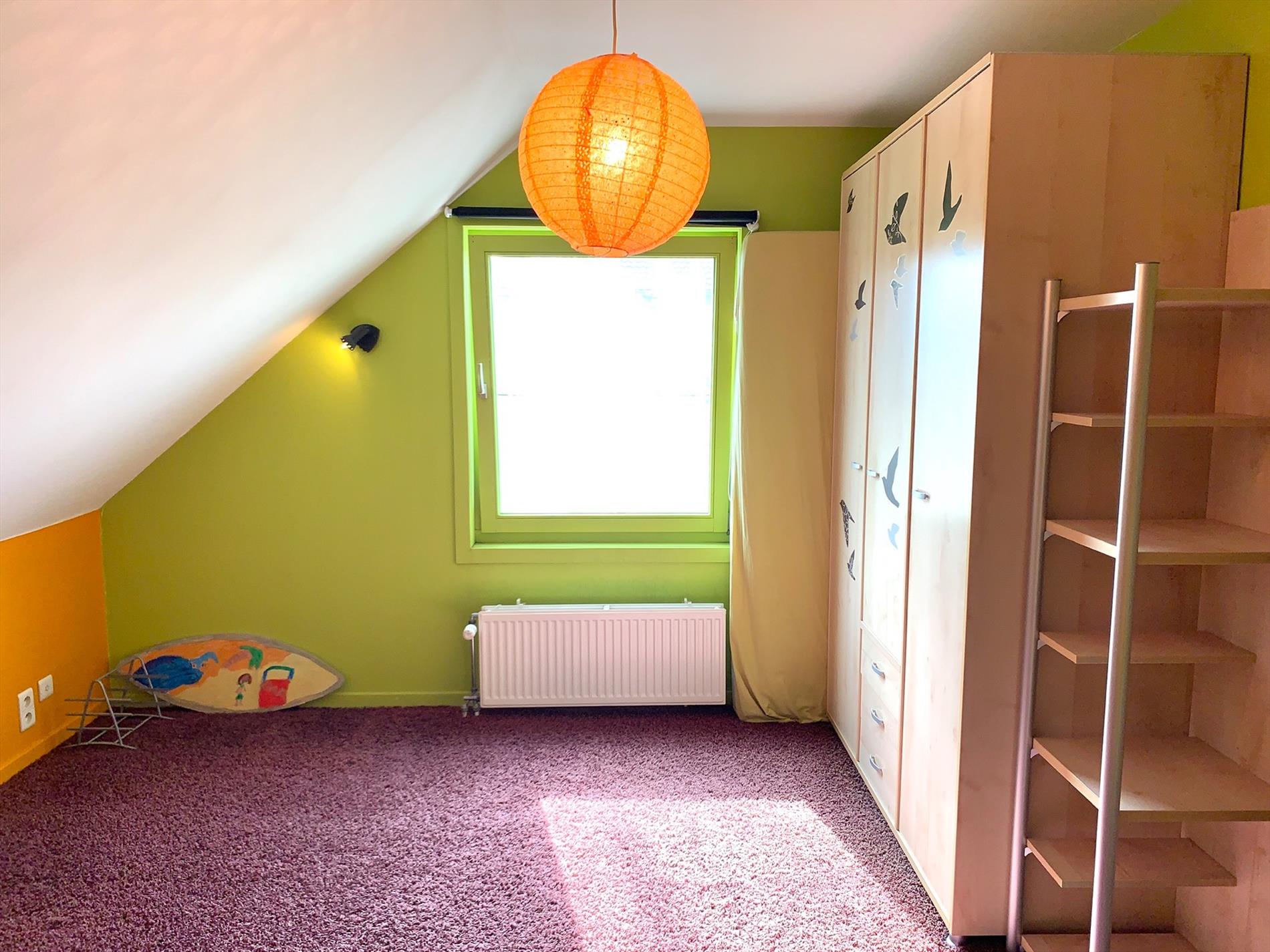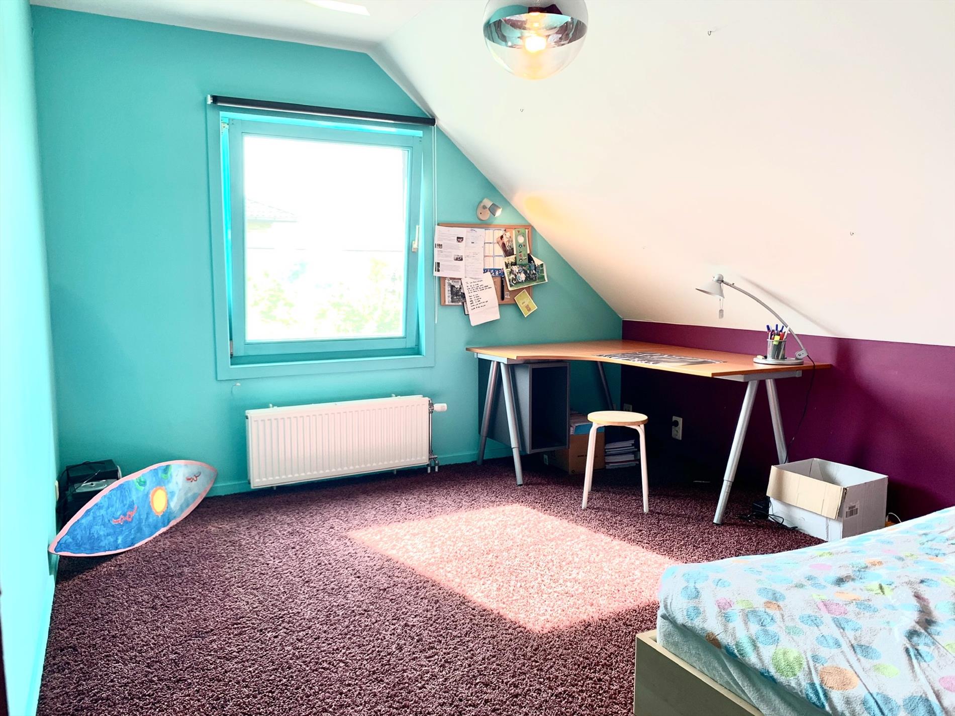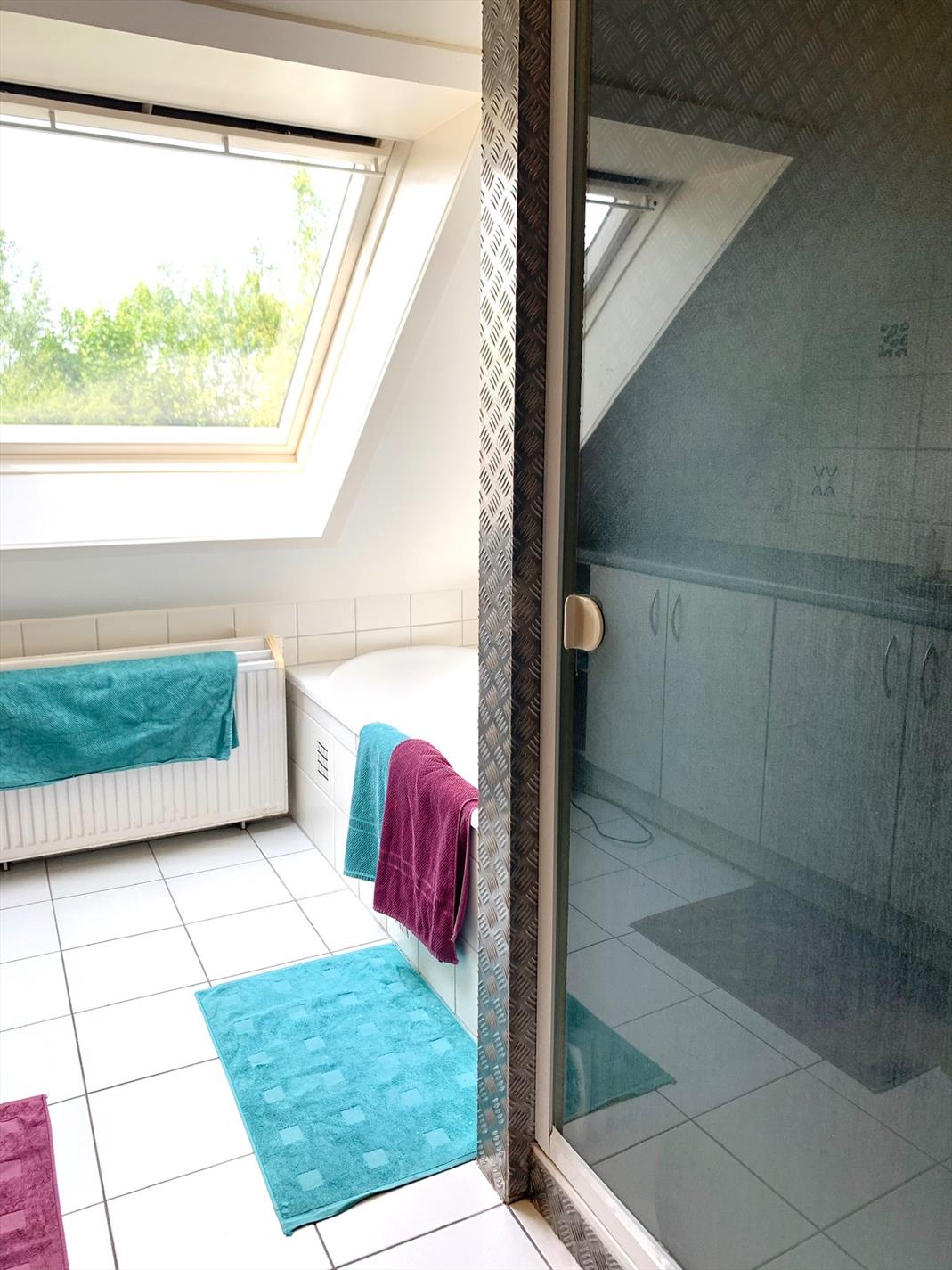 Langs de inkomhal met gastentoilet gaat u naar de eerste verdieping die voorzien is van 4 slaapkamers (16-12-9-9 m2), badkamer met ligbad, aparte douche, lavabo meubel en ladekasten. Het 2de toilet is apart. Op de 2de verdieping is een opbergzolder. Ook mogelijkheid om op bijgebouw extra ruimte bij te creëren.