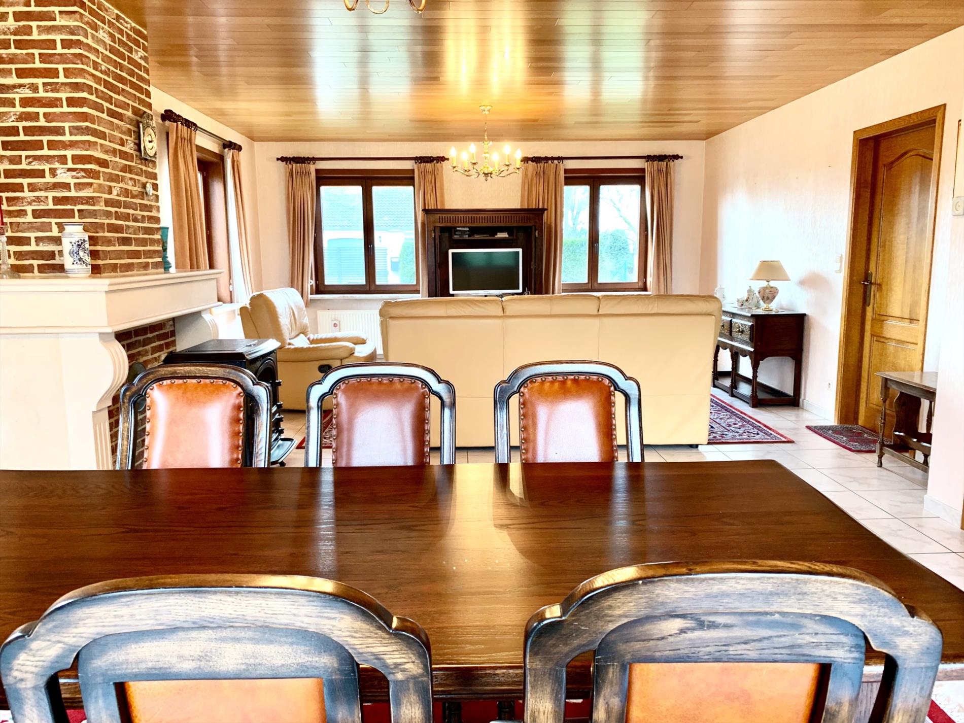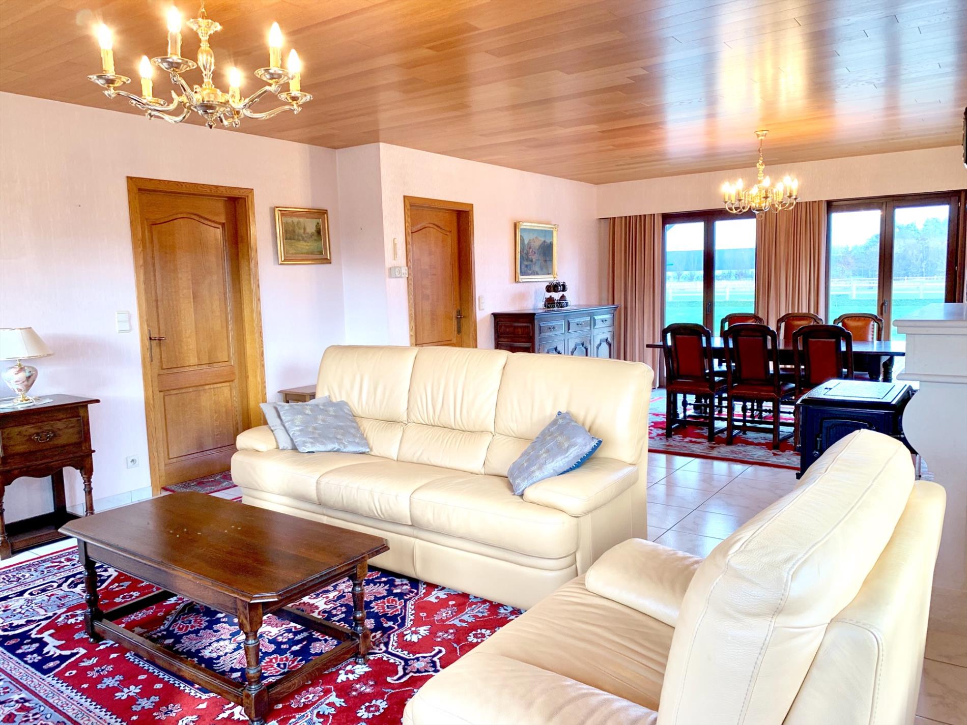Schrijf u inDeze residentieel gelegen villa heeft uitzicht op de achterliggende weilanden en een grote tuin met groot terras. Deze woning is ideaal voor grote gezinnen of bijberoepers. Het voordeel is dat de bovenverdieping nog niet helemaal is afgewerkt en naar keuze kan ingericht worden, de trap en eiken binnendeur zijn wel voorzien. Op de bovenverdieping kunnen nog 4 grote slaapkamers en een badkamer voorzien worden.