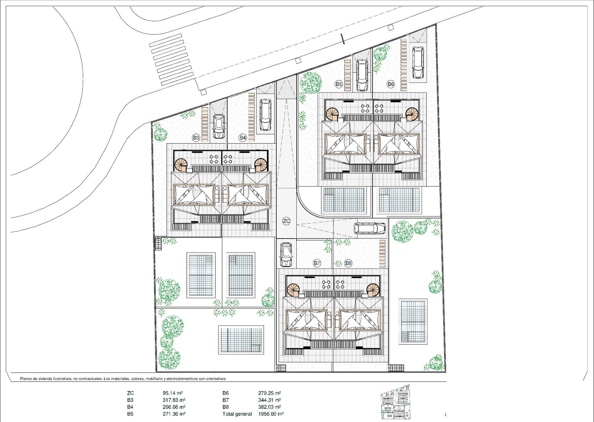 Moderne woningen met 3 ruime slaapkamers met ingebouwde kasten (de belangrijkste op de begane grond, met badkamer en kleedkamer en suite), 2 ruime badkamers, grote woon-eetkamer met open keuken, ruime terrassen.