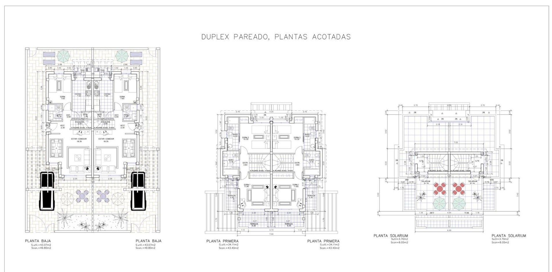 Moderne halfvrijstaande villa's met uitzicht op zee in Puerto de Mazarron Exclusieve nieuwe woningen vlakbij het strand Ontdek deze fantastische nieuwbouwwoningen in de gewilde wijk Mar de Plata, El Alamillo, in Puerto de Mazarron. Deze moderne woningen liggen op slechts 350 meter van het strand en bieden vanuit hun eigen solarium een prachtig uitzicht op zee. Ze bieden een unieke kans om te genieten van de mediterrane levensstijl aan de Costa Calida. De buurt is rustig, residentieel en goed ontwikkeld, ideaal om het hele jaar door te wonen of als vakantieverblijf. Ruime indeling met eigen solarium Elke villa heeft een bebouwde oppervlakte van 101 m² op een hoekperceel van 126 m², verdeeld over twee verdiepingen plus een solarium. Op de begane grond vindt u een lichte woonkamer, een aparte keuken met toegang tot de achterzijde van het perceel, een tweepersoonsslaapkamer en een complete badkamer. De eerste verdieping beschikt over twee slaapkamers, één met toegang tot twee terrassen met vrij uitzicht en de andere met een eigen badkamer, plus een extra familiebadkamer. De bovenste verdieping is gewijd aan een privésolarium van 31 m² met een prachtig uitzicht op zee, perfect om te zonnebaden, buiten te eten of te ontspannen met vrienden. Buitenruimte en gemeenschappelijk zwembad De buitenruimte omvat een hoekperceel met ruimte voor privé-parkeergelegenheid aan de zijkant en een wasruimte aan de achterzijde. Het wooncomplex beschikt ook over een gemeenschappelijk zwembad, waardoor een aangename omgeving wordt gecreëerd waar gezinnen en bewoners in een veilige en vriendelijke omgeving van hun vrije tijd kunnen genieten. Hoogwaardige specificaties Deze woningen zijn gebouwd met hoogwaardige materialen en zijn voorzien van een versterkte toegangsdeur, voorinstallatie voor airconditioning, badkamers met meubilair, spiegels en doucheschermen, warmwatersysteem op basis van aerothermische energie, elektrische jaloezieën in de slaapkamers en de openingen aan de voorgevel, en aluminium buitenschrijnwerk met dubbele beglazing. De keuken wordt zonder meubilair opgeleverd, zodat kopers deze naar eigen smaak kunnen inrichten. Leven in Puerto de Mazarron Puerto de Mazarron is een van de aantrekkelijkste kustplaatsen in de regio Murcia, bekend om zijn prachtige stranden, kristalheldere water, charmante jachthaven en ontspannen sfeer. Het gebied biedt uitstekende voorzieningen, winkels, restaurants, scholen, medische centra en mogelijkheden voor buitenrecreatie. Nabijgelegen natuurgebieden zoals de Sierra de las Moreras zijn perfect om te wandelen en te fietsen, terwijl watersportliefhebbers kunnen genieten van zeilen, duiken en kajakken. Afstanden tot bezienswaardigheden Playa Negra 0,35 km Jachthaven van Mazarron 2 km Winkelcentrum Mazarron Park 5 km Camposol Golf 25 km Hacienda del Alamo Golf 35 km Cartagena 35 km Murcia 70 km Luchthaven Murcia Corvera 45 km Uw huis aan de kust wacht op u Deze nieuw gebouwde halfvrijstaande villa's in Puerto de Mazarron combineren uitzicht op zee, modern design en een onovertroffen locatie dicht bij het strand en alle voorzieningen. Neem vandaag nog contact met ons op voor meer informatie of om een privébezichtiging te regelen.