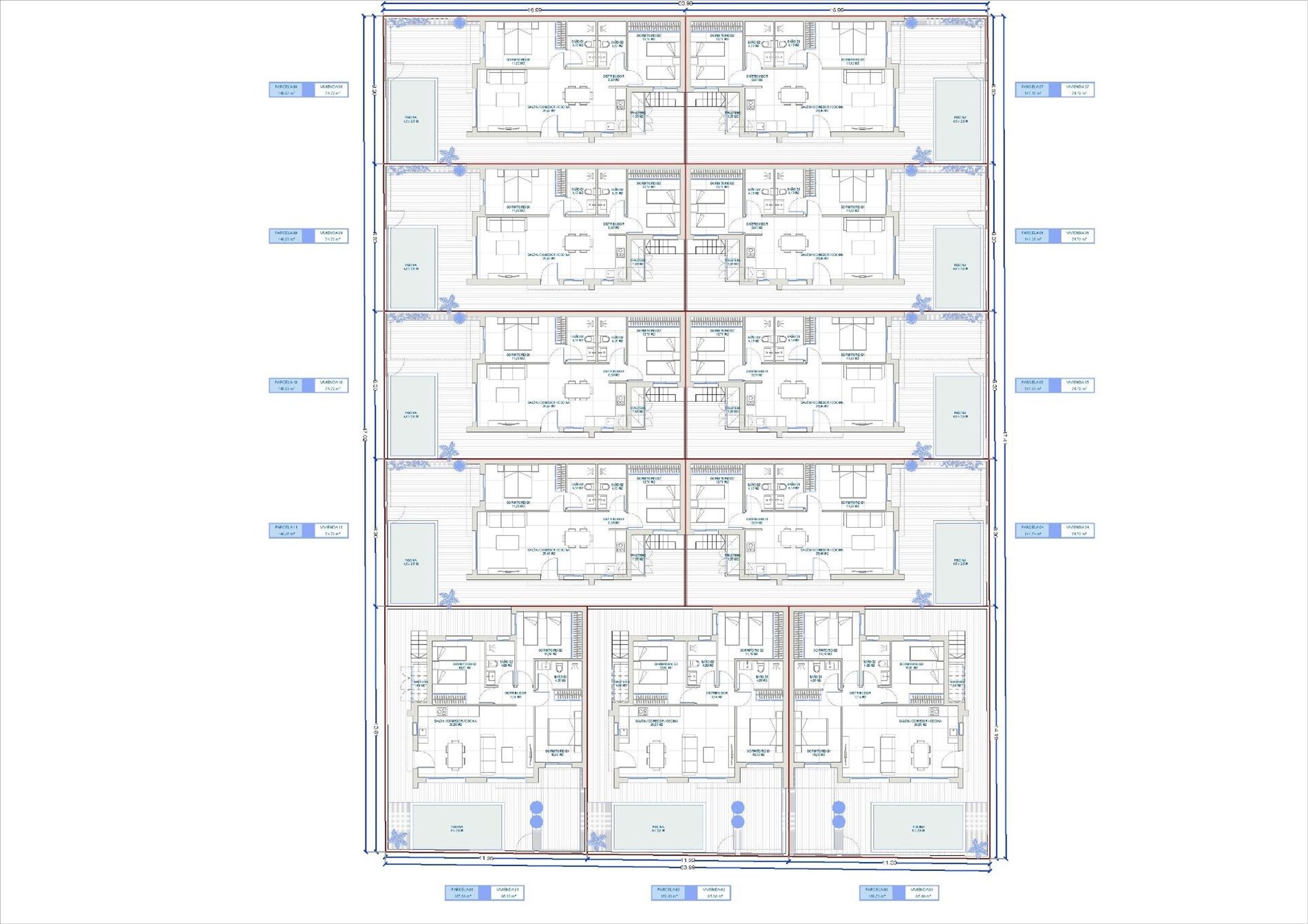 Alle villa's hebben een eigen tuin met zwembad en parkeerplaats.