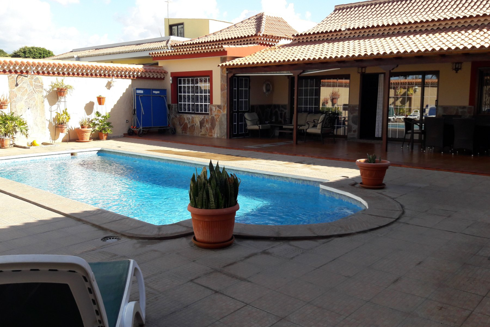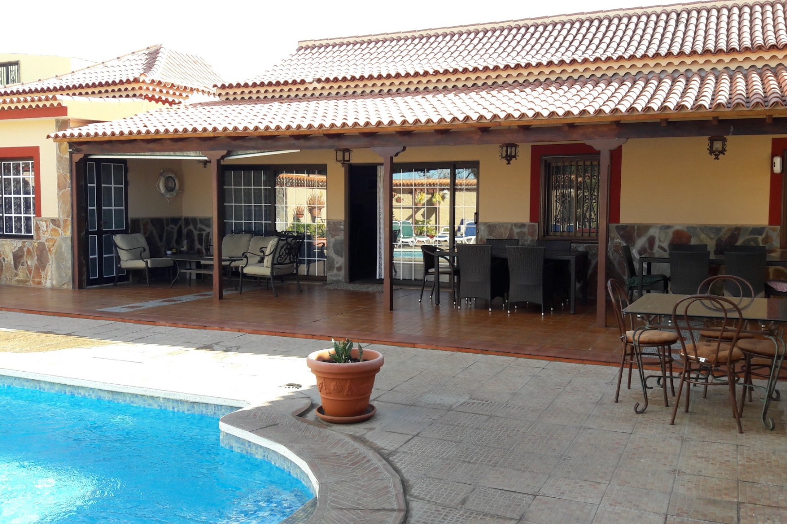 Prachtig Canarisch huis met 8 slaapkamers, 3 badkamers, woonkamer, aparte keuken, grote kelder (garage), tuin, enorm terras met privé zwembad en barbecueplaats. I.H.: 608 Op het perceel is er ook een gastenappartement met 1 slaapkamer, 1 badkamer en kitchenette. In de prijs is een perceel landbouwgrond naast het huis van 1320m² inbegrepen. Het eigendom is gelegen nabij het vissersdorp Las Galletas. De Finca heeft een toeristische vergunning en wordt met veel succes verhuurd. Voor meer info mail naar info@immo-home.be. Volg ons op Fb en Insta. GRATIS SCHATTING & GRATIS FINANCIEEL ADVIES