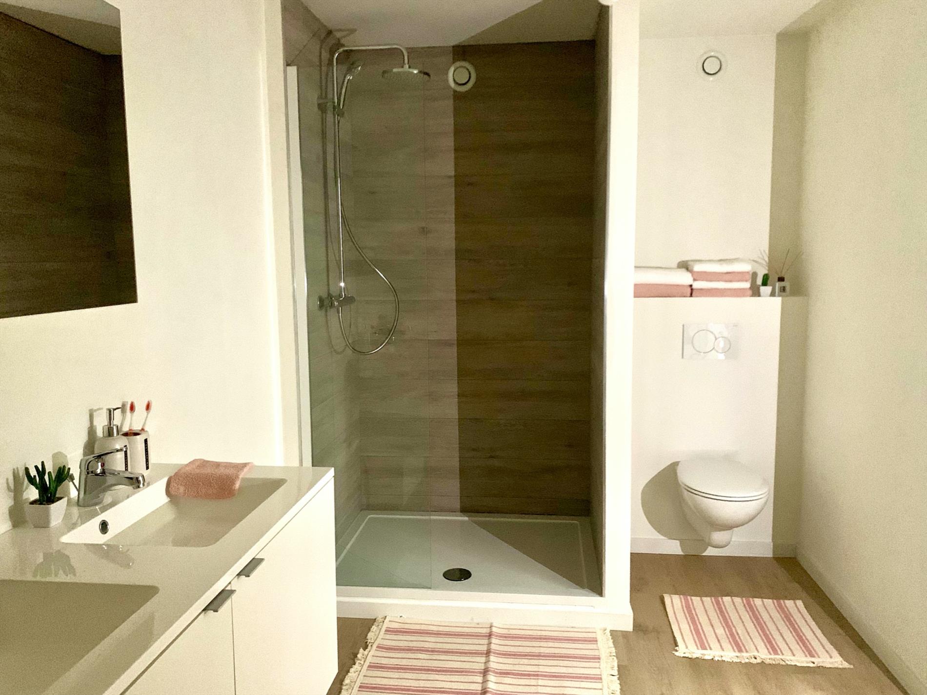 Op de 1ste verdieping bevindt zich de nieuwe uitgeruste badkamer met inloopdouche , dubbel lavabomeubel en 2de toilet. Op deze verdieping zijn ook 2 grote slaapkamers.