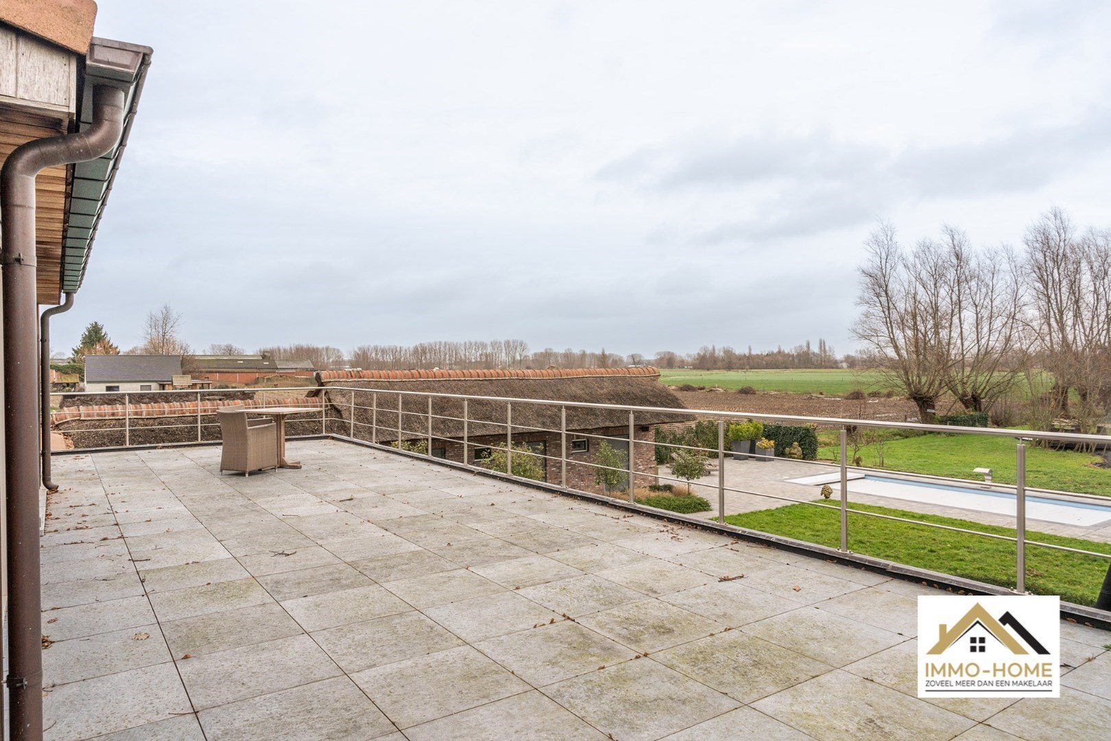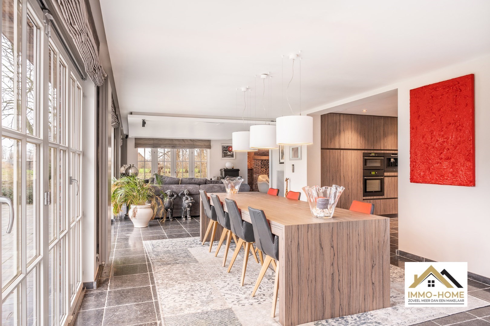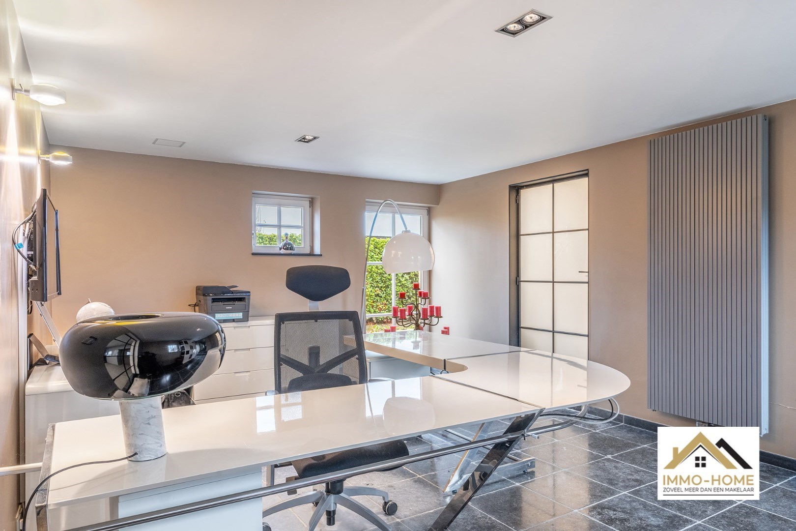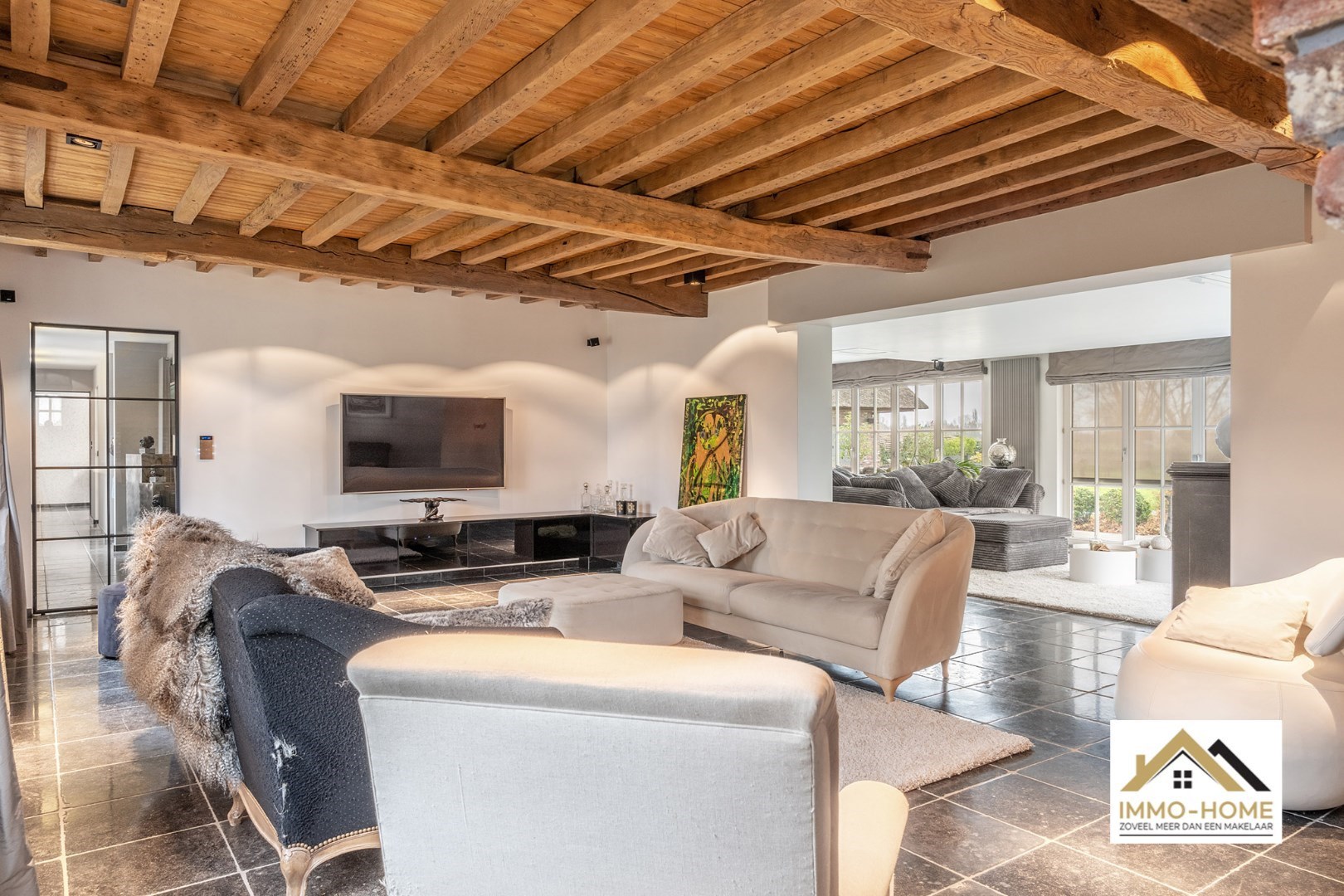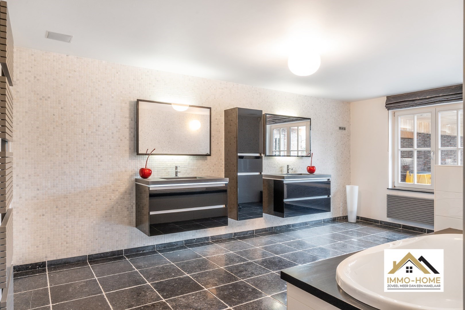 Schrijf u inDeze riante villa, EPC B-label, ontvangt je in stijl : de automatische poort opent de weg naar een leuk binnenplein, en zo kom je tot in de inkomhal van het hoofdgebouw. Overal zijn klassevolle zwartstalen glazen deuren aanwezig, en die brengen je tot in de grote leefruimte met een luxueuze open keuken. Werkelijk alle mogelijke moderne apparatuur is aanwezig, en je geniet overal van het magistrale landelijke uitzicht en contact met zowel tuin als terras. Er is eveneens een gezellige zithoek, waar de grote schouwmantel met alle aandacht gaat lopen. Verder op het gelijkvloers : een gastentoilet, een eerste badkamer met grote inloopdouche en ligbad , een bureelruimte (of derde slpkmr), technisch lokaal en een dubbele garage. Op de eerste verdieping, waar je in de ene vleugel via een leeskamer tot in de master bedroom komt, heeft u aanpalend een eigen badkamer met inloopdouche en een topdressing! Vanuit de slaap-en badkamer heb je ook toegang tot het tweede terras. In de andere vleugel is er een grote polyvalente ruimte, met achterliggend een tweede slaapkamer. In de tuin zijn er nog een paar bijzondere extra troeven aanwezig : zo is er niet alleen een zwembad, je beschikt er ook over een complete eigen wellness-ruimte met sauna, Turks stoombad, een jacuzzi en een doucheruimte. Aanpalend ook een buitenkeuken met overdekt terras. Helemaal achteraan is er een enorm ruime parkeerplaats, en een tuinhuis biedt nog wat extra opslagruimte. Inschrijvingen via mail voor bezoek naar info@immo-home.be, geen telefonische inschrijvingen! Volg ons op Fb en insta. Voor meer info: www.immo-home.be , GRATIS SCHATTING GRATIS - FINANCIEEL ADVIES