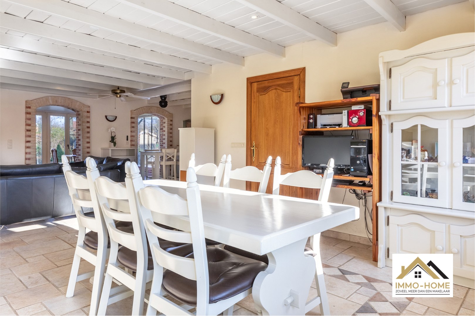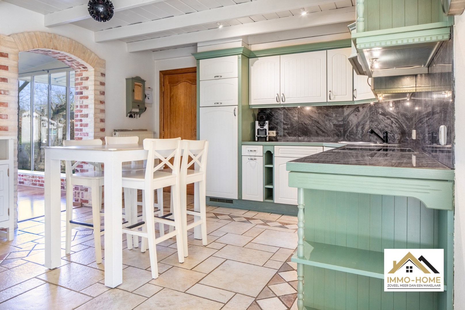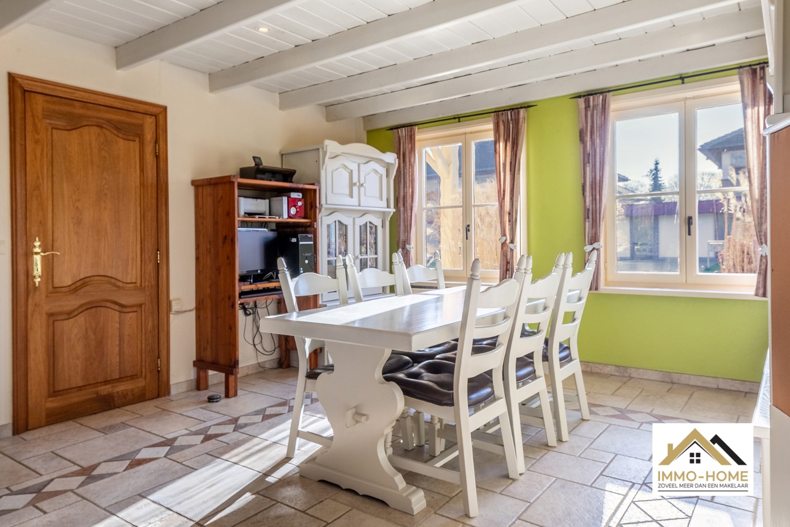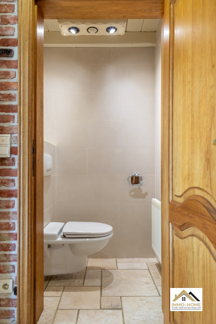 Schrijf u inOntdek deze charmante villa in fermette stijl, genesteld in een serene woonwijk te Berlare. De gevel, versierd met rustieke elementen, ademt een tijdloze landelijke elegantie uit, die u onmiddellijk verwelkomt. Binnen in de woning vindt u een traphal met rustieke tegels en bakstenen muren. De aanwezigheid van een stijlvolle trap en een apart toilet voorzien van een handige lichtsensor, onderstreept het oog voor detail in deze woning. Alle binnendeuren zijn gemaakt van eikenhout. De woonkamer is voorzien van een wit balkenplafond en geniet van veel natuurlijk licht. Er is een openhaard en een zithoek met tv, waardoor de ruimte een comfortabele plek is om te ontspannen. Een sfeervolle openhaard en een knusse tv-zithoek zorgen voor gezellige avonden, terwijl u geniet van het uitzicht op de prachtig ingerichte houten keuken. De frisse groentinten en de mogelijkheid tot plaatsing van een keukentafel maken de keuken tot het hart van het huis. Een van de hoogtepunten van deze woning zijn de met ruwe baksteen afgewerkte arcade doorgangen die leiden naar de verlichte veranda. Deze ruimte, met vensters over de volledige lengte, functioneert als een buitenliving waar u zowel in de zomer als in de winter van uw tuin kunt genieten. De eerste verdieping herbergt vier lichtrijke slaapkamers, alle voorzien van ruime vensters en het kenmerkende witte balkenplafond. De badkamer beschikt over een lavabo, bad, douche en toilet, en is afgewerkt met zuidelijke tegels en hout. De buitenruimte van deze woning is minstens even indrukwekkend, met een ruime tuin, een houten tuinchalet, een overdekte patio en een terras. Een carport en extra parkeerplaats naast het huis bieden voldoende ruimte voor uw voertuigen. Met zonnepanelen op het dak combineert deze woning duurzaamheid met elegantie, en belooft een unieke woonervaring in een idyllische omgeving. ASBEST VEILIG & GEEN RENOVATIE PLICHT!!!! Bezoekdag 06/04/2024 inschrijvingen via mail naar tommy@immo-home.be, geen telefonische inschrijvingen! Volg ons op Fb en insta. Voor meer info: www.immo-home.be GRATIS SCHATTING GRATIS FINANCIEEL ADVIES
