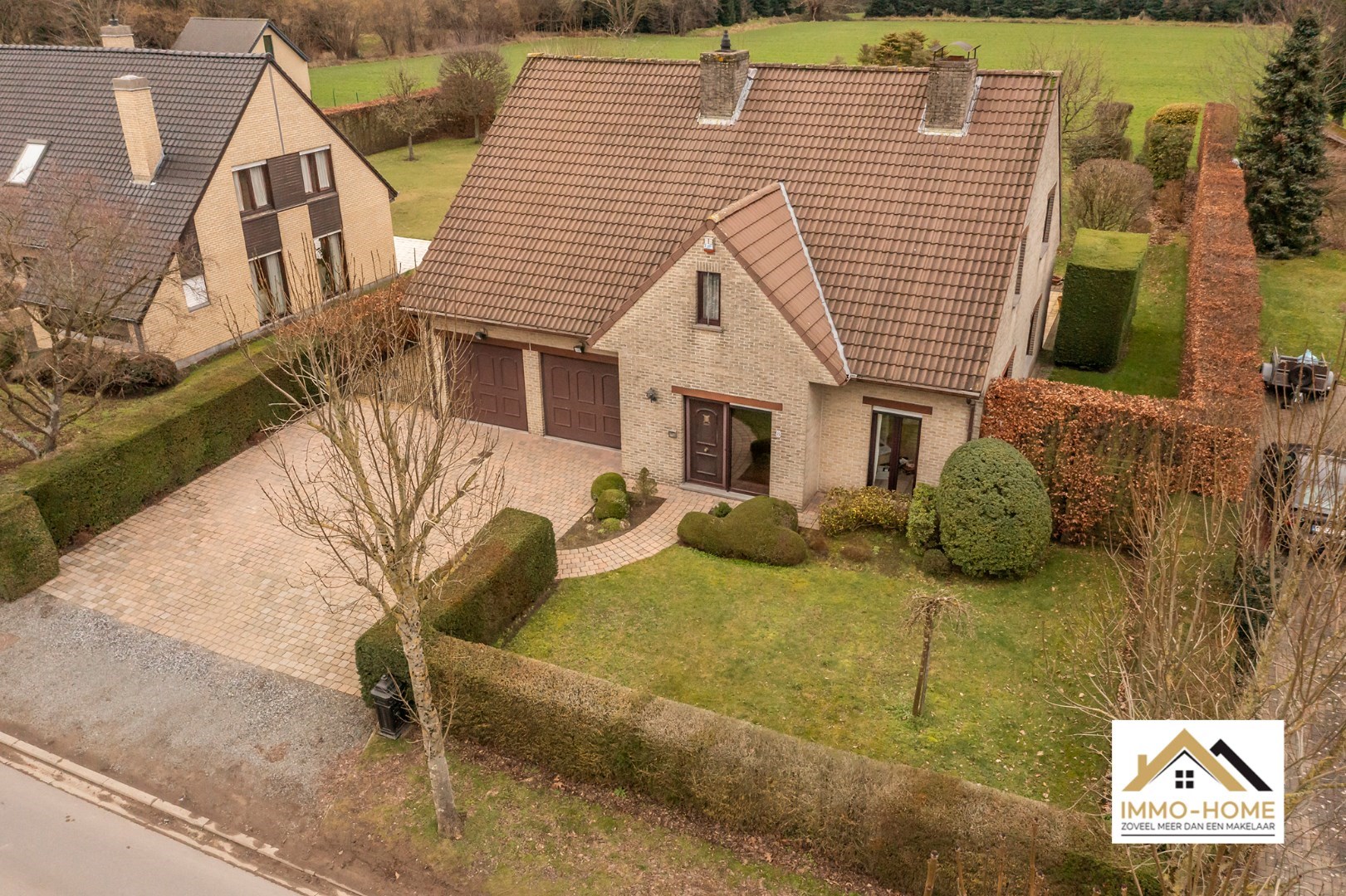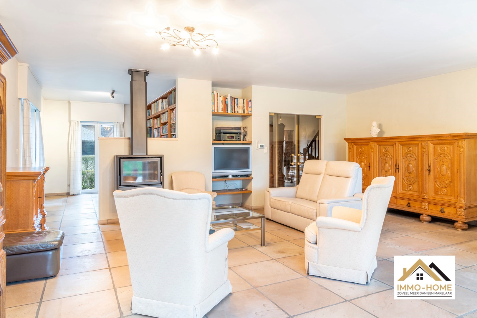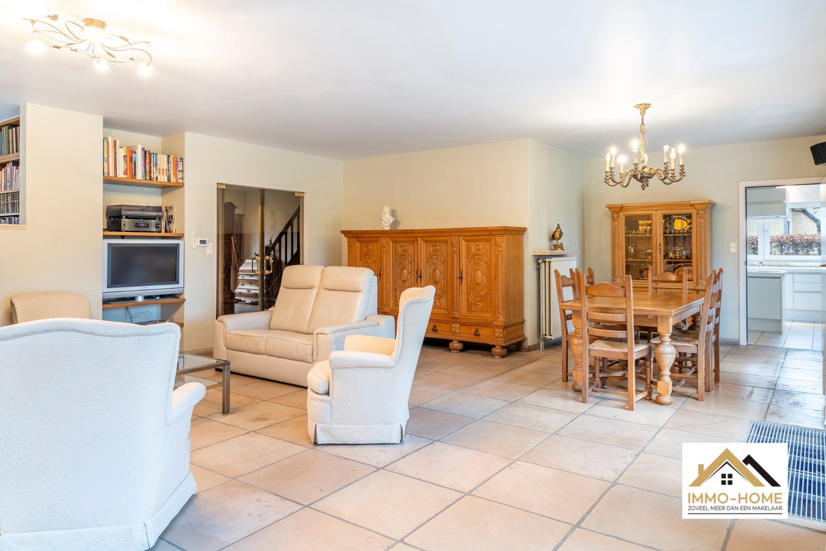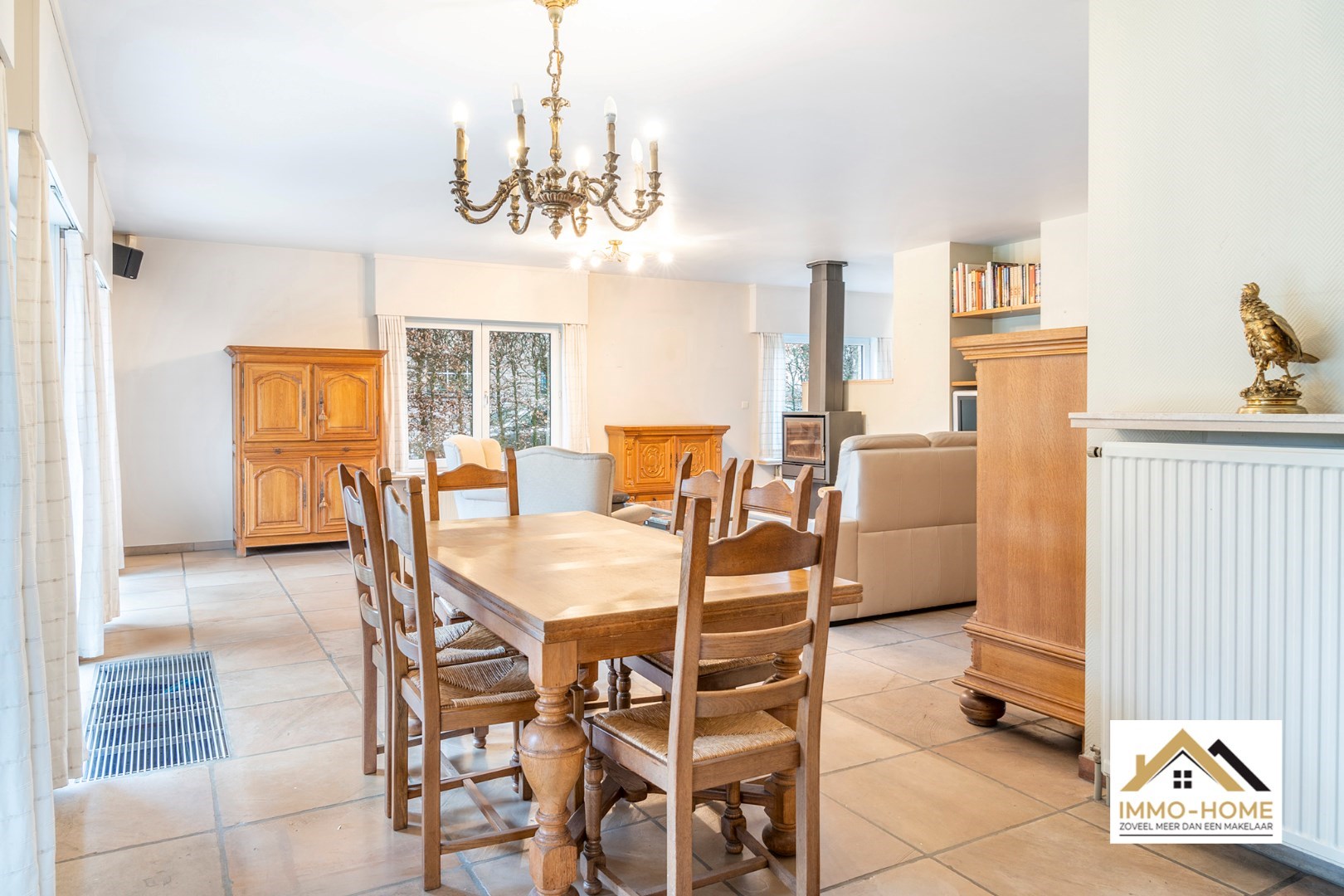 Schrijf u inDeze riante woning met EPC-label B! ontvangt je in stijl in een ruime inkomhal met gastentoilet en ingemaakte vestiaire. Via een dubbele glazen deur kom je in de grote lichtrijke leefruimte, waar een haard voor extra sfeer zorgt. De aangename leeshoek/bibliotheek is een extra bonus, net als het zicht op de tuin rondom. De aanpalende keuken is voorzien van een kookeiland, en beschikt over een ruime koele berging. Naast de keuken is er een grote wasplaats met wandhoge kasten en een afzonderlijke bijkomende werkruimte. “Groot” is in deze woning trouwens het codewoord : ook de dubbele garage (met directe toegang tot zowel de keuken als de inkomhal) met elektrische poorten is riant. Op de eerste verdieping is er rond de centrale gang (met een tweede toilet) plaats voor vijf grote slaapkamers. Er is een kleine badkamer aan één kant van de gang, en de master bedroom beschikt over een en-suite badkamer met ligbad, douche en een derde toilet. Bovenop dit alles is er bergruimte in overvloed op de zolder. Inschrijvingen via mail naar tommy@immo-home.be , geen telefonische inschrijvingen! Volg ons op Fb en insta. Voor meer info: www.immo-home.be