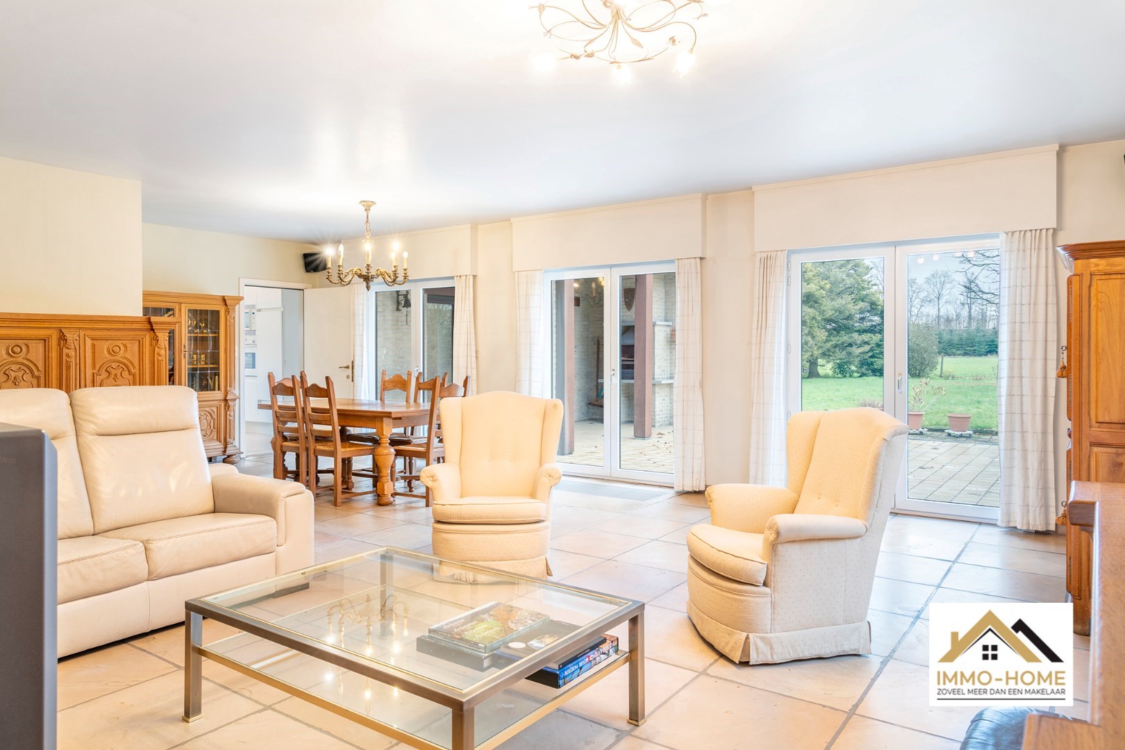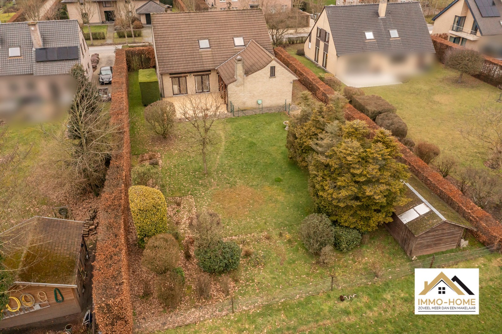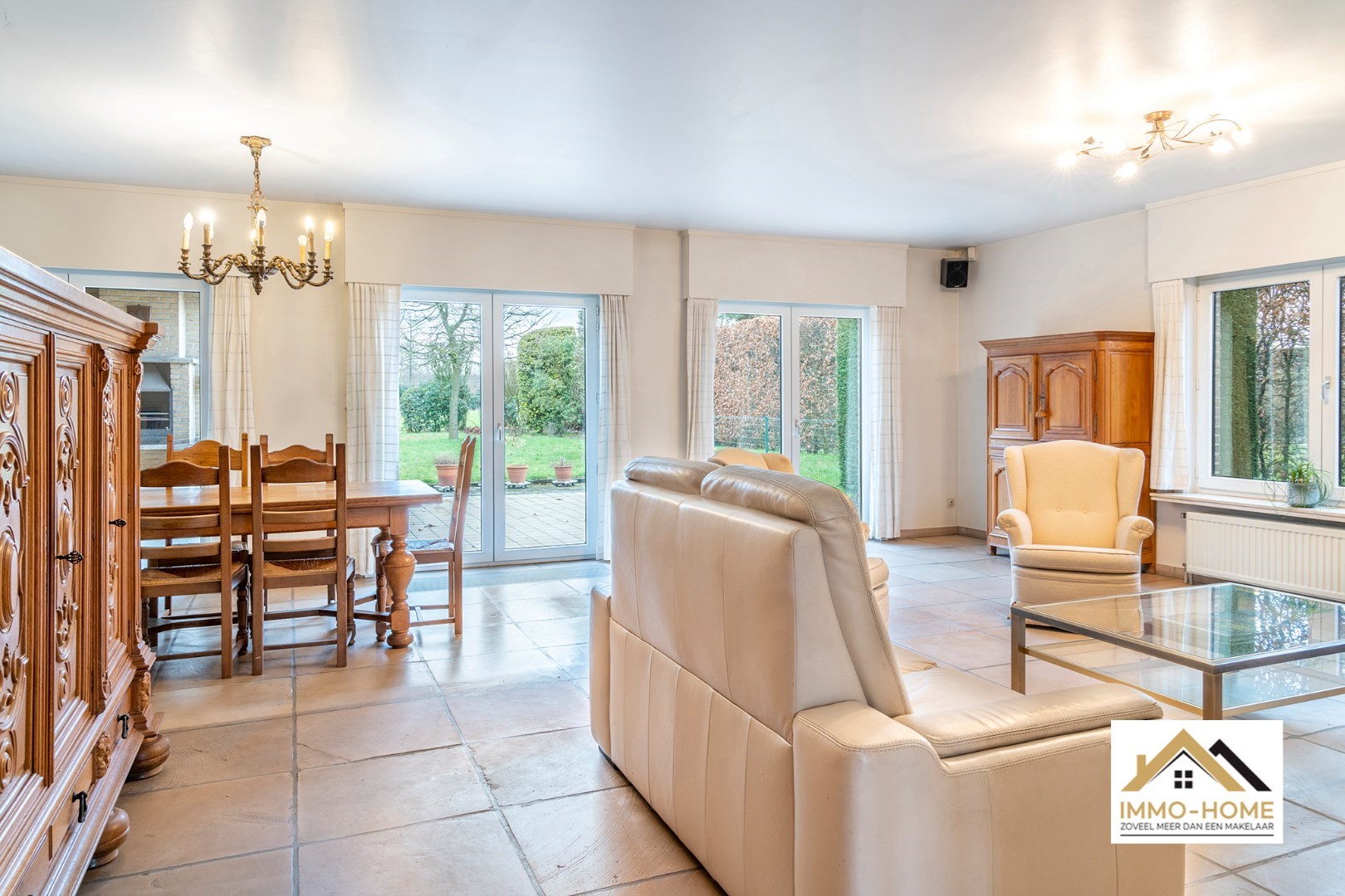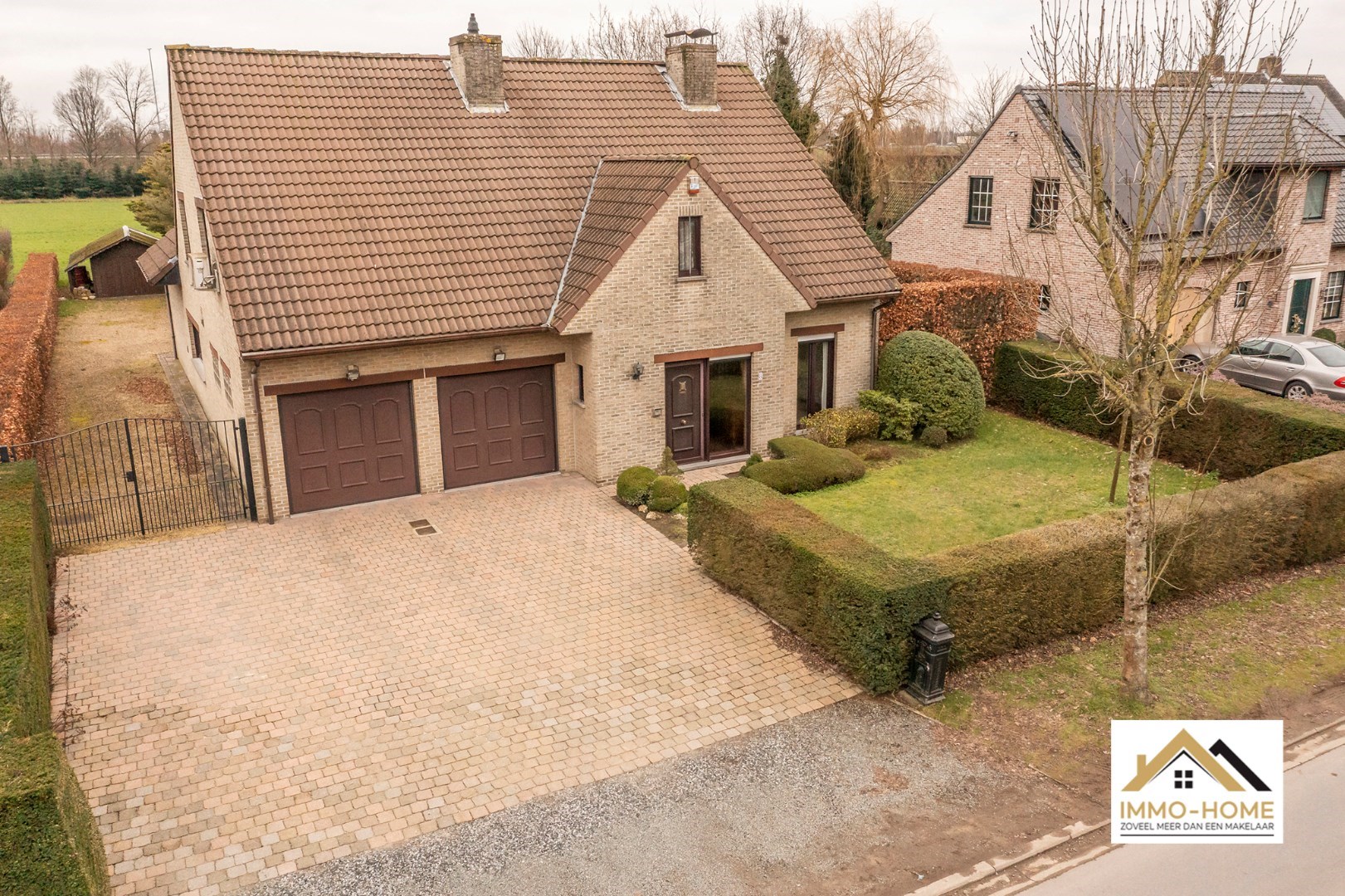 Schrijf u inDeze riante woning met EPC-label B! ontvangt je in stijl in een ruime inkomhal met gastentoilet en ingemaakte vestiaire. Via een dubbele glazen deur kom je in de grote lichtrijke leefruimte, waar een haard voor extra sfeer zorgt. De aangename leeshoek/bibliotheek is een extra bonus, net als het zicht op de tuin rondom. De aanpalende keuken is voorzien van een kookeiland, en beschikt over een ruime koele berging. Naast de keuken is er een grote wasplaats met wandhoge kasten en een afzonderlijke bijkomende werkruimte. “Groot” is in deze woning trouwens het codewoord : ook de dubbele garage (met directe toegang tot zowel de keuken als de inkomhal) met elektrische poorten is riant. Op de eerste verdieping is er rond de centrale gang (met een tweede toilet) plaats voor vijf grote slaapkamers. Er is een kleine badkamer aan één kant van de gang, en de master bedroom beschikt over een en-suite badkamer met ligbad, douche en een derde toilet. Bovenop dit alles is er bergruimte in overvloed op de zolder. Inschrijvingen via mail naar tommy@immo-home.be , geen telefonische inschrijvingen! Volg ons op Fb en insta. Voor meer info: www.immo-home.be