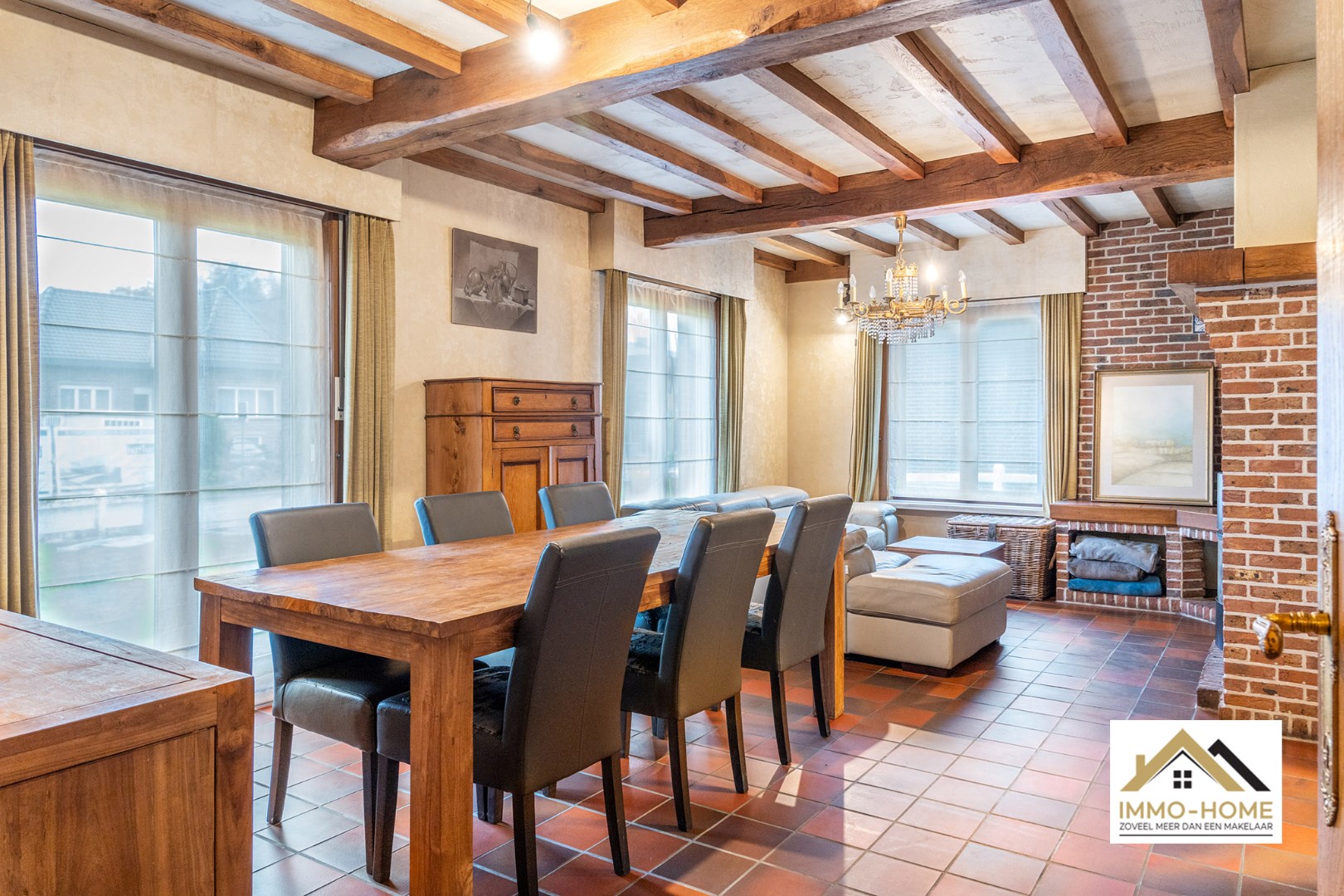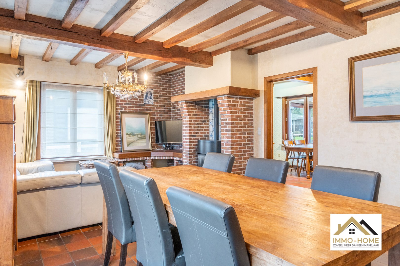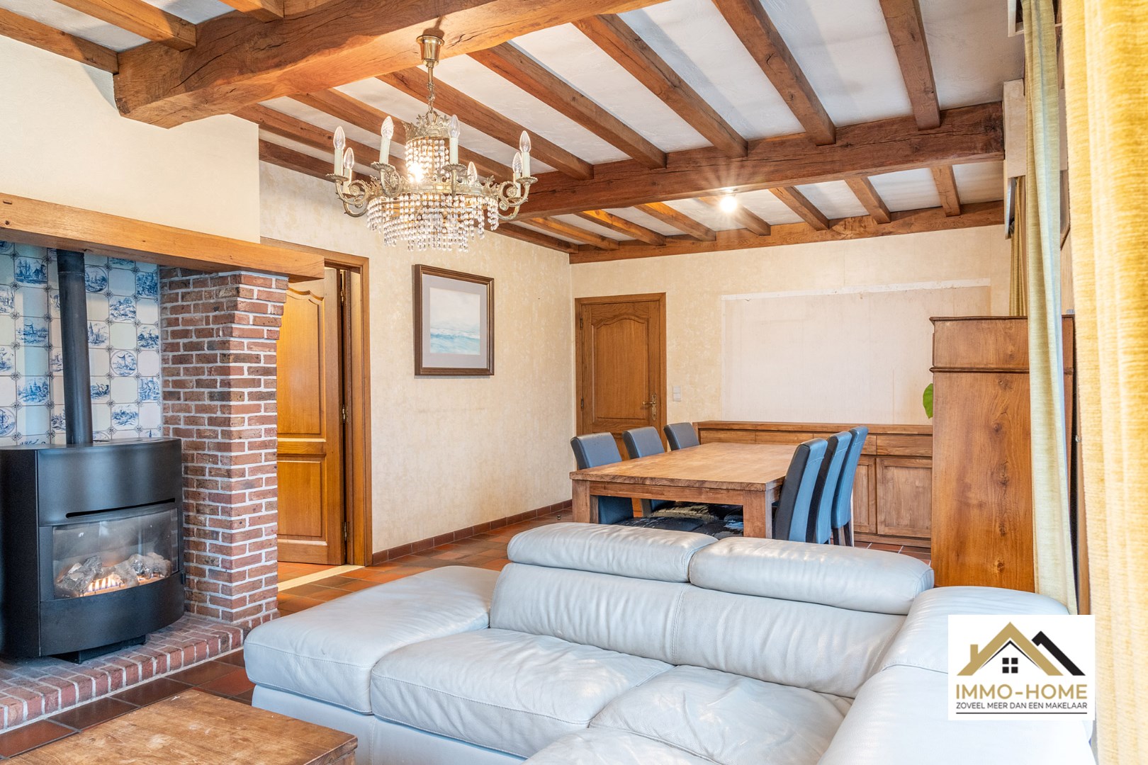 Schrijf u inDeze op te frissen woning is zeer vlot bereikbaar, en ontvangt je in een ruime inkomhal die de centrale as van de woning vormt. Aan de linkerzijde kom je in de aangename leefruimte, waar de haard een prominente rol opneemt om in de koude dagen voor een extra gezellige sfeer te zorgen. De aanpalende keuken is ruim, en ook hier is er een gezellige haard aanwezig. Via een kleine gang (met apart toilet) kom je in de grote veranda, van waaruit je rustig van de tuin kan genieten. Verderop bevindt zich een wasplaats/berging, en via deze weg kun je ook naar de zeer ruime zolder met diverse mogelijkheden zoals extra kamers bijvoorbeeld. Op het gelijkvloers bevinden zich twee zeer ruime slaapkamers en de badkamer met ligbad en een tweede toilet. Op de lange oprit is er plaats voor meerdere wagens, en op het einde ervan beschik je over een ruime vrijstaande garage. Bezoekdag zaterdag 11/11: Inschrijvingen via mail naar gitte@immo-home.be, geen telefonische inschrijvingen! Volg ons op Fb en insta. Voor meer info: www.immo-home.be GRATIS SCHATTING GRATIS FINANCIEEL ADVIES
