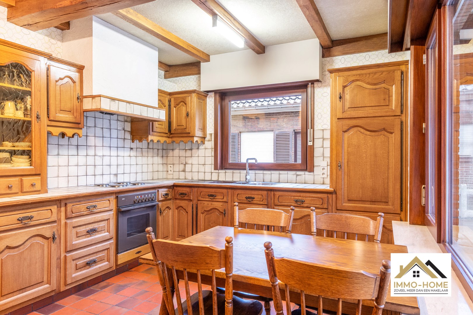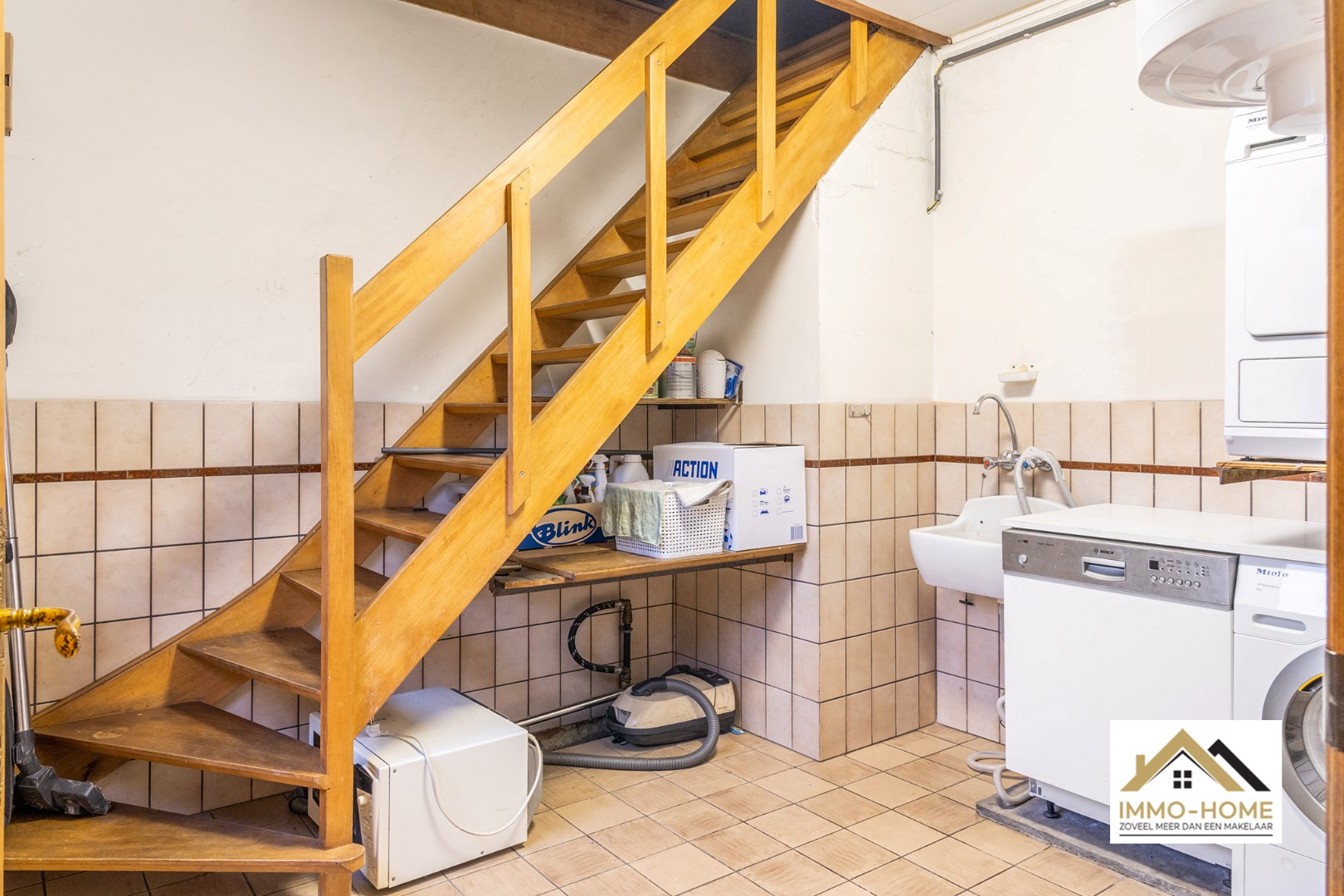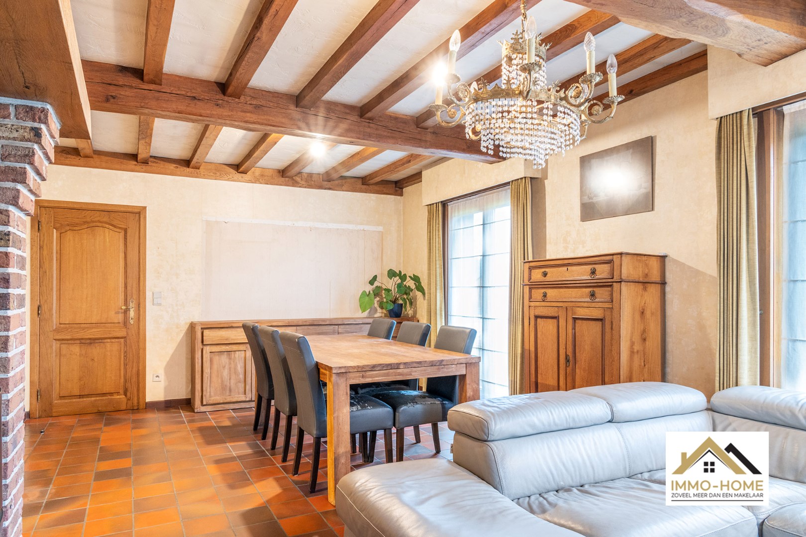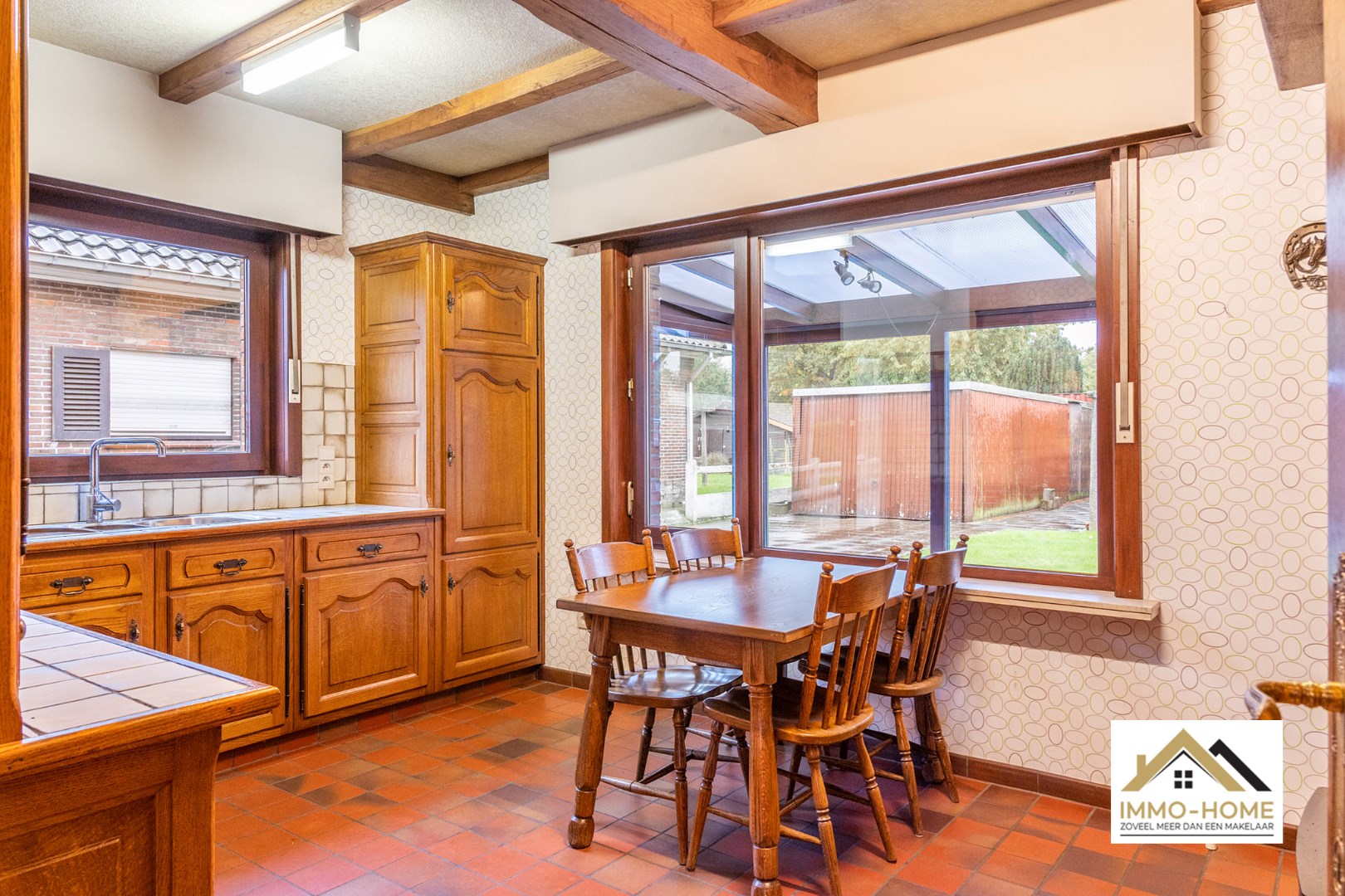 Schrijf u inDeze op te frissen woning is zeer vlot bereikbaar, en ontvangt je in een ruime inkomhal die de centrale as van de woning vormt. Aan de linkerzijde kom je in de aangename leefruimte, waar de haard een prominente rol opneemt om in de koude dagen voor een extra gezellige sfeer te zorgen. De aanpalende keuken is ruim, en ook hier is er een gezellige haard aanwezig. Via een kleine gang (met apart toilet) kom je in de grote veranda, van waaruit je rustig van de tuin kan genieten. Verderop bevindt zich een wasplaats/berging, en via deze weg kun je ook naar de zeer ruime zolder met diverse mogelijkheden zoals extra kamers bijvoorbeeld. Op het gelijkvloers bevinden zich twee zeer ruime slaapkamers en de badkamer met ligbad en een tweede toilet. Op de lange oprit is er plaats voor meerdere wagens, en op het einde ervan beschik je over een ruime vrijstaande garage. Bezoekdag zaterdag 11/11: Inschrijvingen via mail naar gitte@immo-home.be, geen telefonische inschrijvingen! Volg ons op Fb en insta. Voor meer info: www.immo-home.be GRATIS SCHATTING GRATIS FINANCIEEL ADVIES