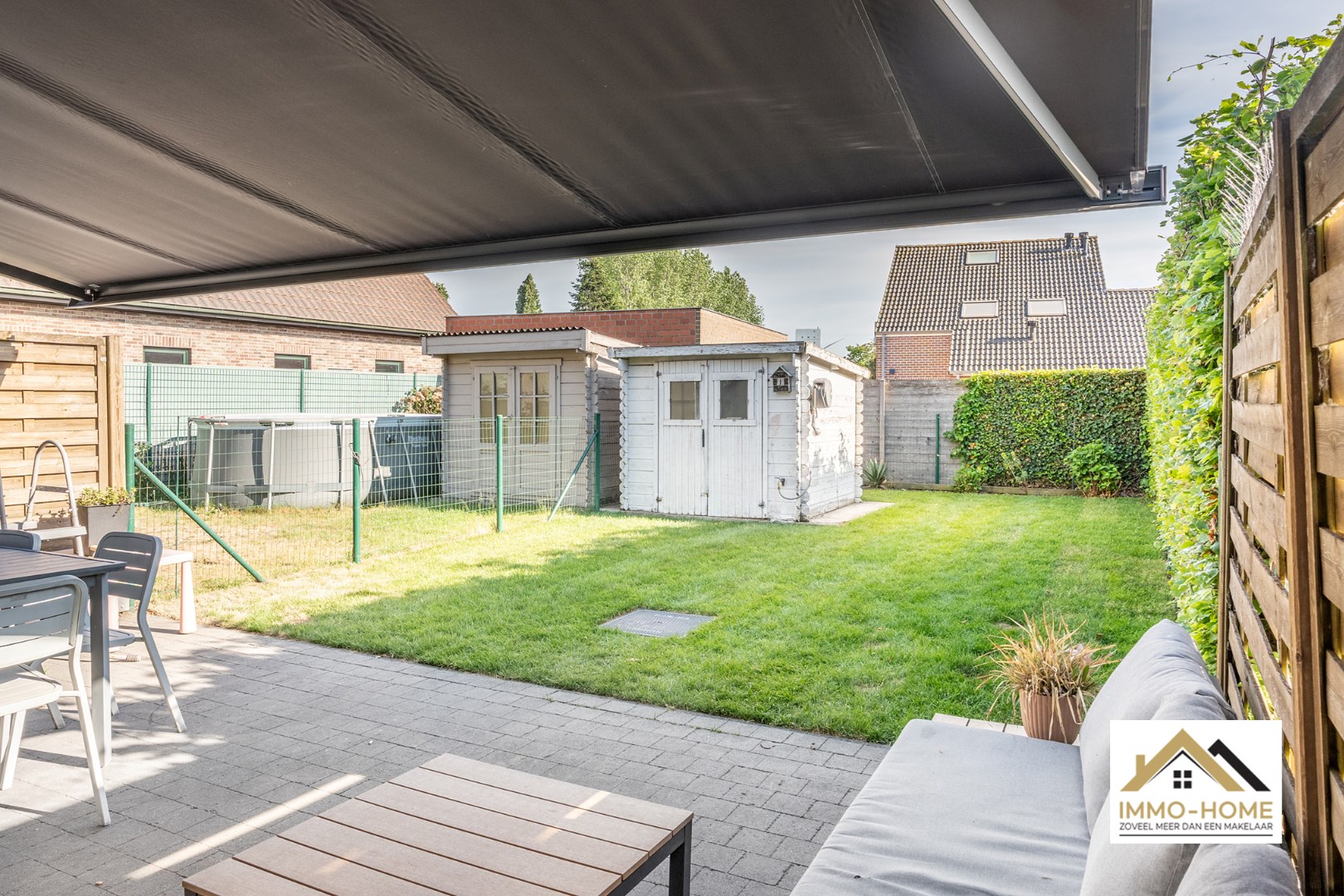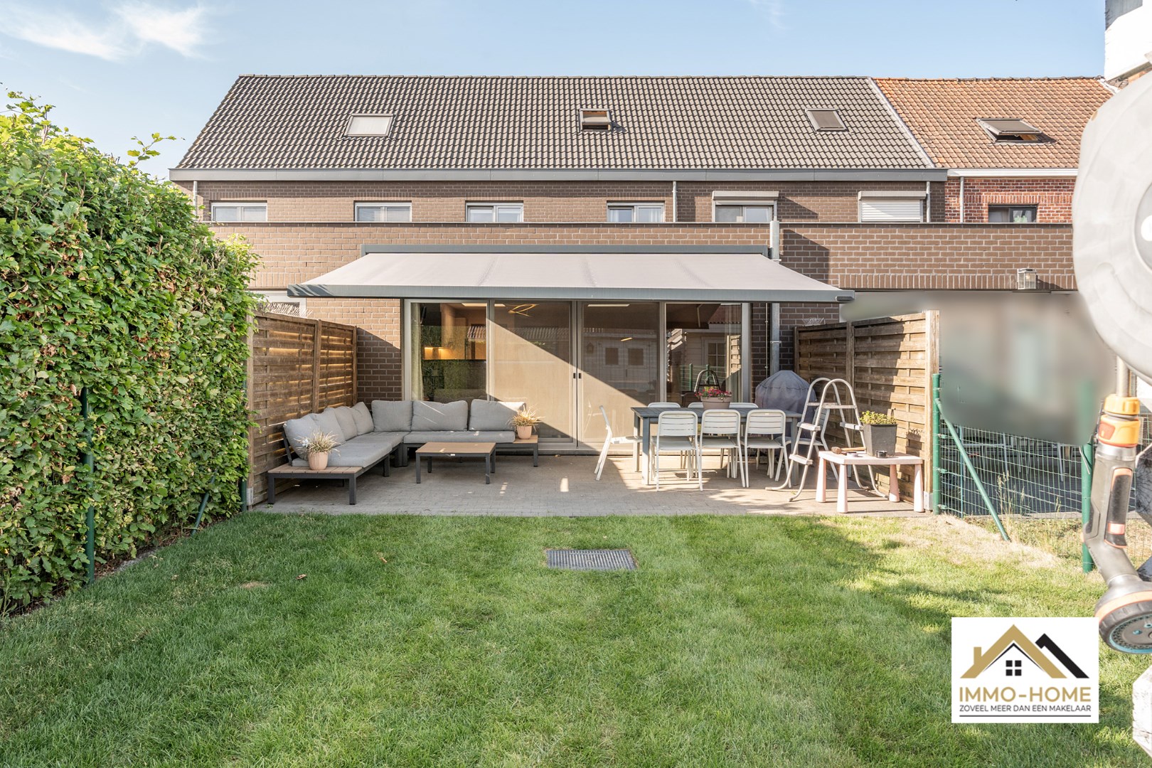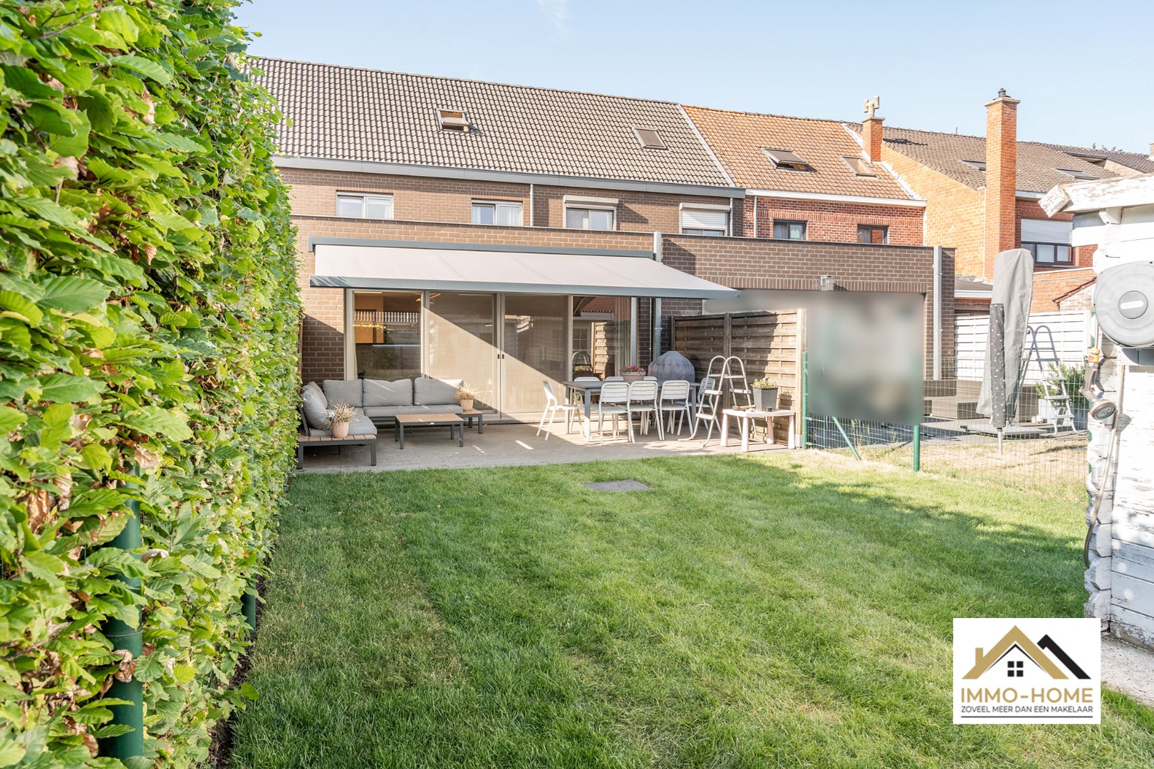 Schrijf u inDeze nieuwbouw rijwoning ontvangt je in stijl in een ruime inkomhal met gastentoilet. Via een glazen deur bereik je de open leefruimte, met een heel open zicht en contact met het terras en de tuin. Er is ruimte zat voor een grote zithoek en eetplaats. De keuken is halfopen, waardoor je steeds contact blijft hebben met je gasten. Een groot dubbel schuifraam brengt je tot op het terras, waar een zonneluifel er voor zorgt dat je ook op te warme dagen zorgeloos van het buitenleven kan genieten. Op de eerste verdieping is er voorzien in drie slaapkamers en een tweede toilet, en uiteraard ook in een badkamer met ligbad. Op de bovenste verdieping vinden we de master bedroom terug, waar de veluxen aan beide kanten zorgen voor een leuke lichtinval. De inpandige garage biedt naast plaats voor een wagen ook extra opbergruimte, net als het tuinhuis. Inschrijven voor bezoekdag op vrijdag 30/05 via mail naar tommy@immo-home.be, geen telefonische inschrijvingen! Volg ons op Fb en Insta. Voor meer info: www.immo-home.be. GRATIS SCHATTING & GRATIS FINANCIEEL ADVIES