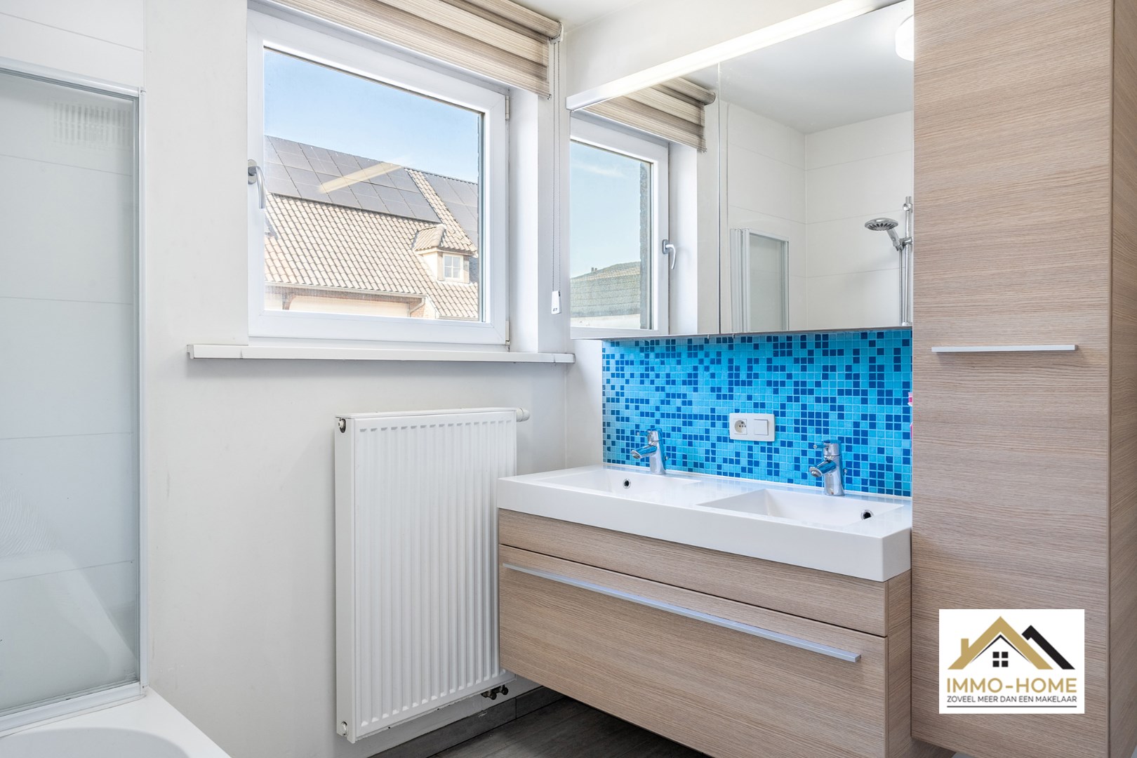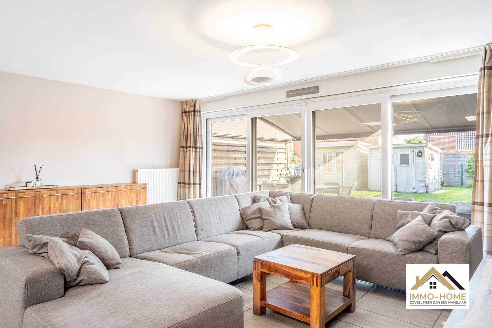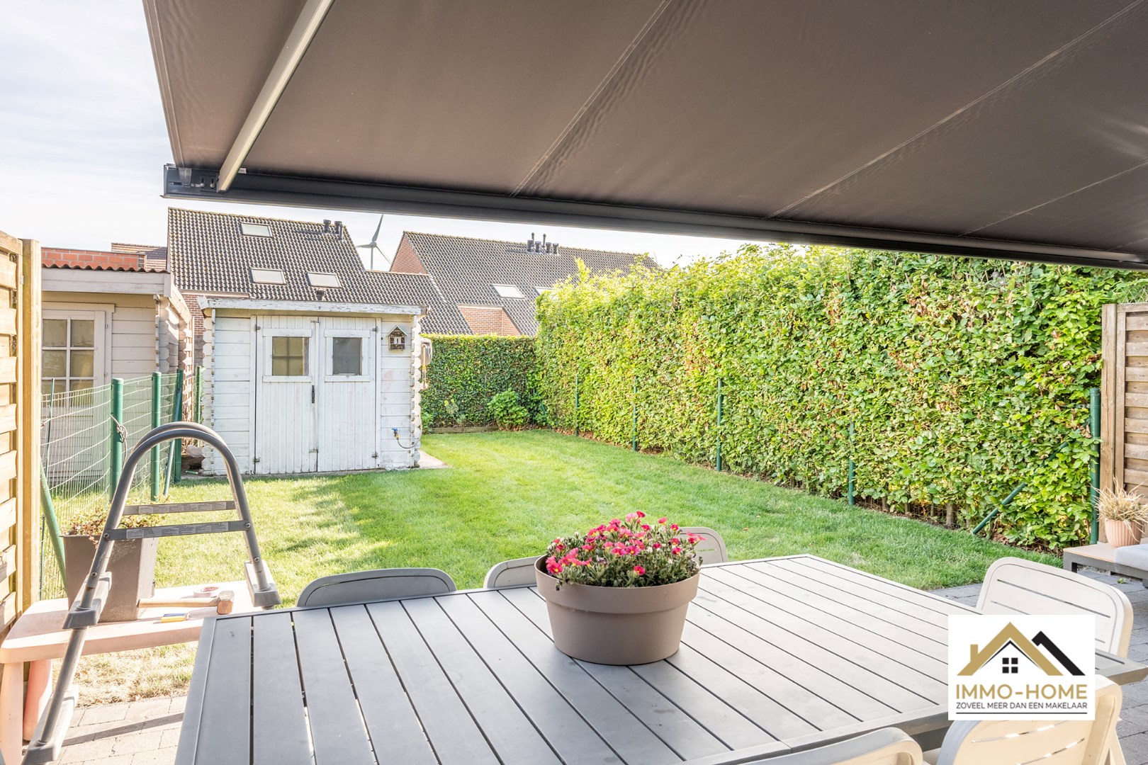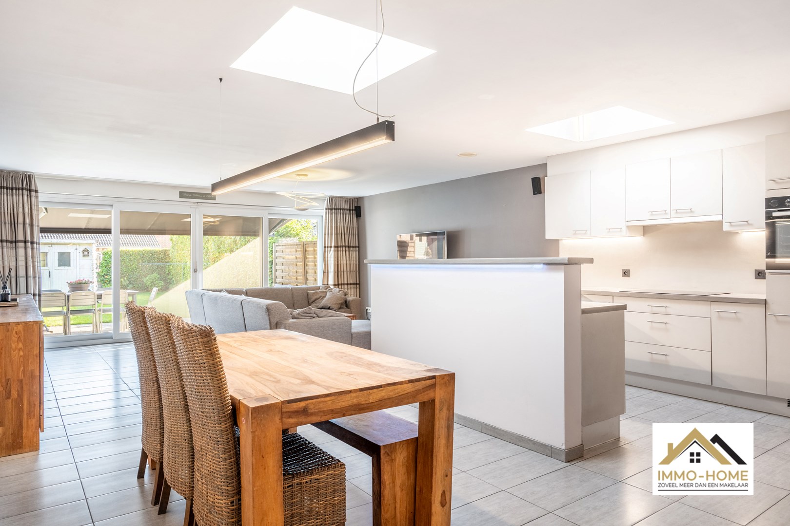 Schrijf u inDeze nieuwbouw rijwoning ontvangt je in stijl in een ruime inkomhal met gastentoilet. Via een glazen deur bereik je de open leefruimte, met een heel open zicht en contact met het terras en de tuin. Er is ruimte zat voor een grote zithoek en eetplaats. De keuken is halfopen, waardoor je steeds contact blijft hebben met je gasten. Een groot dubbel schuifraam brengt je tot op het terras, waar een zonneluifel er voor zorgt dat je ook op te warme dagen zorgeloos van het buitenleven kan genieten. Op de eerste verdieping is er voorzien in drie slaapkamers en een tweede toilet, en uiteraard ook in een badkamer met ligbad. Op de bovenste verdieping vinden we de master bedroom terug, waar de veluxen aan beide kanten zorgen voor een leuke lichtinval. De inpandige garage biedt naast plaats voor een wagen ook extra opbergruimte, net als het tuinhuis. Inschrijven voor bezoekdag op vrijdag 30/05 via mail naar tommy@immo-home.be, geen telefonische inschrijvingen! Volg ons op Fb en Insta. Voor meer info: www.immo-home.be. GRATIS SCHATTING & GRATIS FINANCIEEL ADVIES
