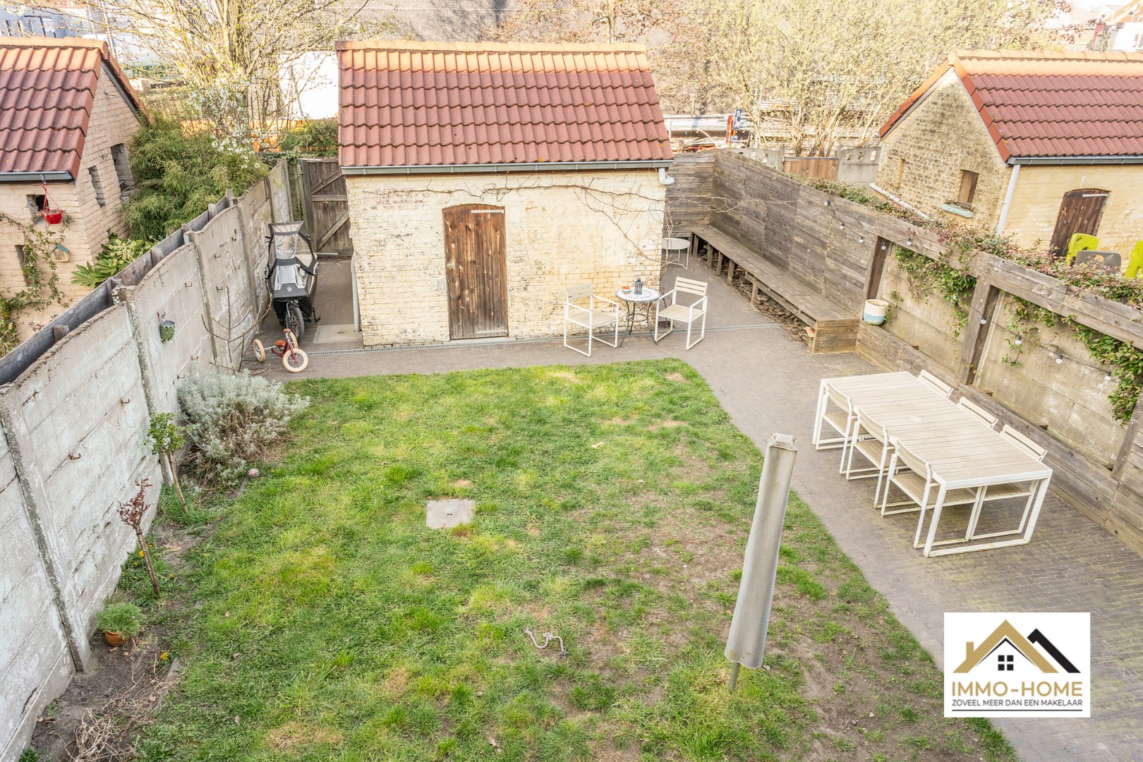 Schrijf u inDeze bijzondere woning is gelegen in een doodlopende straat aan de rand van Gentbrugge, en achter de op het eerste zicht standaard stadsgevel gaat een bijzonder verhaal schuil. Je komt binnen in een open leefruimte, waar het hoge plafond voor een extra ruimtelijk gevoel zorgt. De keuken bevindt zich een paar trapjes lager, en deze biedt uitzicht op de mooie stadstuin. Net naast de keuken is er een eerste badkamer, met ook een hoekje voor het gastentoilet. Hier bevindt zich ook de toegang tot de zeer ruime kelder, waar eveneens de aansluitingen voor de wasmachine en dergelijke voorhanden zijn. Op de eerste tussenverdieping komen we in een heel toffe master bedroom, waar het hoge plafond onder het dak voor een speciale dimensie zorgt. Ook deze kijkt uit op de tuin. Verderop komen we in een tweede ruime slaapkamer, met authentieke elementen die voor een aangename sfeer zorgen. Die vormen dan weer een mooi contrast met de tweede badkamer net ernaast. Deze is voorzien van zowel een ligbad als een grote inloopdouche, net zoals een tweede toilet en een grote dubbele lavabo. Bovenop dit alles komen we via een vaste trap tot op de zolderverdieping, met een derde slaapkamer én een derde badkamer (met ligbad en derde toilet). De gezellige tuin nodigt niet alleen uit om in met vrienden en familie van het buitenleven te genieten, hij is tevens via een aparte voetweg bereikbaar. Super handig met fietsen en dergelijke ! Extra opbergruimte is er in de authentieke tuinberging. Inschrijvingen voor bezoekdag via mail naar tommy@immo-home.be, geen telefonische inschrijvingen! Volg ons op Fb en Insta. Voor meer info: www.immo-home.be. GRATIS SCHATTING & GRATIS FINANCIEEL ADVIES