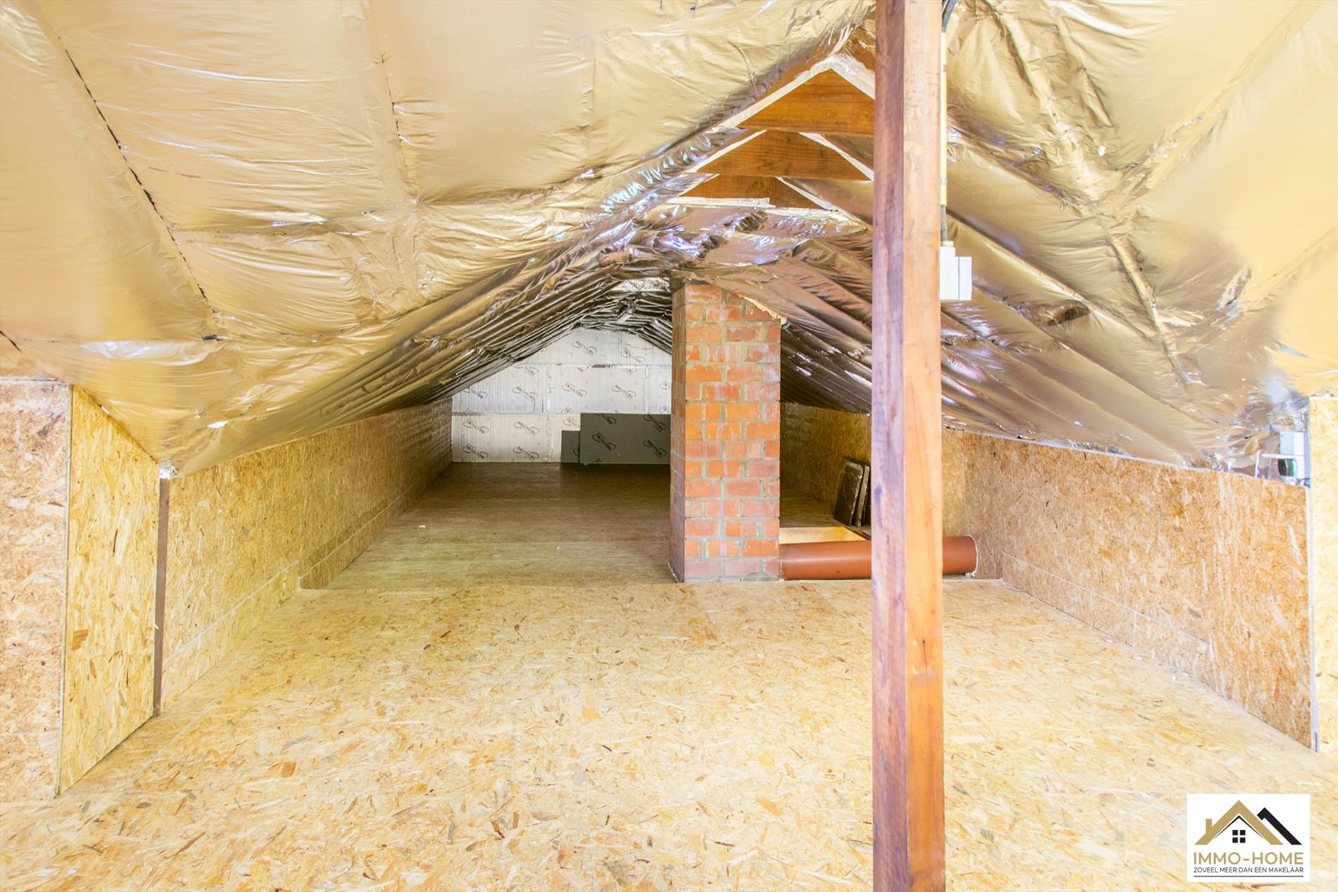 Deze licht op te frissen OB is gelegen in een rustige wijk van Gent/Wondelgem, dichtbij alle voorzieningen en uitvalswegen. De ruime inkomhal brengt je via een dubbele deur naar de riante, lichtrijke leefruimte. De grote raampartijen rondom zorgen voor voldoende contact met de tuin,via het grote schuifraam bereik je het gezellige overdekte terras. Dit terras geeft je ook toegang tot zowel de aan de living aansluitende ruime keuken als de garage. Aan de andere kant van de keuken kom je in de centrale gang, die van aan de voordeur tot in de garage loopt, en langs waar je in de twee zeer ruime slaapkamers, een apart toilet en een ruime badkamer komt. Op het gelijkvloers heb je tot slot nog een ruime garage met afzonderlijke wasplaats/berging, werkruimte en automatische poort. Daarboven beschik je nog over een zeer ruime zolderverdieping (perfect geïsoleerd en afgewerkt met OSB), die zowel vanuit de garage als vanuit de gang (trapgatvoorbereiding) kan bereikt worden. Deze is in het midden 2.2 m hoog én volledig op betonnen gewelven, en kan dus ruimte bieden aan meerdere extra slaapkamers (met behoud van een ruime bergzolder).