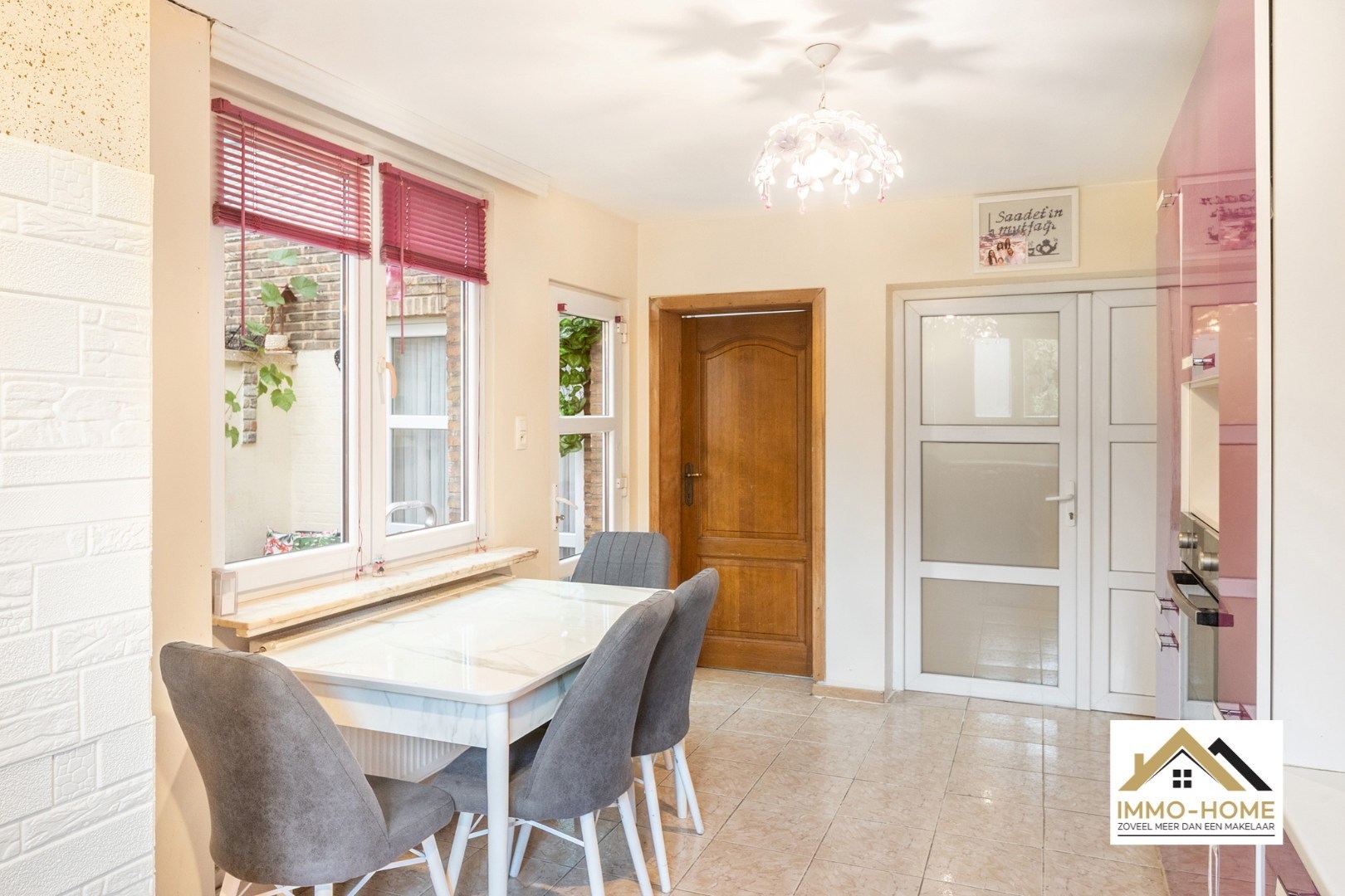 Nabij de stadsring van Gent, in Sint Amandsberg, bevindt zich deze ruime rijwoning verdeeld in 2 grote volwaardige panden. Het linker gedeelte is te koop. Via een brede inkomhal betreed je de woning. Achteraan op het gelijkvloers is er een kamergrote bergruimte, terwijl de trap je naar het eerste verdiep leidt. Hier bevindt zich een originele kleurrijke goed uitgeruste keuken met voldoende ruimte voor een eethoek. De leefruimte is bijzonder ruim en licht, ingedeeld in een eetgedeelte, een comfortabele zithoek en een aparte tv-hoek. Op het bovenste verdiep vind je een badkamer met ligbad, douche, lavabo met meubel, en aansluitingen voor een wasmachine. Er zijn drie slaapkamers, waarvan één momenteel ingericht is als bureau. De masterbedroom is opvallend groot en geniet van veel lichtinval. Ook de derde kamer biedt voldoende ruimte voor een bed, kast en bureau. Daarnaast is er een praktische dressing van kamergroot formaat. Het overdekte buitenterras is sfeervol ingericht en geeft toegang tot een apart toilet. Kortom, een ideale woning voor wie op zoek is naar ruimte, comfort en een centrale ligging nabij Gent. Inschrijven via mail naar tommy@immo-home.be, geen telefonische inschrijvingen! Volg ons op Fb en Insta. Voor meer info: www.immo-home.be. GRATIS SCHATTING & GRATIS FINANCIEEL ADVIES