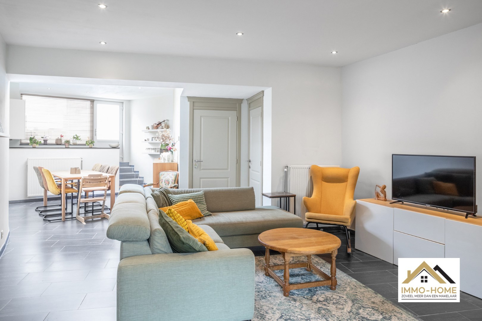 Bij het binnenkomen ervaar je meteen de warme en uitnodigende sfeer van deze compacte, stijlvolle woning. De ruime leefruimte met zithoek en eetgedeelte sluit aan op de halfopen keuken, die uitkijkt op het terras.
