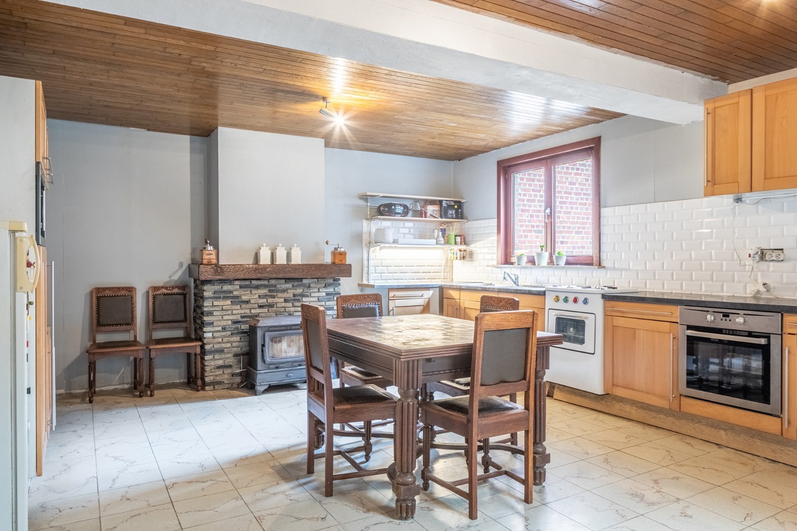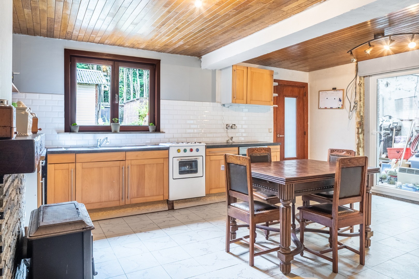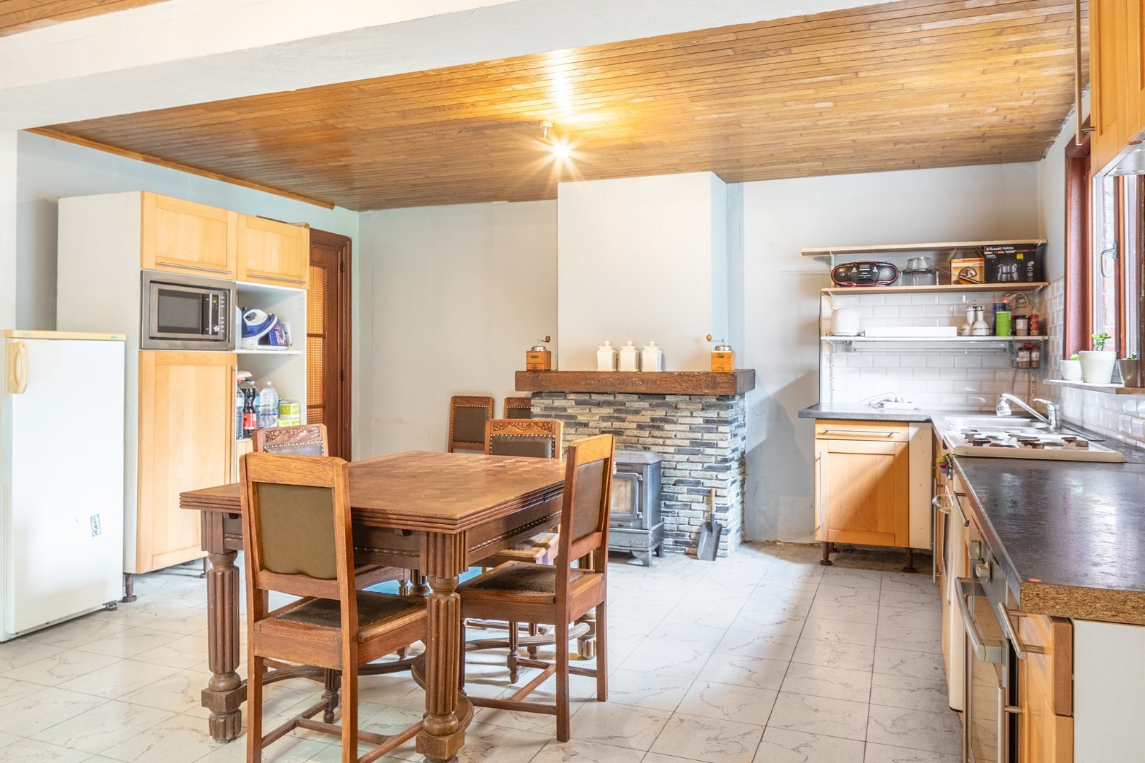 Schrijf u inIn de Heldergemstraat te Heldergem bevindt zich deze ruime gezinswoning met aangename tuin. Via de inkomhal bereik je de traphal, die toegang biedt tot de lichtrijke leefruimte. De eet- en zithoek vormen samen een gezellige, open ruimte waar een houtkachel zorgt voor een warme, huiselijke sfeer. Aansluitend vind je een royale keuken met voldoende plaats voor een extra eettafel. Vanuit de keuken heb je toegang tot een praktische berging met aansluiting voor wasmachine, en tot de garage die tevens toegang biedt tot de tuin. De garage is uitzonderlijk diep en biedt plaats aan minstens drie wagens, of kan flexibel ingericht worden als extra opslagruimte of hobbyruimte. Onder de woning bevinden zich drie aaneengeschakelde, volledig betegelde kelders — bijzonder praktisch als bergruimte of voorraadkelder. Op het tussenverdiep ligt een ruime badkamer, uitgerust met lavabo, ligbad en douche. De woning beschikt over een grote slaapkamer, en daarnaast twee met elkaar verbonden kamers die dienst kunnen doen als kinderkamer, bureau of hobbyruimte.