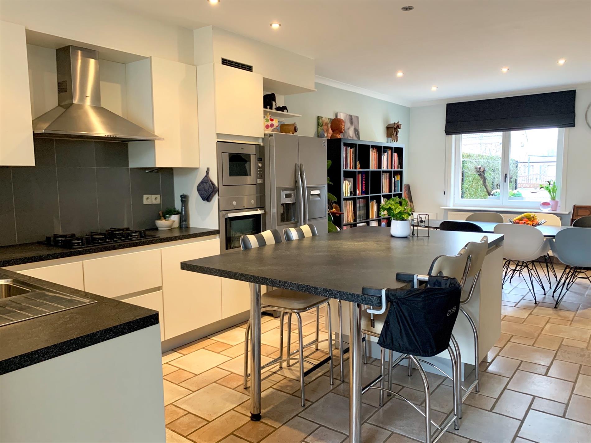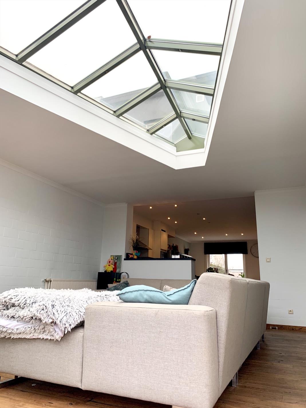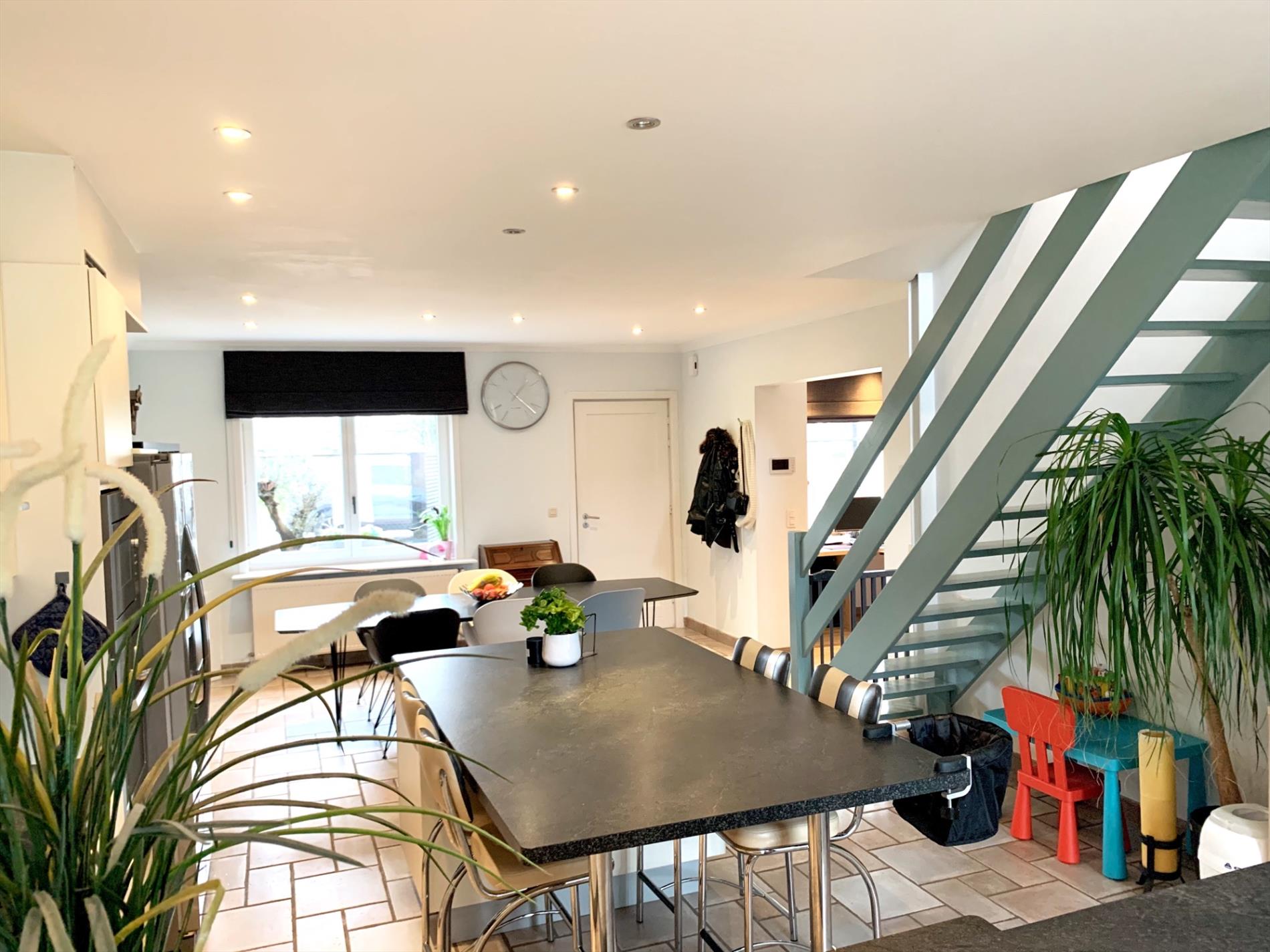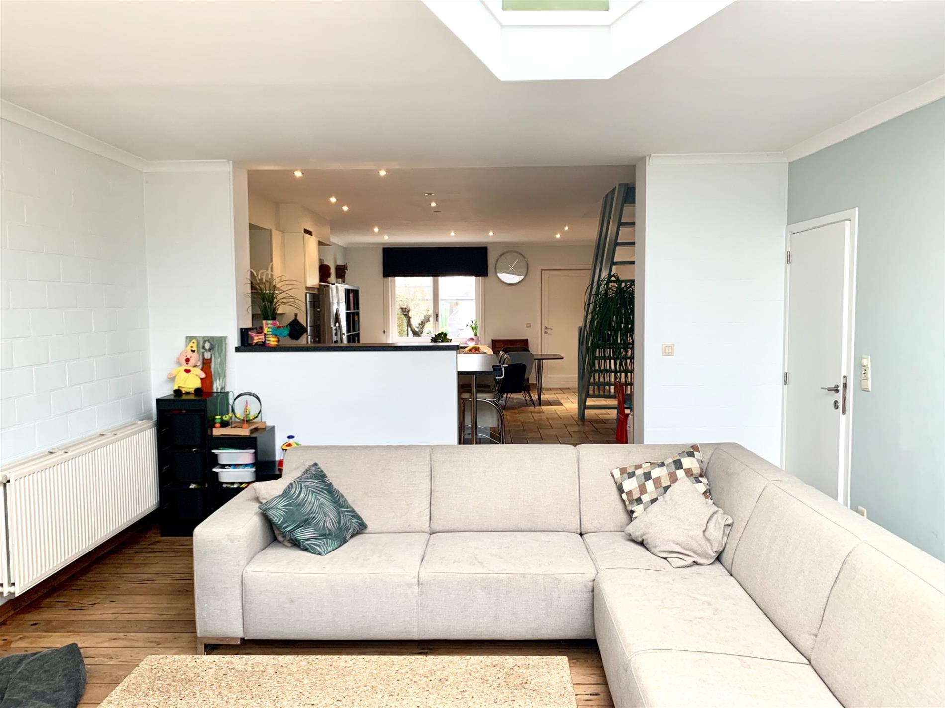 Schrijf u inDeze woning heeft tal van troeven. De zeer strakke moderne afsluiting vooraan met zwarte poort en parlofoon is onlangs pas geplaatst. Zo kan u ook vooraan genieten van het pas aangelegde terras. Ook zal u bij het binnen komen versteld staan en zien over wat een volume het gaat. Zowel de leefruimte, open keuken en open bureau vloeien in elkaar. Ook de woonkamer die daarop aansluit is enorm gezellig door de parketvloer en geeft een open gevoel door de grote glazen koepel. Van hieruit heeft u een uitzicht op het terras en de tuin.
