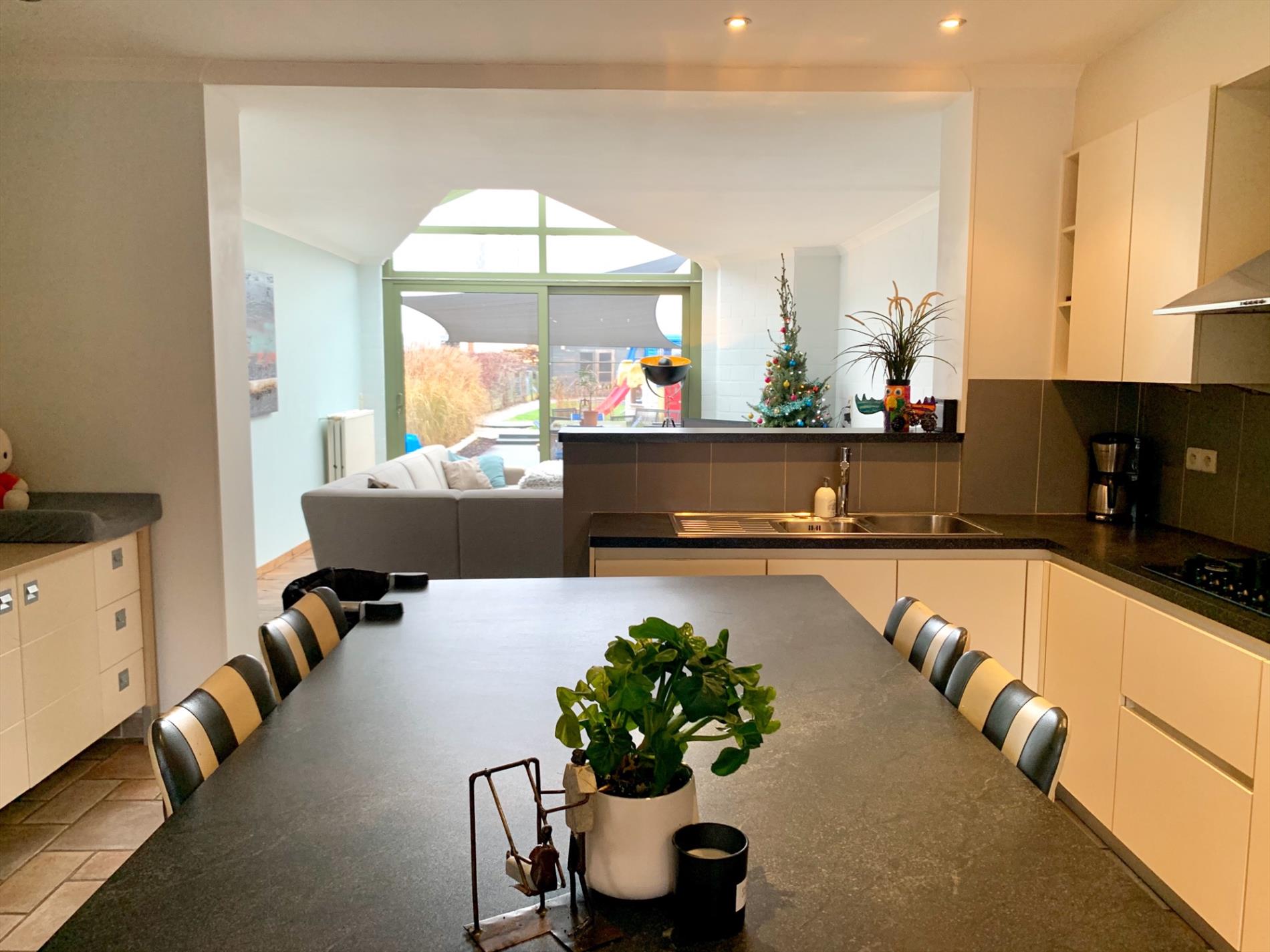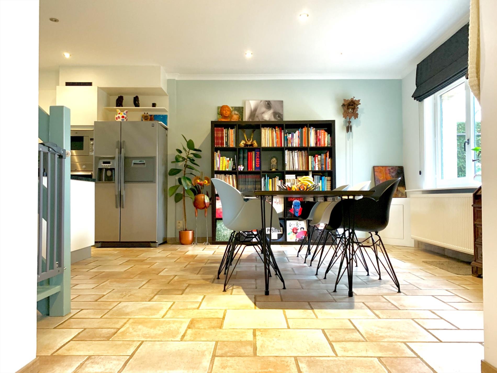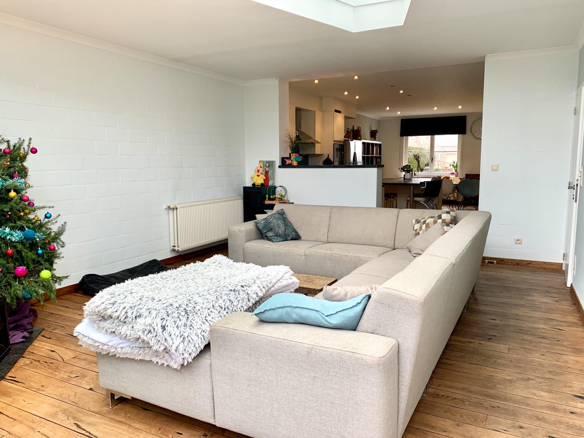 Schrijf u inDeze woning heeft tal van troeven. De zeer strakke moderne afsluiting vooraan met zwarte poort en parlofoon is onlangs pas geplaatst. Zo kan u ook vooraan genieten van het pas aangelegde terras. Ook zal u bij het binnen komen versteld staan en zien over wat een volume het gaat. Zowel de leefruimte, open keuken en open bureau vloeien in elkaar. Ook de woonkamer die daarop aansluit is enorm gezellig door de parketvloer en geeft een open gevoel door de grote glazen koepel. Van hieruit heeft u een uitzicht op het terras en de tuin.