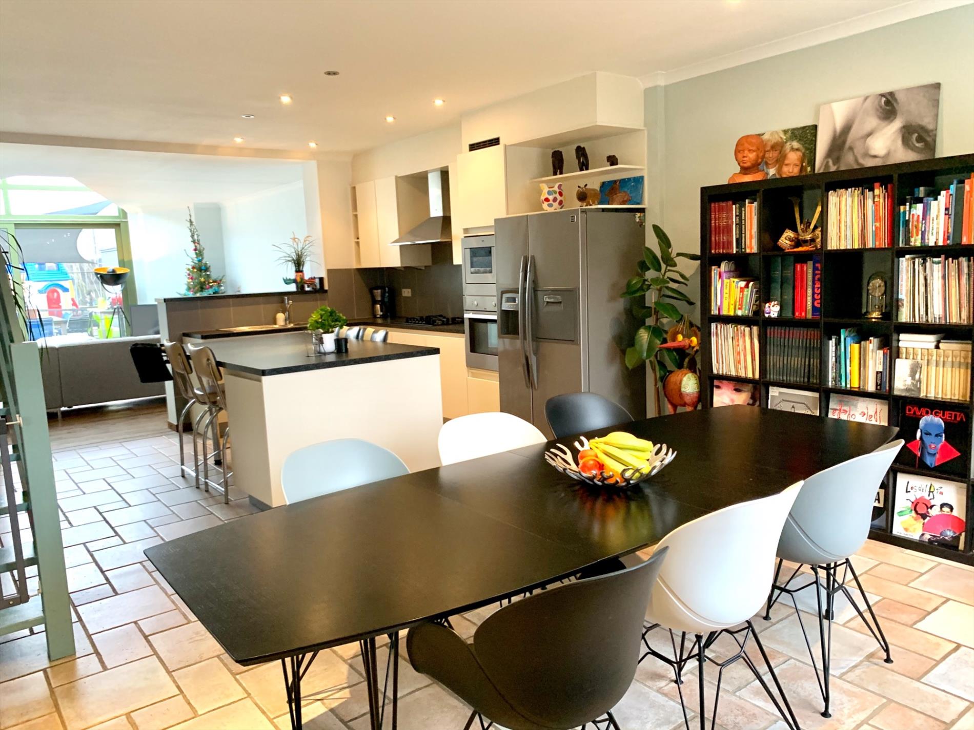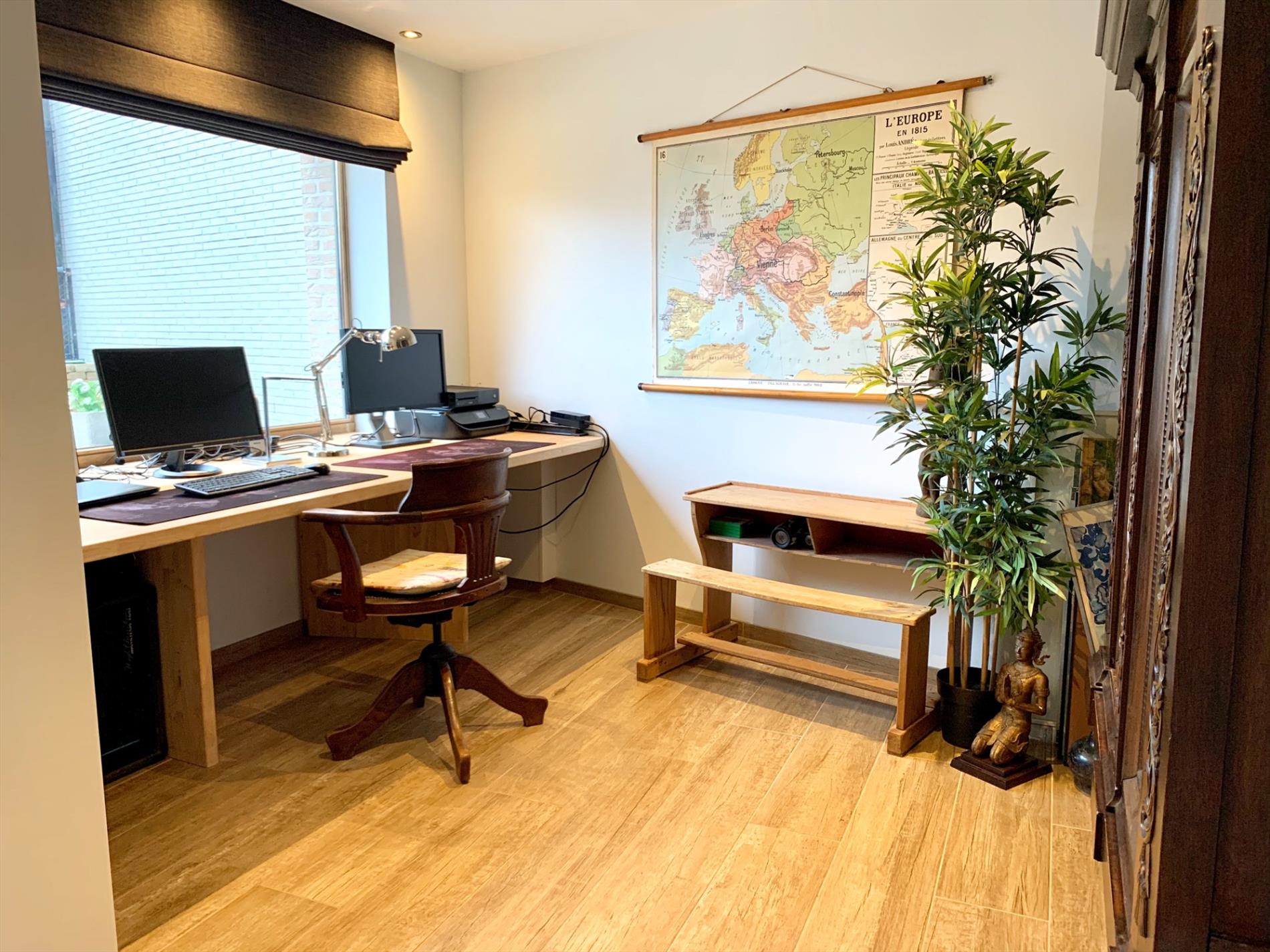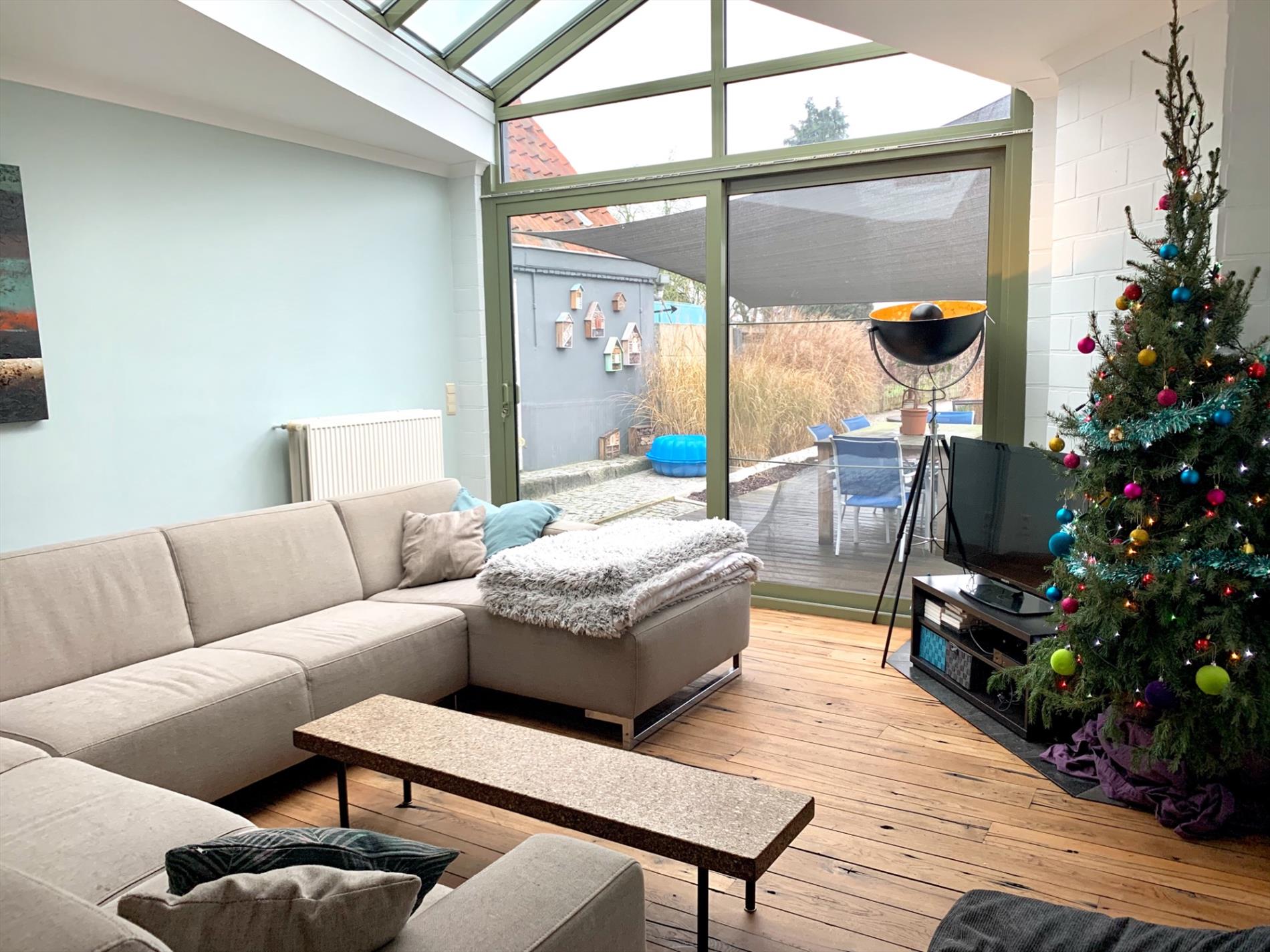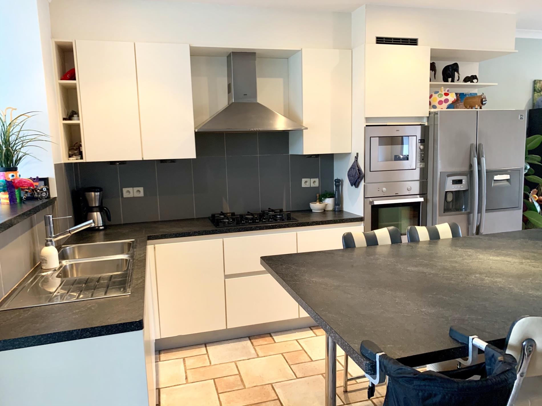 Schrijf u inDeze woning heeft tal van troeven. De zeer strakke moderne afsluiting vooraan met zwarte poort en parlofoon is onlangs pas geplaatst. Zo kan u ook vooraan genieten van het pas aangelegde terras. Ook zal u bij het binnen komen versteld staan en zien over wat een volume het gaat. Zowel de leefruimte, open keuken en open bureau vloeien in elkaar. Ook de woonkamer die daarop aansluit is enorm gezellig door de parketvloer en geeft een open gevoel door de grote glazen koepel. Van hieruit heeft u een uitzicht op het terras en de tuin.