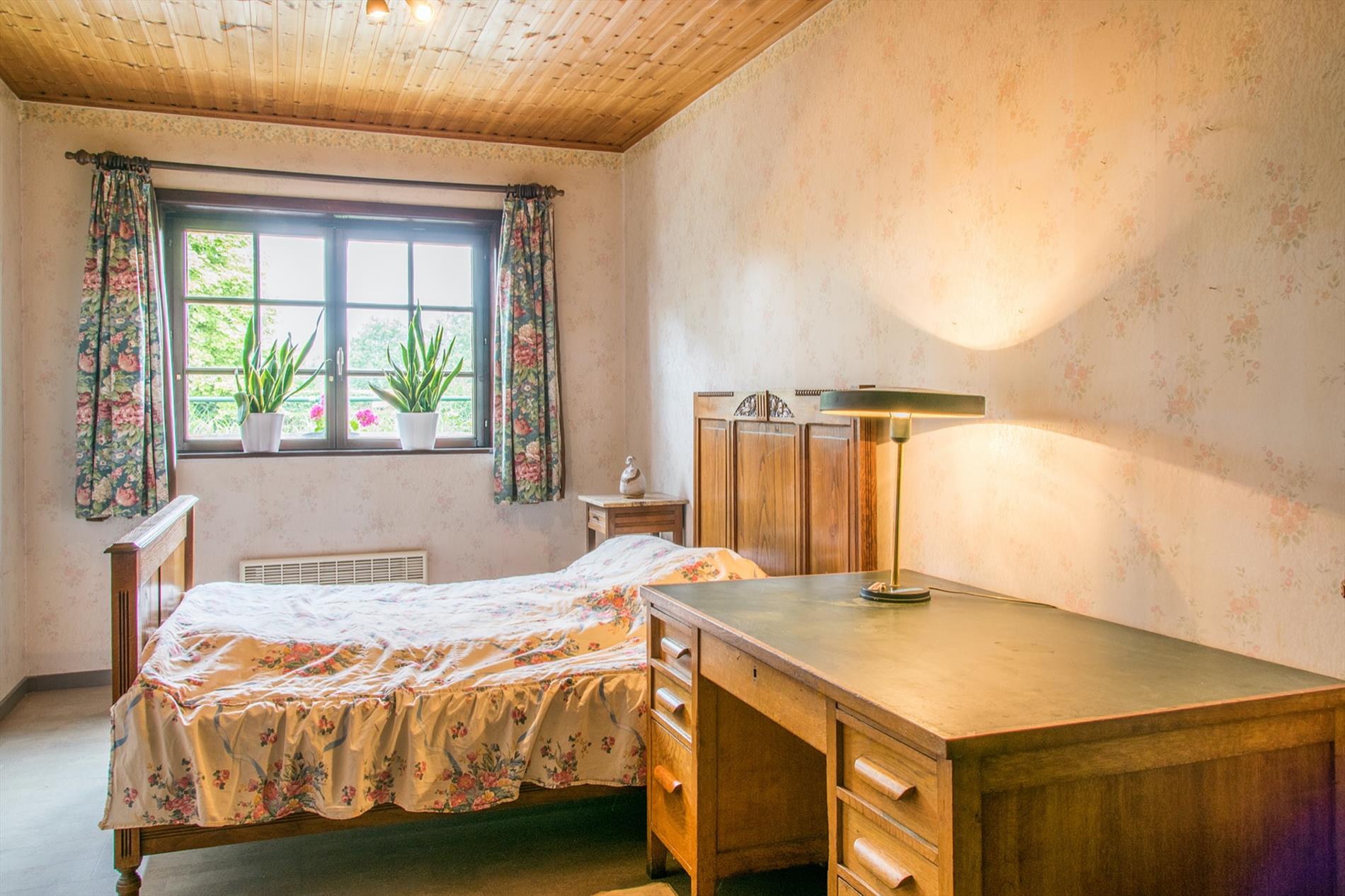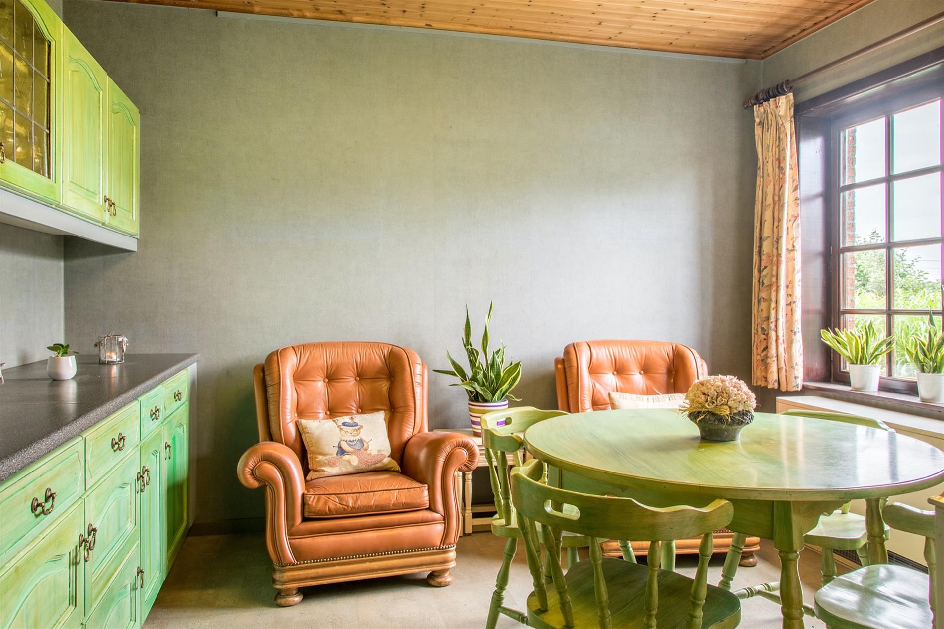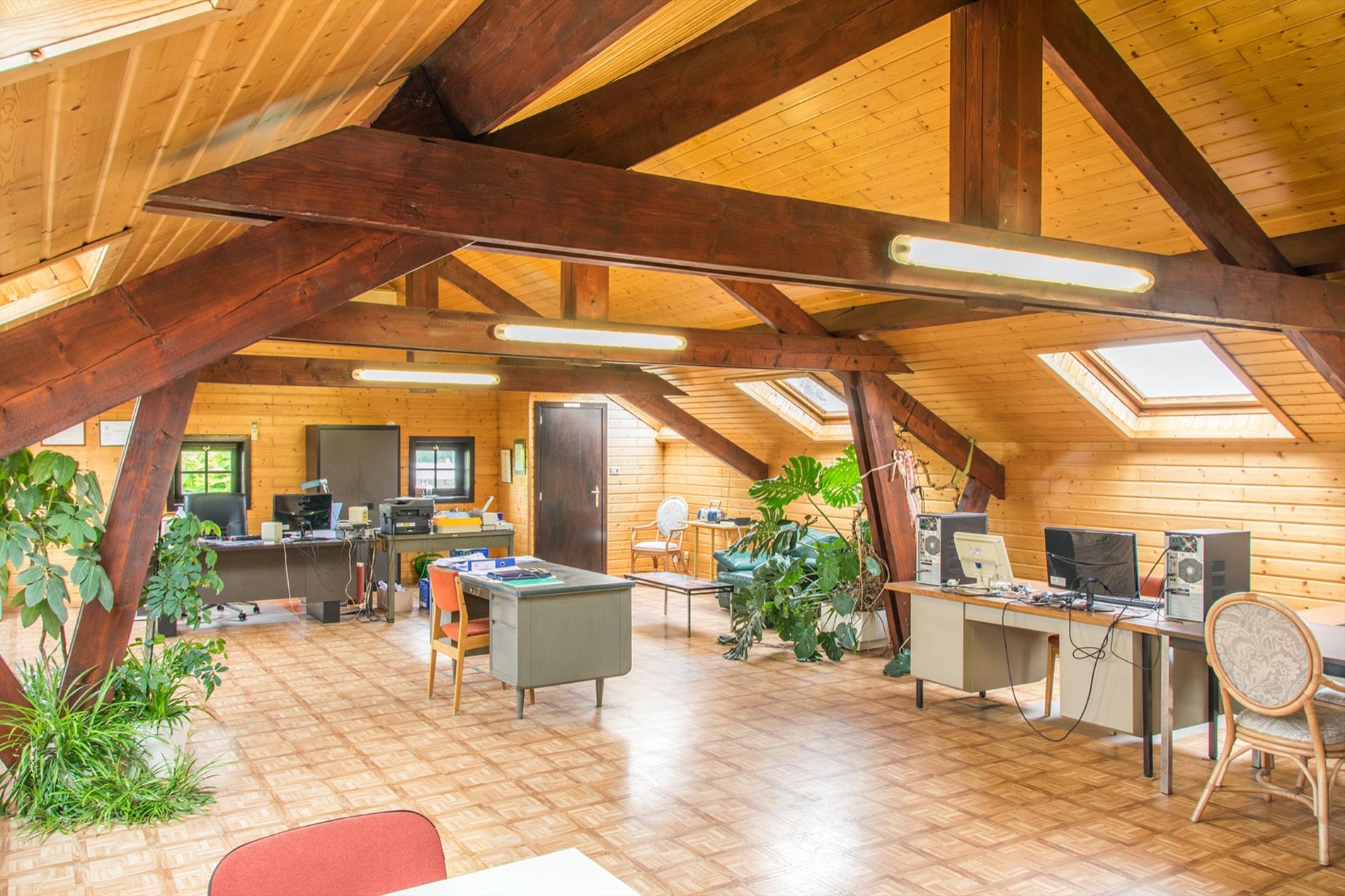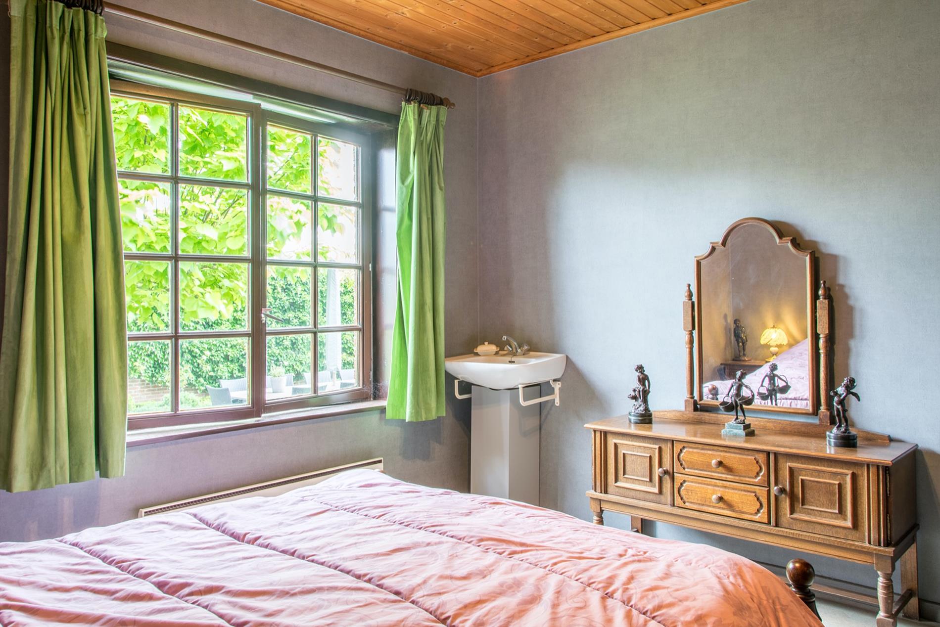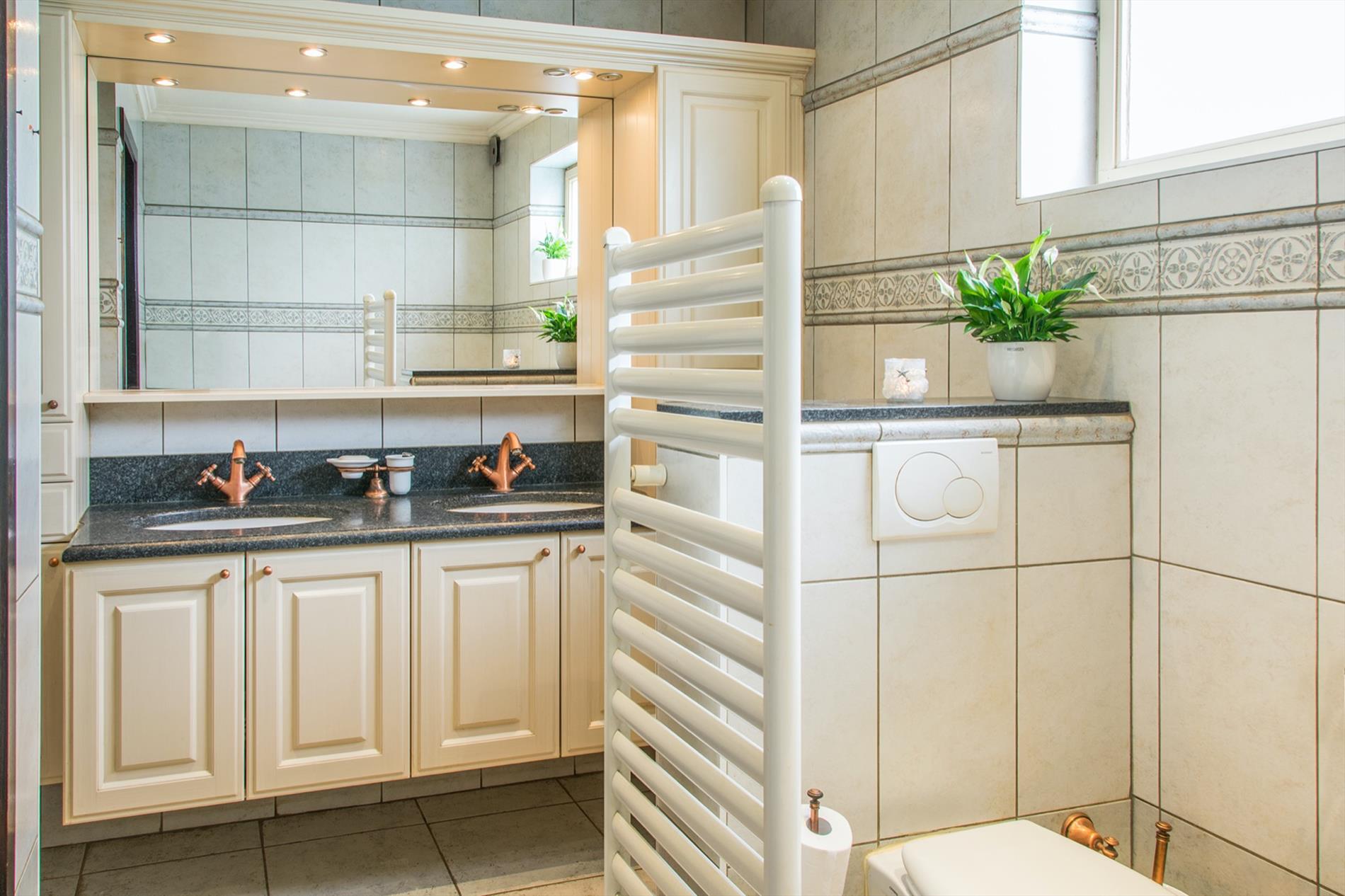 Schrijf u inIn deze villa in landelijke stijl ontvang je vrienden en familie in een omgeving met klasse! De riante woonkamer biedt een zee aan ruimte om te tafelen en gezellig te genieten aan de speksteenkachel. De ingesloten tuinkamer is hier zeker een bijkomende troef, net als het ruimtelijke gevoel dat door de hoge en open plafonds wordt gecreëerd. Naast de leefruimte bevindt zich de prachtige keuken. Via de centrale hall (die je ook kan bereiken via de voordeur) wordt je verder geleid naar de 4 ruime slaapkamers (elk met eigen lavabo), het sfeervolle bureel of 5de slaapkamer, een gastentoilet (met douche !) en de badkamer met ligbad. Via de trap bereik je een grote mezzanine met plaats voor bijvoorbeeld een TV-hoek, en achter een dubbele deur is er een gigantische polyvalente ruimte, nu bureau en 2 zolders (incl. airco en toilet). Mogelijkheid voor bijberoep of extra slaapkamers. Onder de volledige woning is er bovendien een kelderverdieping van 240 m² !