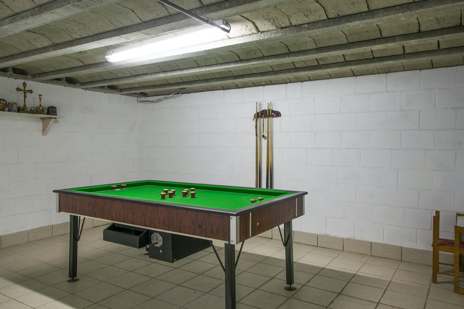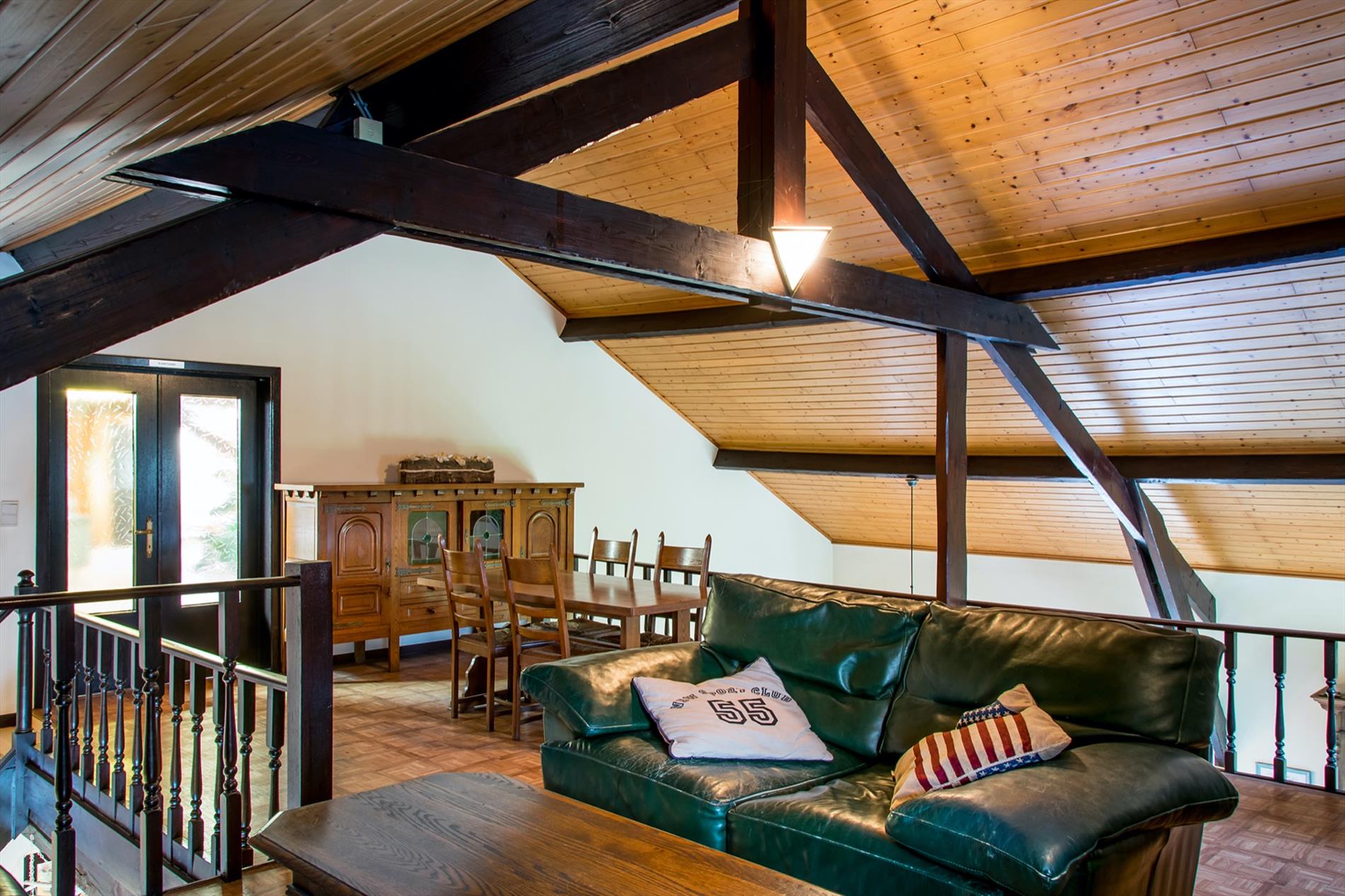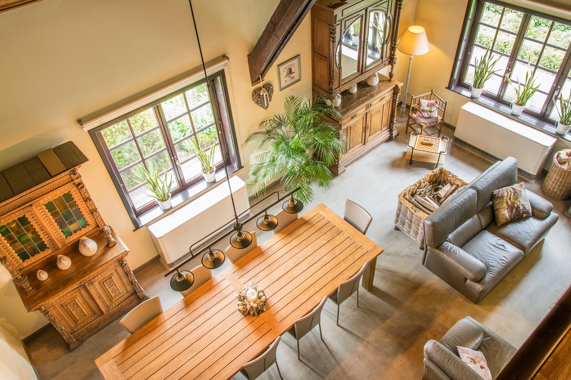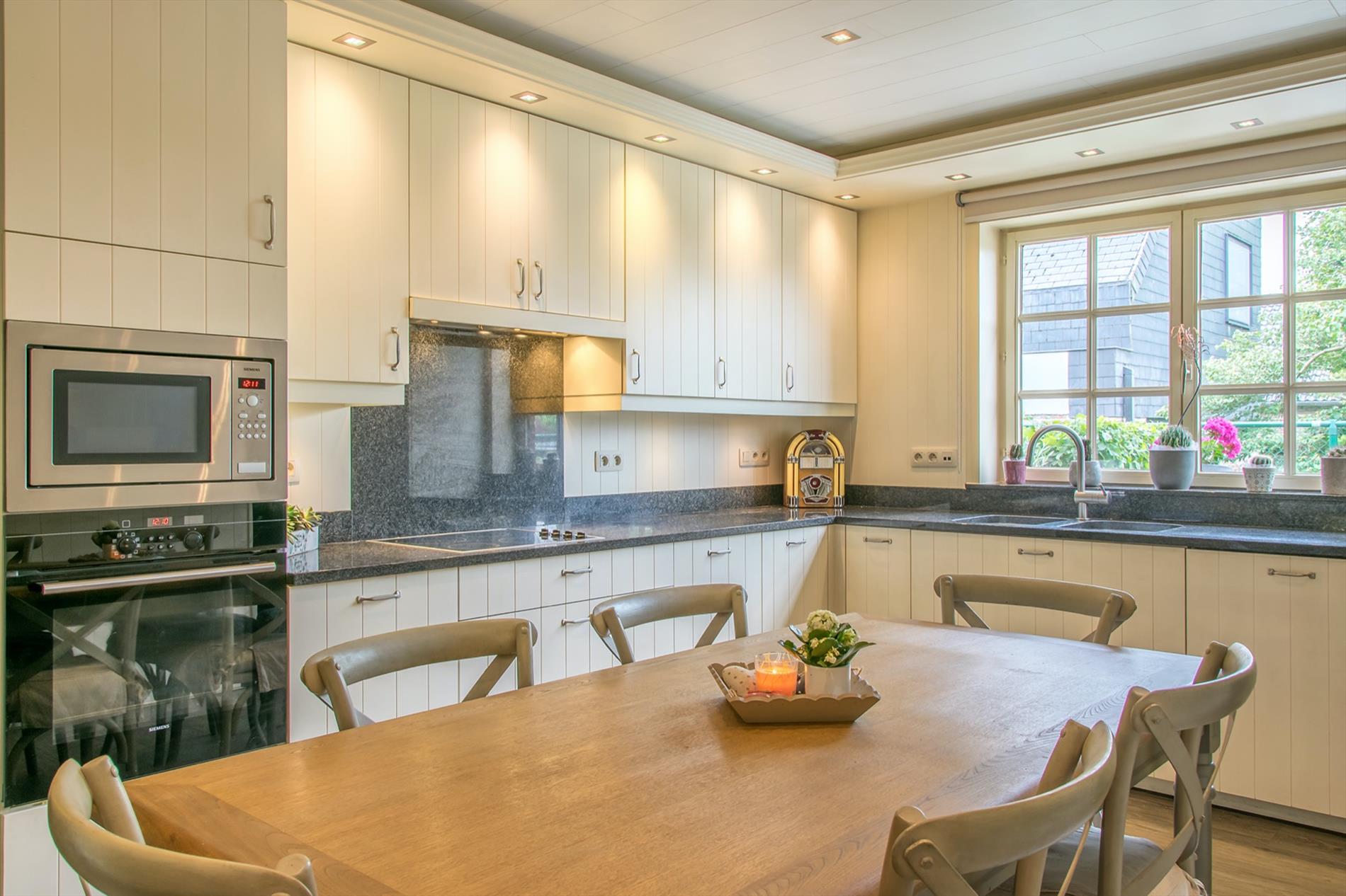 Schrijf u inIn deze villa in landelijke stijl ontvang je vrienden en familie in een omgeving met klasse! De riante woonkamer biedt een zee aan ruimte om te tafelen en gezellig te genieten aan de speksteenkachel. De ingesloten tuinkamer is hier zeker een bijkomende troef, net als het ruimtelijke gevoel dat door de hoge en open plafonds wordt gecreëerd. Naast de leefruimte bevindt zich de prachtige keuken. Via de centrale hall (die je ook kan bereiken via de voordeur) wordt je verder geleid naar de 4 ruime slaapkamers (elk met eigen lavabo), het sfeervolle bureel of 5de slaapkamer, een gastentoilet (met douche !) en de badkamer met ligbad. Via de trap bereik je een grote mezzanine met plaats voor bijvoorbeeld een TV-hoek, en achter een dubbele deur is er een gigantische polyvalente ruimte, nu bureau en 2 zolders (incl. airco en toilet). Mogelijkheid voor bijberoep of extra slaapkamers. Onder de volledige woning is er bovendien een kelderverdieping van 240 m² !