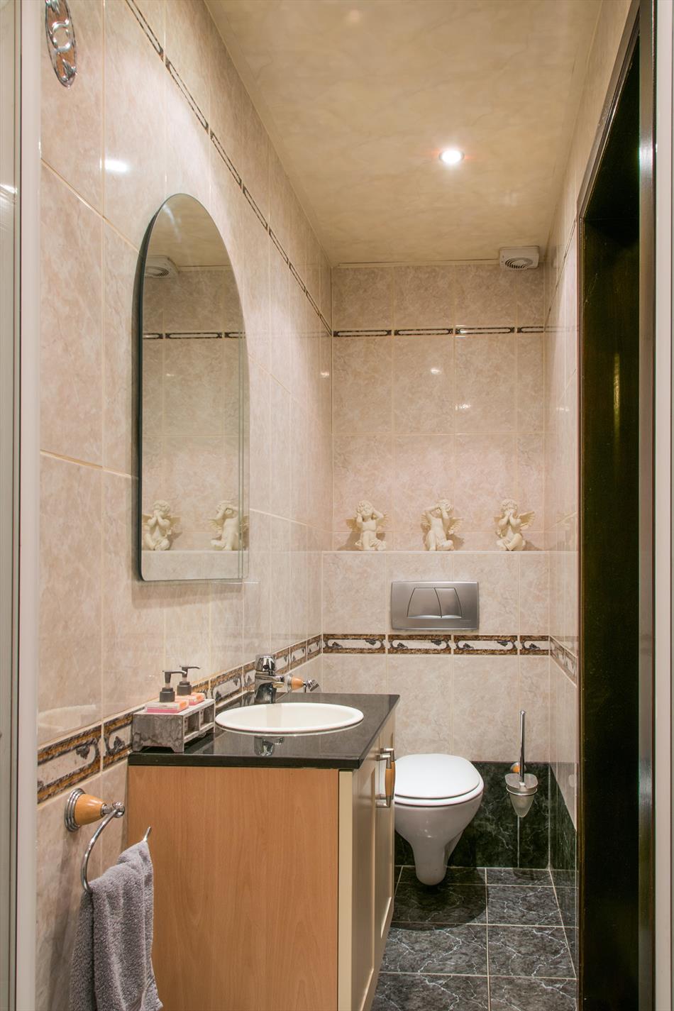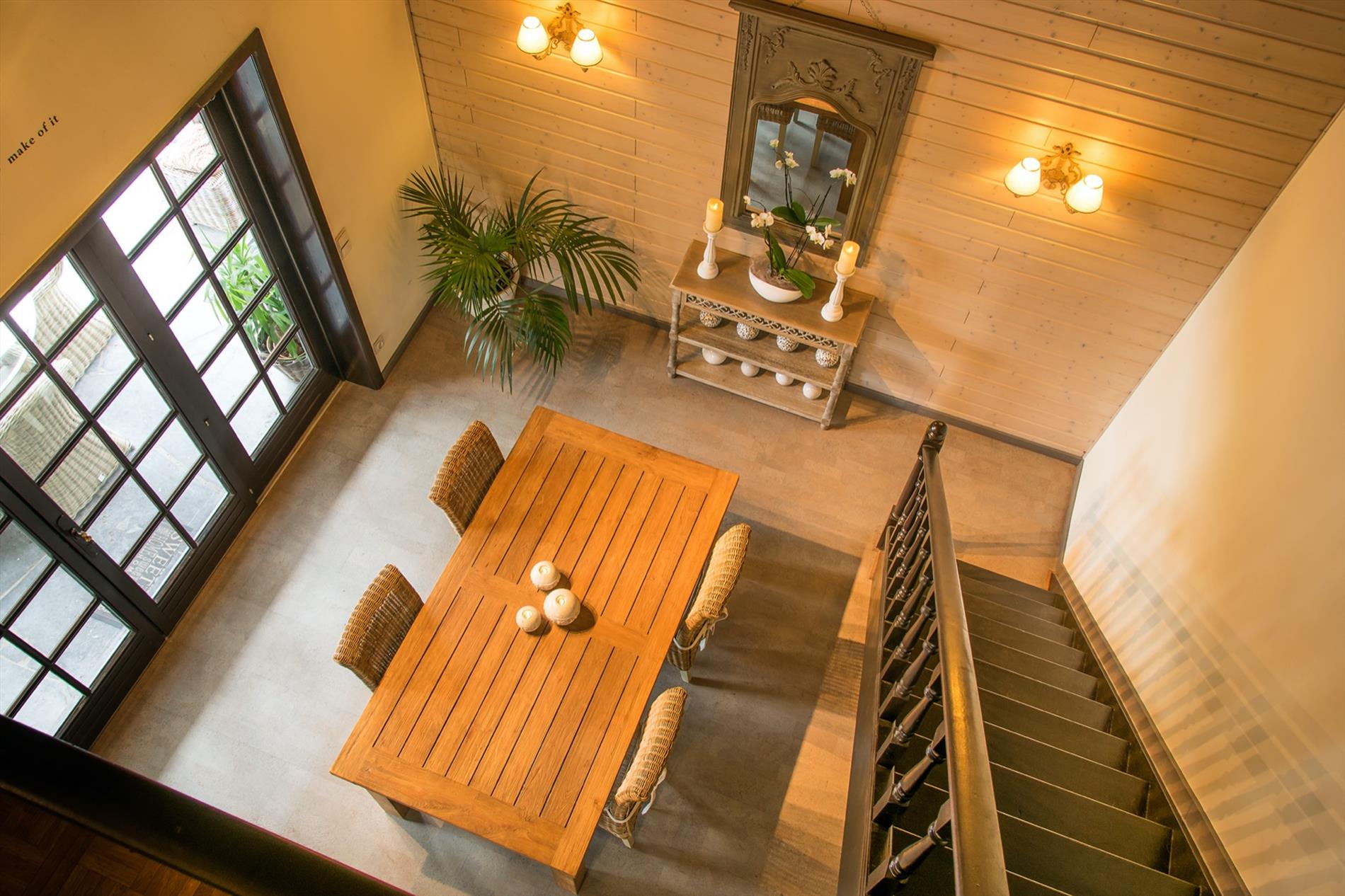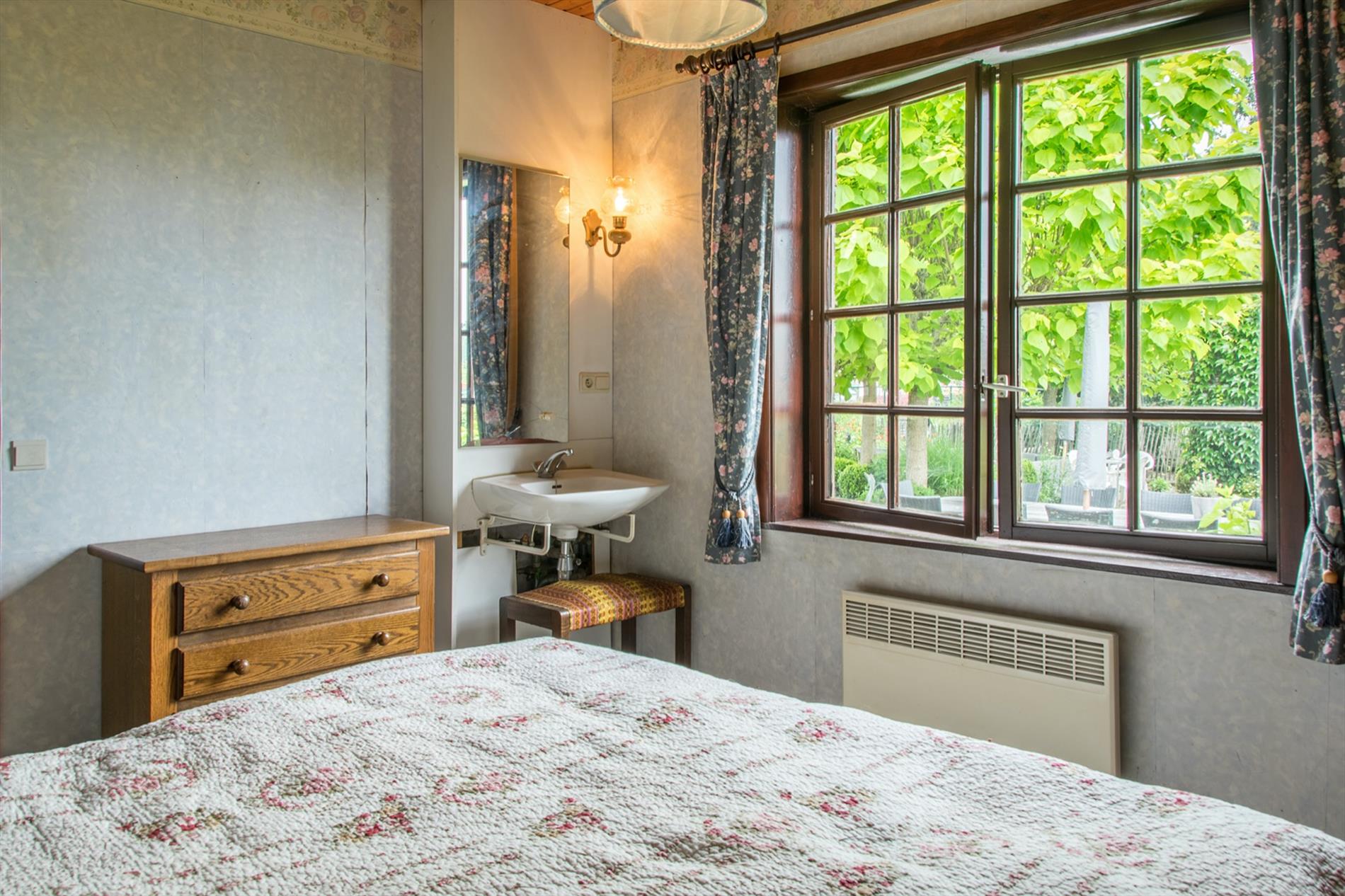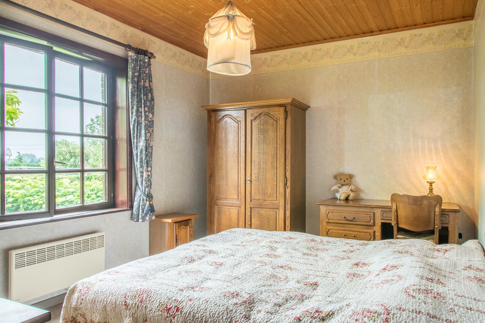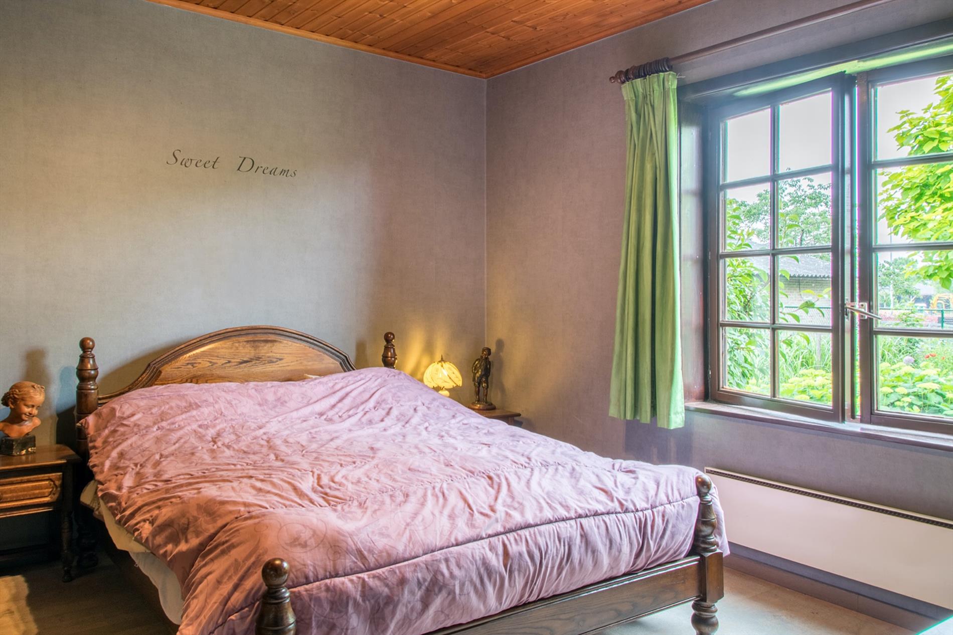 Schrijf u inIn deze villa in landelijke stijl ontvang je vrienden en familie in een omgeving met klasse! De riante woonkamer biedt een zee aan ruimte om te tafelen en gezellig te genieten aan de speksteenkachel. De ingesloten tuinkamer is hier zeker een bijkomende troef, net als het ruimtelijke gevoel dat door de hoge en open plafonds wordt gecreëerd. Naast de leefruimte bevindt zich de prachtige keuken. Via de centrale hall (die je ook kan bereiken via de voordeur) wordt je verder geleid naar de 4 ruime slaapkamers (elk met eigen lavabo), het sfeervolle bureel of 5de slaapkamer, een gastentoilet (met douche !) en de badkamer met ligbad. Via de trap bereik je een grote mezzanine met plaats voor bijvoorbeeld een TV-hoek, en achter een dubbele deur is er een gigantische polyvalente ruimte, nu bureau en 2 zolders (incl. airco en toilet). Mogelijkheid voor bijberoep of extra slaapkamers. Onder de volledige woning is er bovendien een kelderverdieping van 240 m² !
