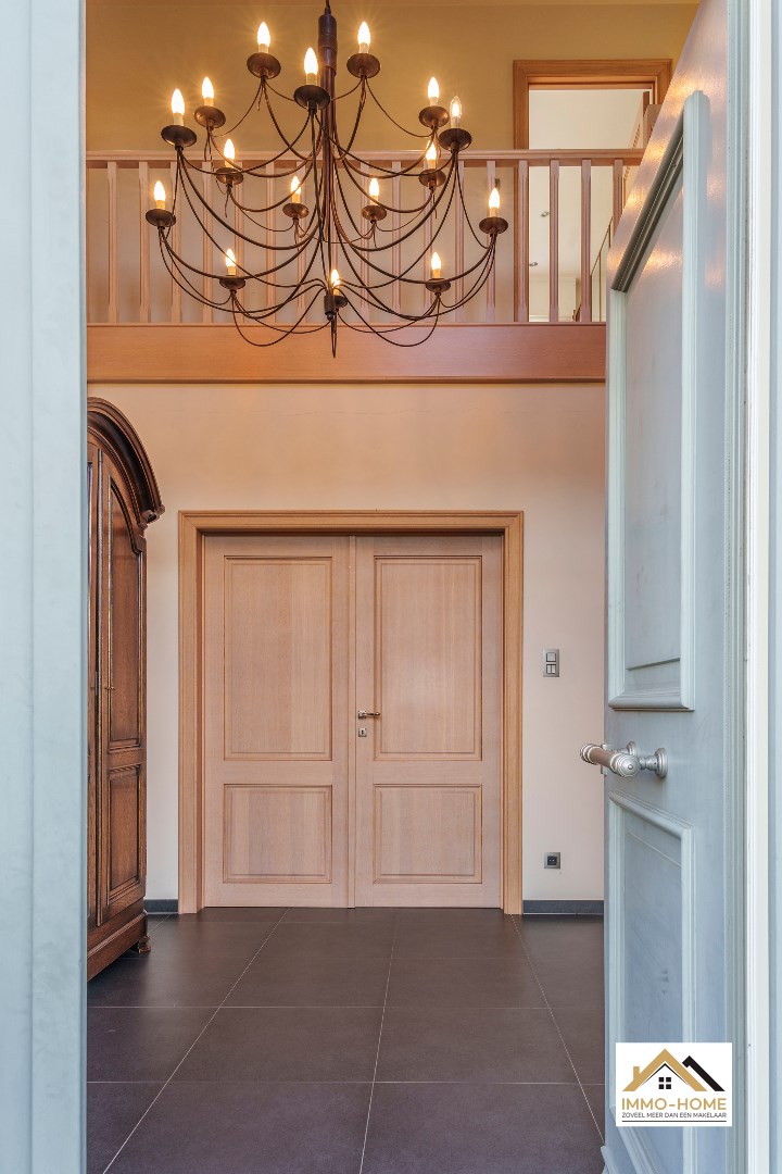 Schrijf u inDeze riante woning met een inrichting in landelijke stijl is rustig gelegen in een zeer groene omgeving, én vlot bereikbaar. Via de statige inkomhal (met gastentoilet) kom je in de grote leefruimte. De ingebouwde haard is zeker een surplus, naast het heel aangename ruimtelijke gevoel. Aanpalend bevindt zich de keuken die voorzien is van alle moderne comfort, met directe toegang tot een opslagruimte en handige kelder. Je hebt ook verbinding met de grote wasplaats/bijkeuken, die op haar beurt weer verbonden is met de tuin en de ruime dubbele garage. Naast de bijkeuken is er bovendien een mini-badkamer met douche en toilet voorzien. Op de eerste verdieping is er rond de overloop plaats voor drie slaapkamers (waarvan één met een inloopdressing), een badkamer met grote inloopdouche en een derde apart toilet. Terwijl in de tuin het zwembad en lounge voor het toetje zorgen, doet een grote polyvalente ruimte dit binnen in de woning. Bovenop dit alles is er nog extra ruimte voor uitbreiding op de grote zolder.