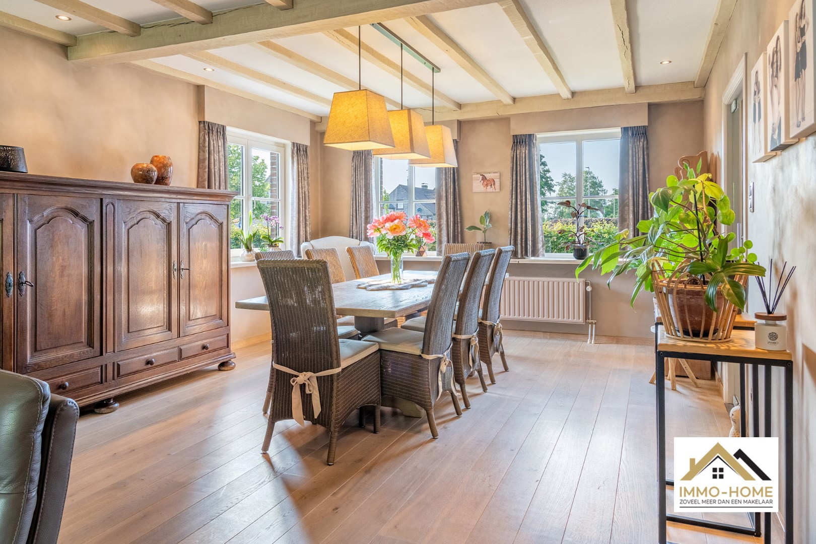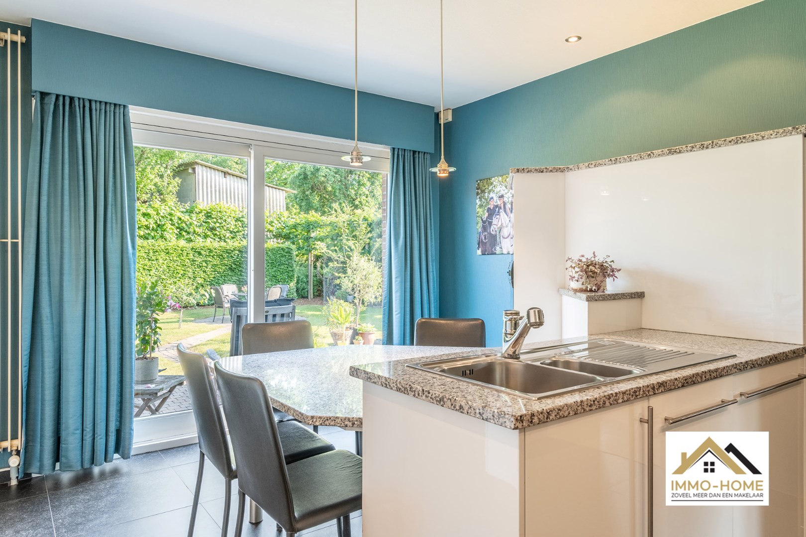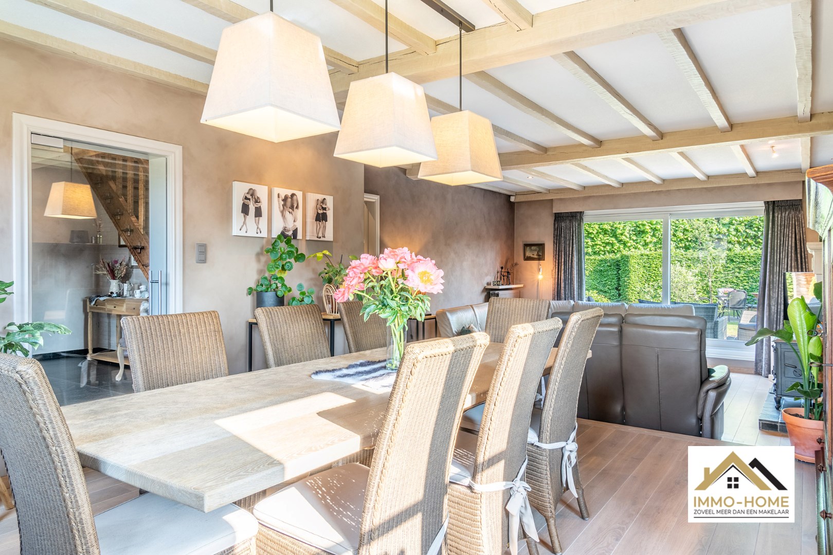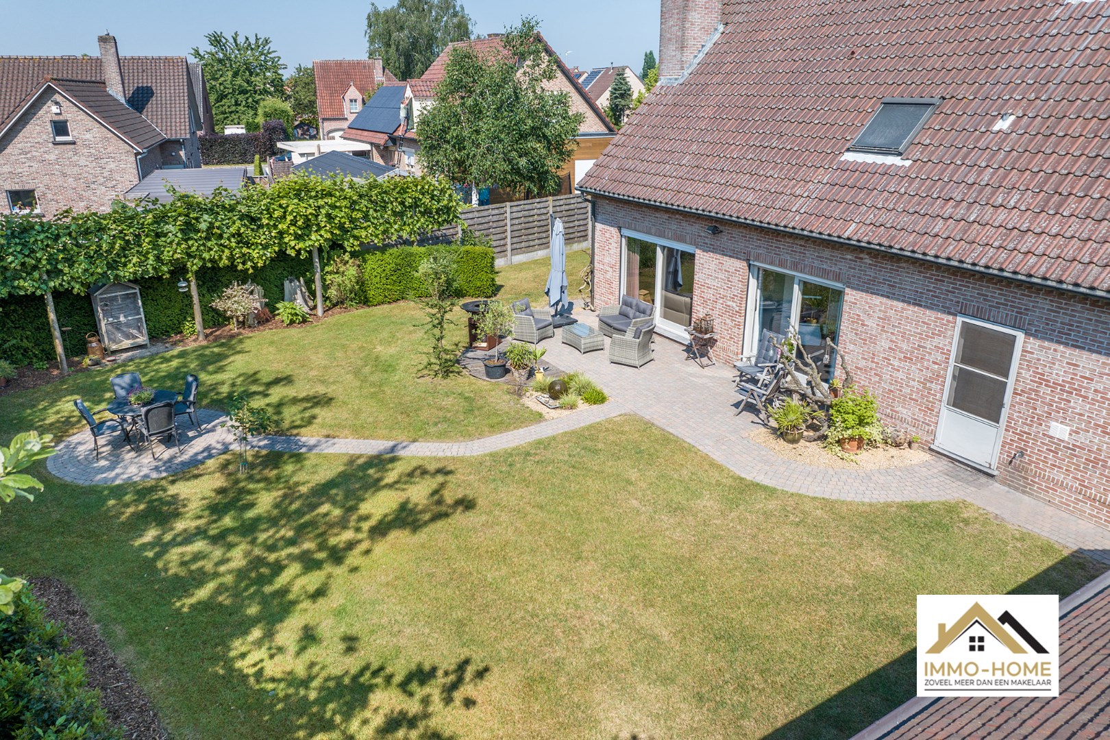 Schrijf u inDeze riante woning is gelegen op een steenworp van het prachtige natuurgebied Kalkense Meersen, maar dezelfde rust heb je ook elke dag gewoon in je eigen tuin, perfect zuidgericht! Via de ruime inkomhal (met gastentoilet) kom je via een glazen deur in de zeer aangename en lichtrijke leefruimte. Contact met de tuin is er rondom, en langs het grote schuifraam kom je ook op het tuinterras. De stijlvolle schouwmantel geeft nog een extra toets, net als de massief houten vloer die voor extra gezelligheid zorgt. De aanpalende keuken is voorzien van alle comfort, en ook van hieruit heb je contact met de tuin. Verderop beschik je over een ruime wasplaats met douche en berging, en zo kom je ook in zowel de tuin als de garage. Op de eerste verdieping is er rond de grote overloop ruimte voor vier ruime slaapkamers en de badkamer met ligbad. In de tuin beschik je over een leuke lounge, waardoor je eigenlijk bijna het jaar rond van het buitenleven kan genieten. Extra opbergruimte is er op de grote zolder en in het tuinhuis voorzien. Voor bezoek : inschrijvingen via mail naar tommy@immo-home.be, geen telefonische inschrijvingen! Volg ons op Fb en insta. Voor meer info: www.immo-home.be