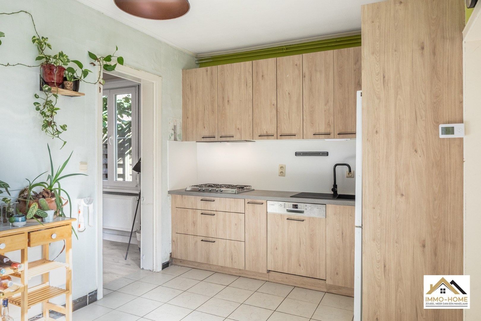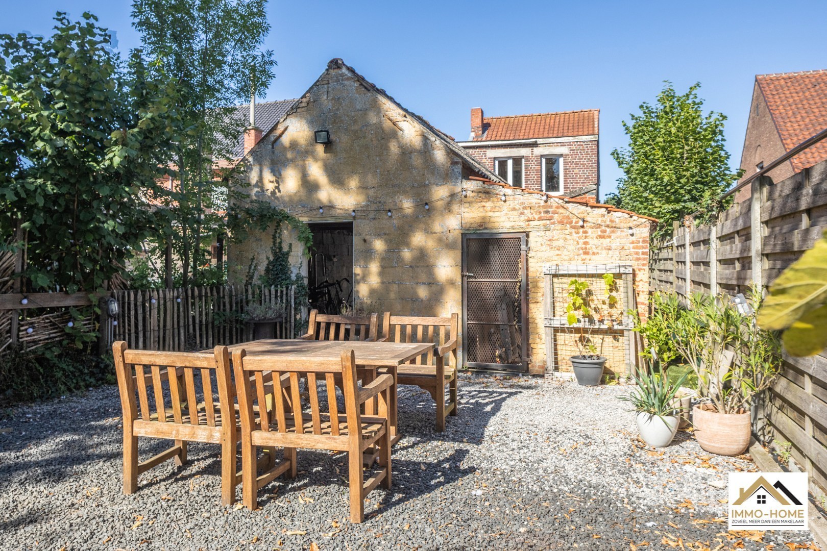 Schrijf u inIn Waarschoot (Lievegem) vind je deze starterswoning. Via de inkomhal betreed je de woonruimte met eethoek en lichtrijke zithoek. De open verbinding met de ingerichte, ruime en lichte keuken met gasfornuis maakt het geheel bijzonder functioneel en aangenaam. Aansluitend bevindt zich de badkamer met douche, lavabomeubel en toilet. Op de verdieping leidt de trap naar een masterbedroom en een tweede kamer die momenteel is ingericht als bureau. De zolder is geïsoleerd, vlot toegankelijk en biedt extra bergruimte. De grote tuin is bereikbaar via een zij-ingang en vanuit de keuken en herbergt verschillende troeven: een aparte berging met plaats voor wasmachine en droogkast, een bijkomend gebouw dat dienstdoet als werkatelier, en als kers op de taart een gezellig terras met een vrij uitzicht op de tuin en de achterliggende weilanden. Hier is het heerlijk vertoeven op zomerse avonden, in alle rust en privacy. Leuk is de plaatsing van de woning ten opzichte van de straat, op grotere afstand en met heel wat mogelijkheden voor het plaatsen van wagens. Kortom, een instapklare woning met karakter en potentieel, ideaal voor wie rustig wil wonen in een groene, landelijke omgeving met alle basisvoorzieningen binnen handbereik. Inschrijven voor bezoekdag via mail naar tommy@immo-home.be, geen telefonische inschrijvingen! Volg ons op Fb en Insta. Voor meer info: www.immo-home.be. GRATIS SCHATTING & GRATIS FINANCIEEL ADVIES