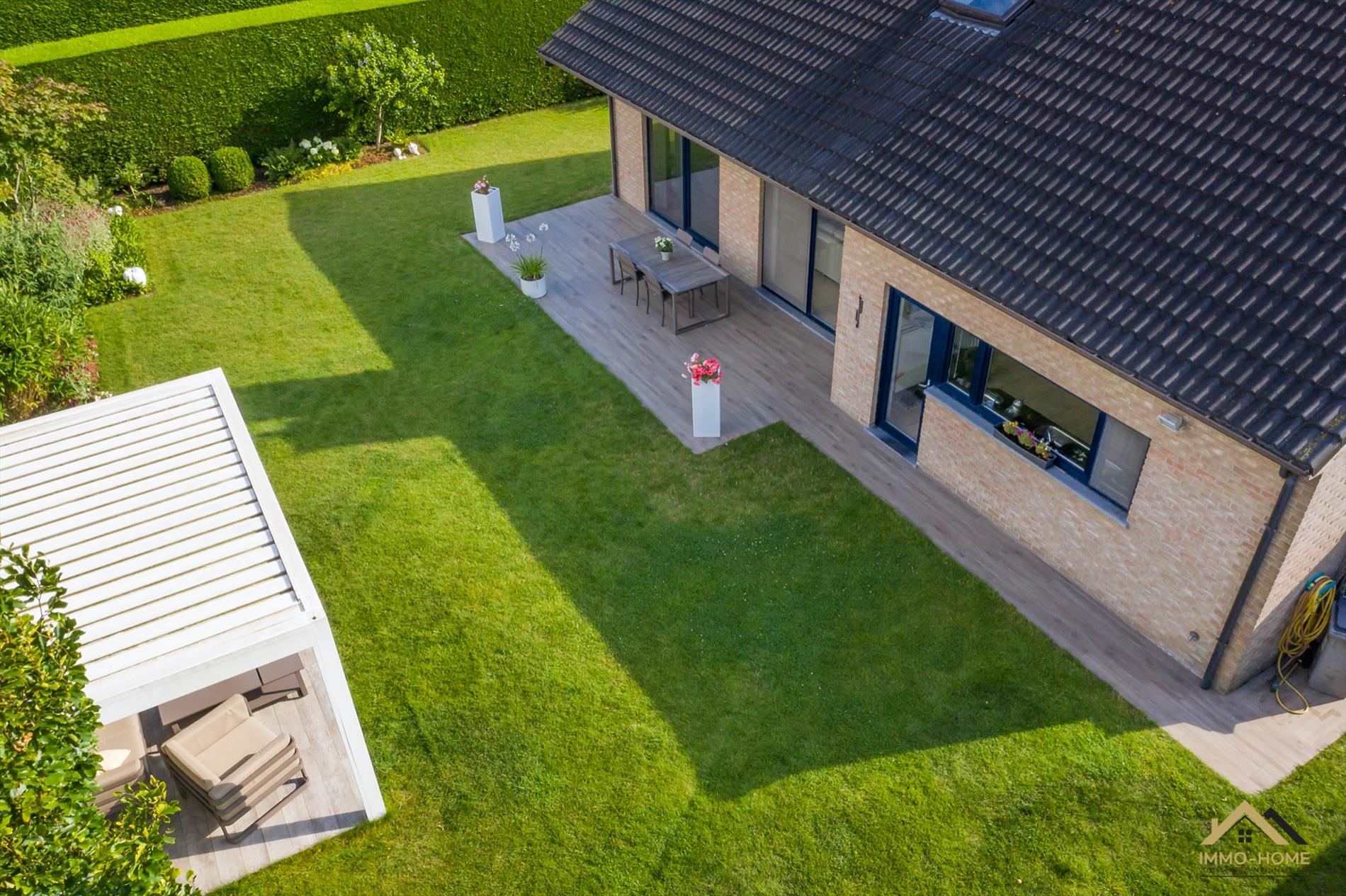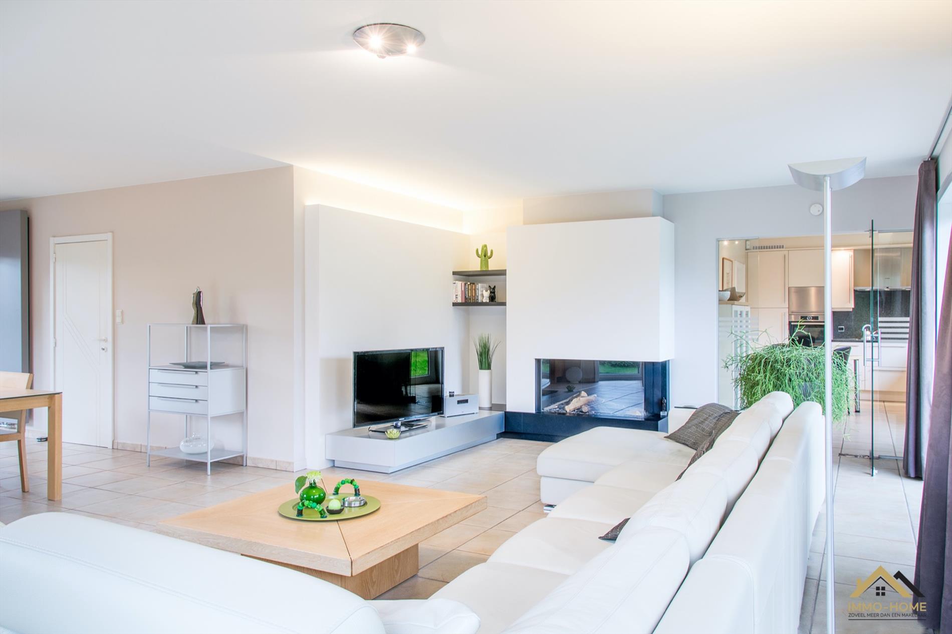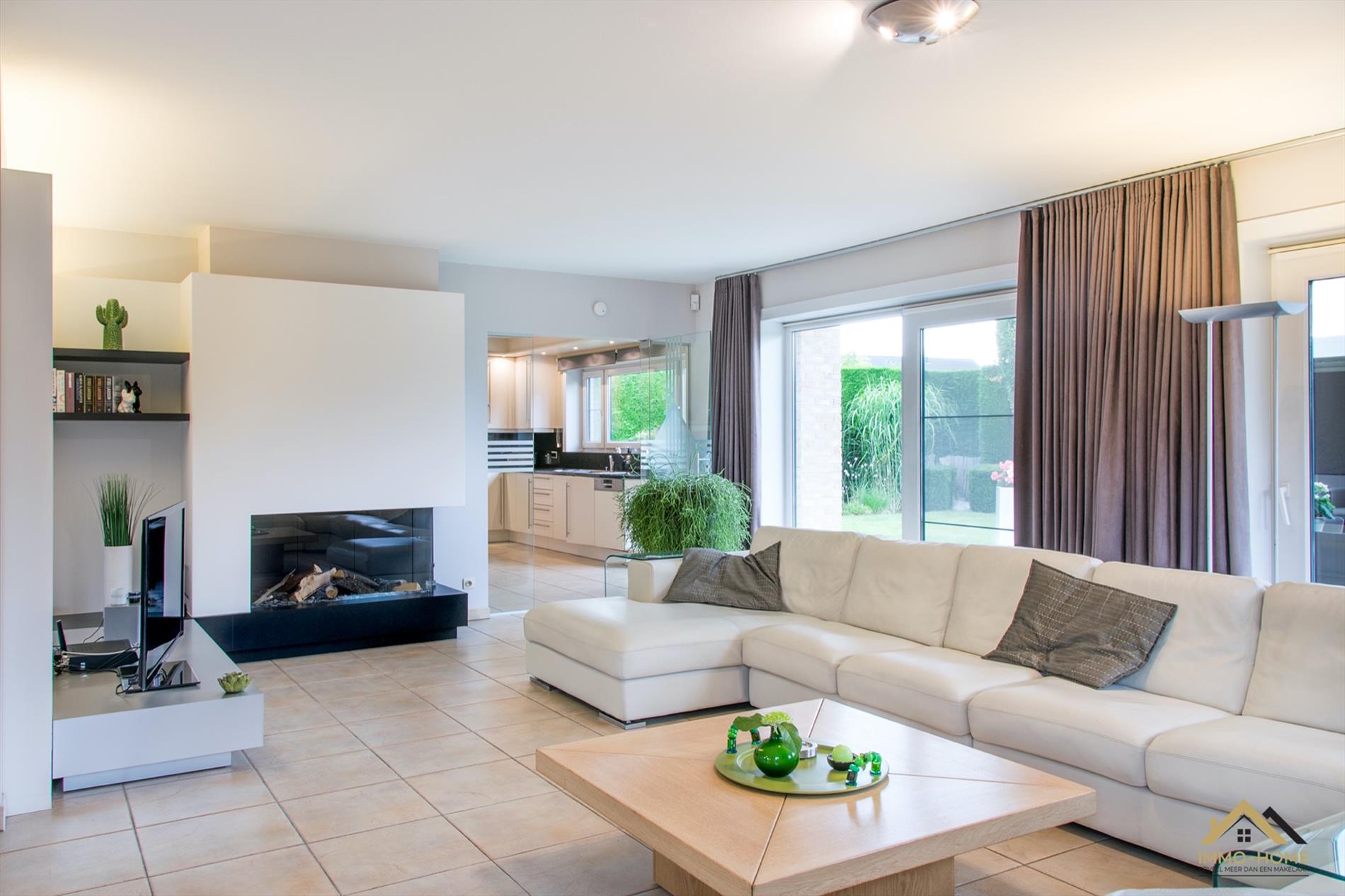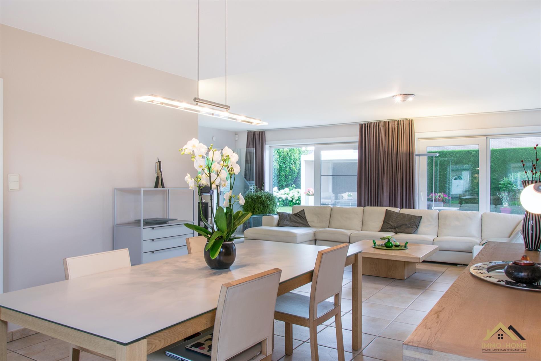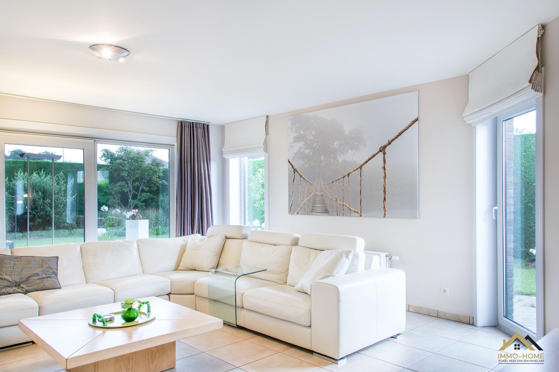 In de riante inkomhal van deze perfect onderhouden en instapklare villa verwelkom je elke gast in stijl. Via de hal (met gastentoilet) bereik je de grote L-vormige leefruimte met zeer veel lichtinval door de vele raampartijen rondom. Deze zorgen ook voor een heel open contact met de tuin en het aangename terras. De stijlvol ingewerkte gashaard maakt het plaatje compleet. De keuken is semi-open, door de glazen deur die de afscheiding vormt tussen keuken en living. De keuken zelf is evenzeer ruim, met ook hier weer mooi zicht op de tuin (en directe toegang tot het terras). Alle comfort is aanwezig, en het natuursteen werkblad zorgt voor een extra touch. De dubbele garage (met automatische poort) is zowel via de inkomhal als de keuken bereikbaar. Op de eerste verdieping bevinden zich drie zeer ruime slaapkamers (waarvan één met aansluitende dressing), een grote badkamer met bad én douche, een handige bergruimte en een tweede toilet. Genieten van de tuin doe je zeker en vast vanuit de hippe lounge met regelbare afscherming en elektrisch bediende zijpanelen !