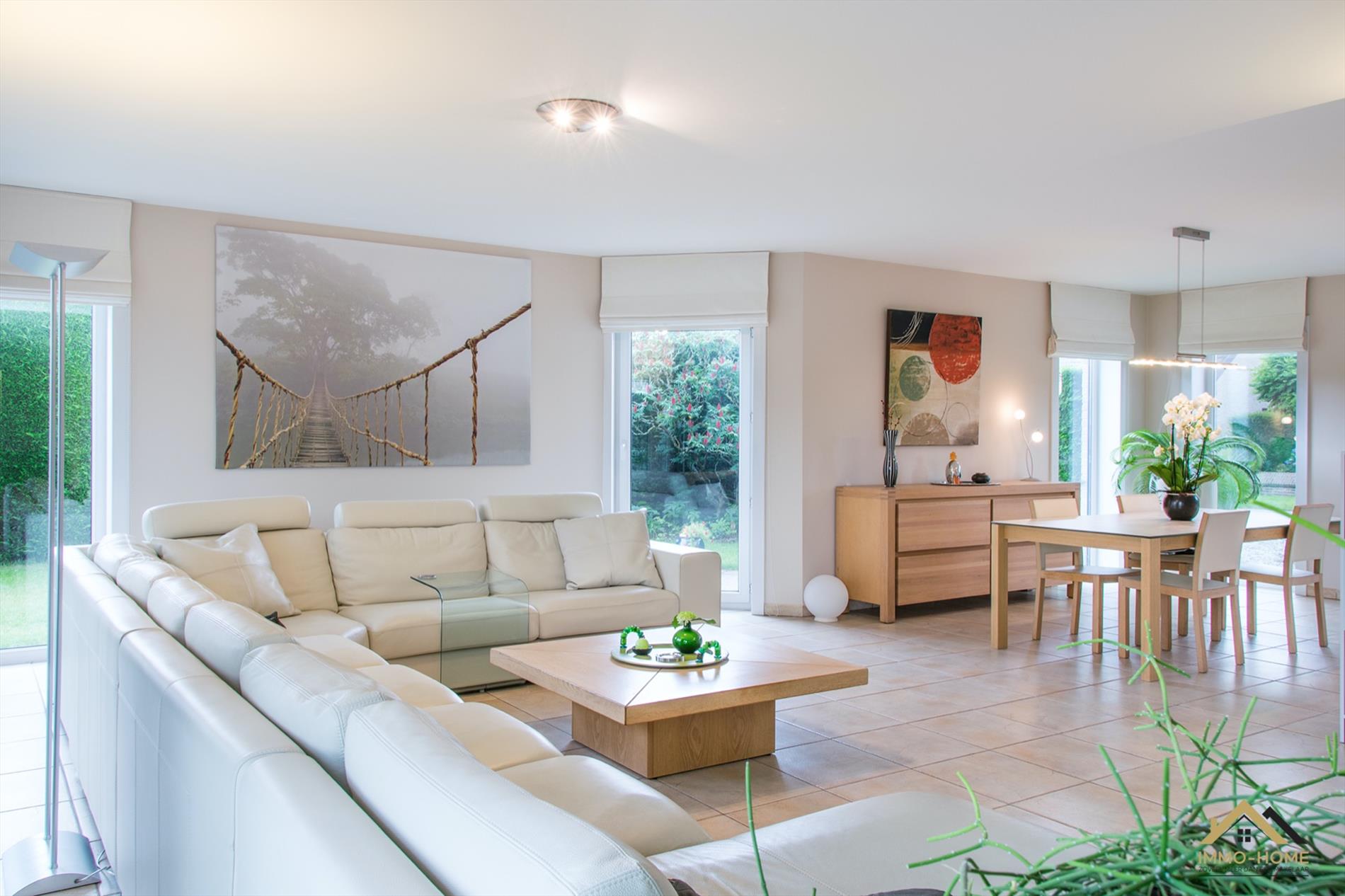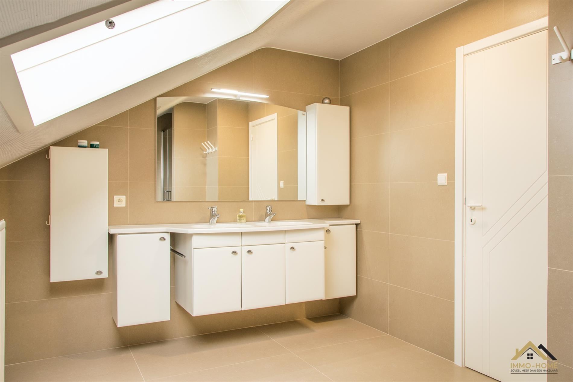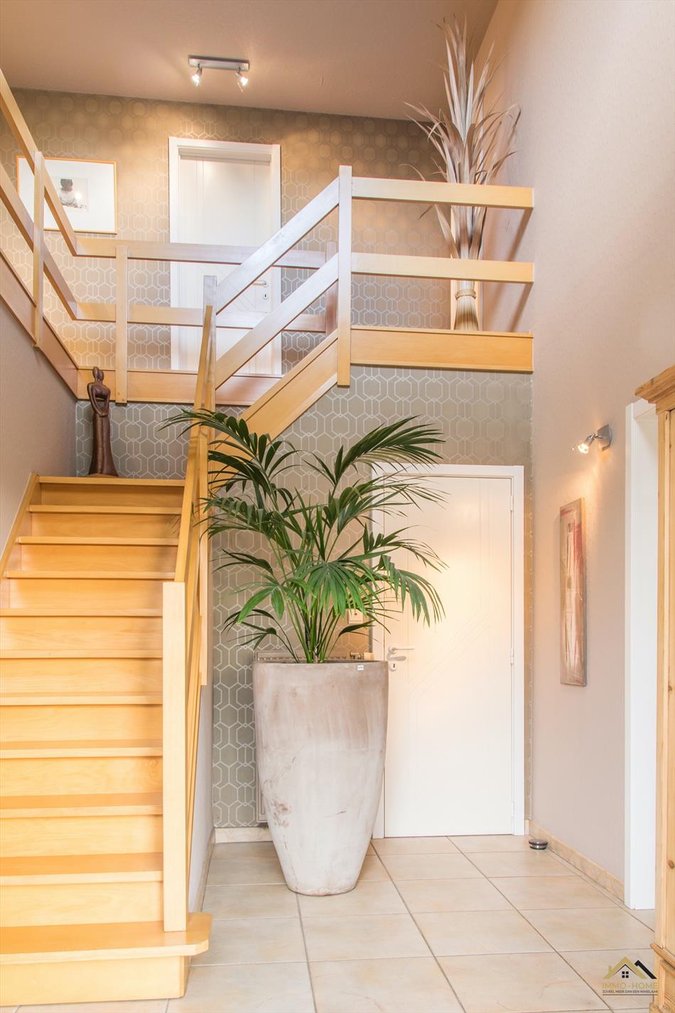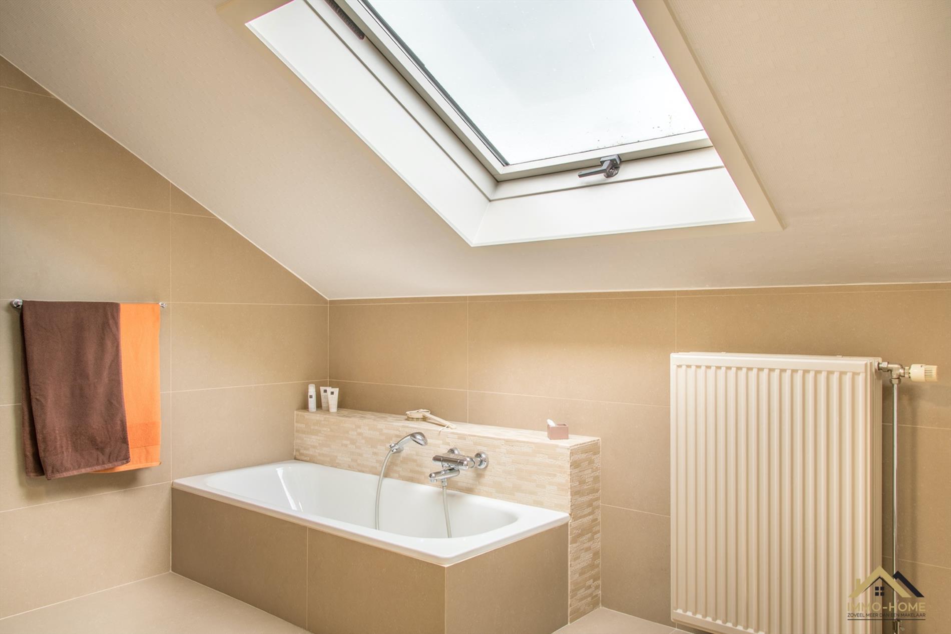 In de riante inkomhal van deze perfect onderhouden en instapklare villa verwelkom je elke gast in stijl. Via de hal (met gastentoilet) bereik je de grote L-vormige leefruimte met zeer veel lichtinval door de vele raampartijen rondom. Deze zorgen ook voor een heel open contact met de tuin en het aangename terras. De stijlvol ingewerkte gashaard maakt het plaatje compleet. De keuken is semi-open, door de glazen deur die de afscheiding vormt tussen keuken en living. De keuken zelf is evenzeer ruim, met ook hier weer mooi zicht op de tuin (en directe toegang tot het terras). Alle comfort is aanwezig, en het natuursteen werkblad zorgt voor een extra touch. De dubbele garage (met automatische poort) is zowel via de inkomhal als de keuken bereikbaar. Op de eerste verdieping bevinden zich drie zeer ruime slaapkamers (waarvan één met aansluitende dressing), een grote badkamer met bad én douche, een handige bergruimte en een tweede toilet. Genieten van de tuin doe je zeker en vast vanuit de hippe lounge met regelbare afscherming en elektrisch bediende zijpanelen !