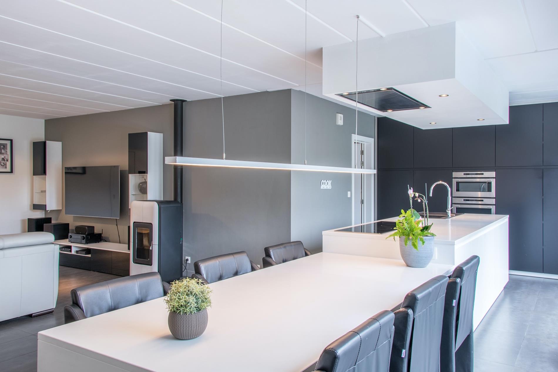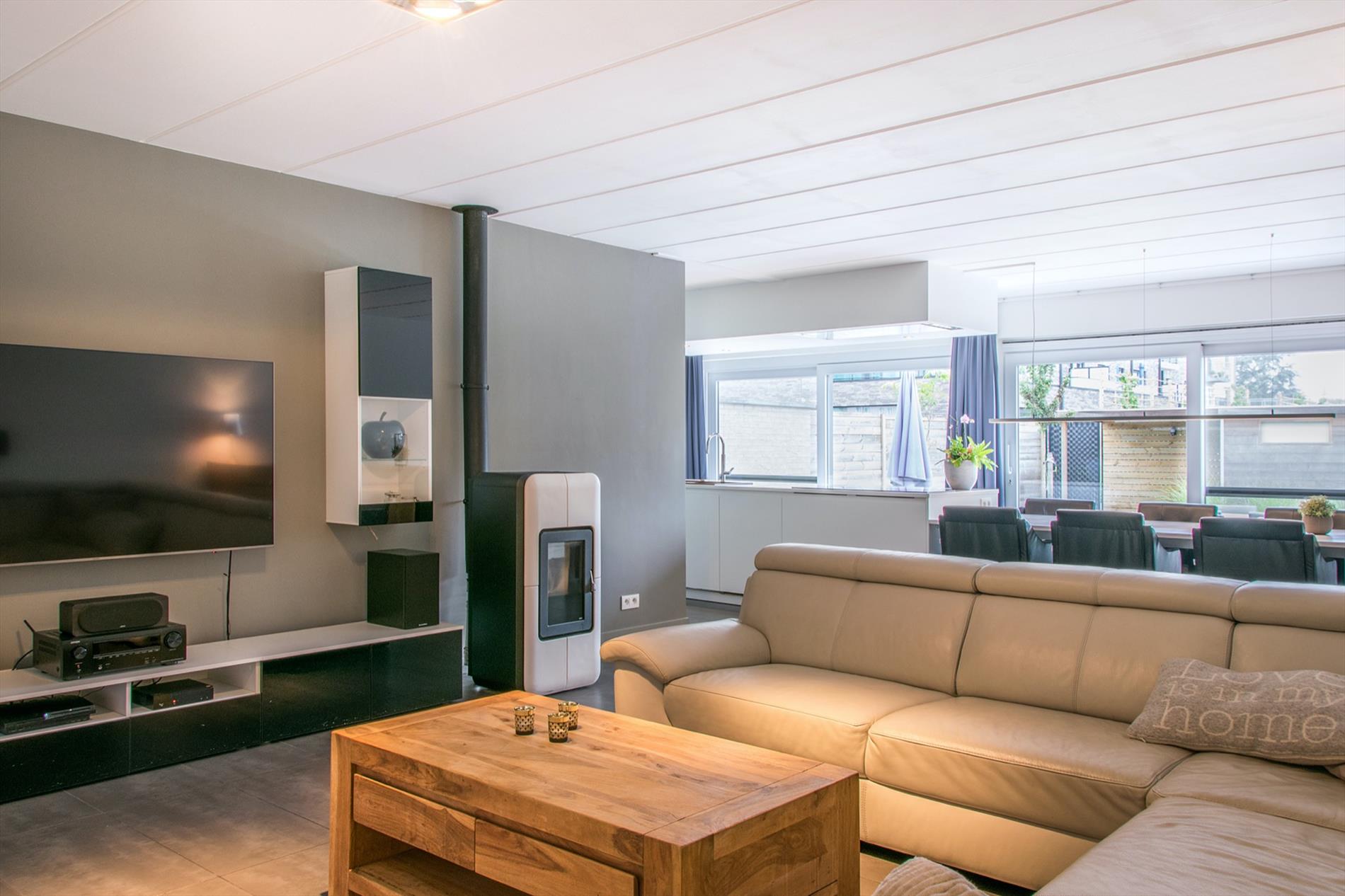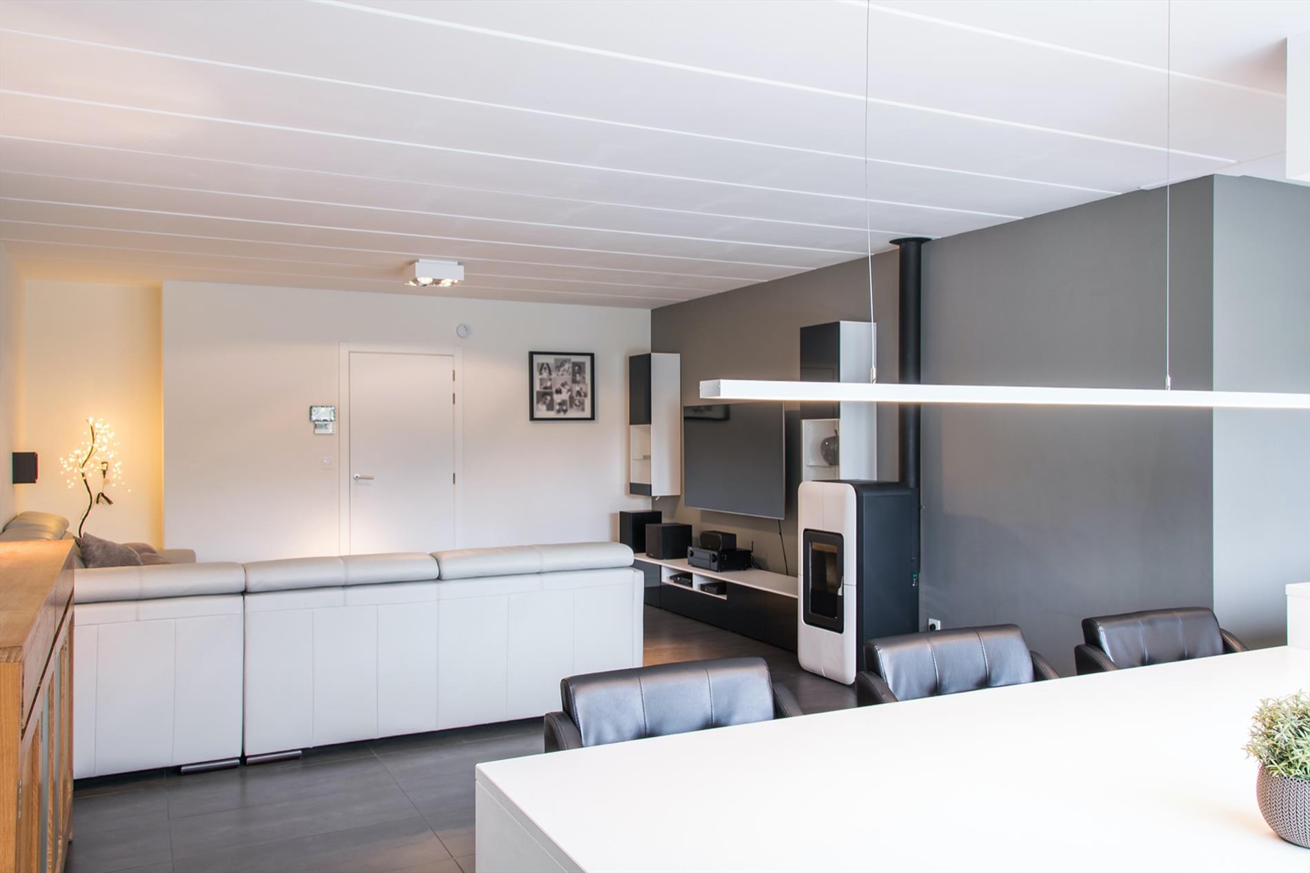 Deze moderne woning is super rustig gelegen in een doodlopende straat, maar toch letterlijk op wandelafstand van alle faciliteiten van Lochristi (school, openbaar vervoer, winkels, ...). De ruime inkomhal incl. gastentoilet zet met de stijlvolle trap meteen de toon. De L-vormige leefruimte met de open keuken is heel ruim, en de gevelbrede glaspartij zorgt er voor dat er altijd contact met de aangename tuin en het gezellige terras is. Een pelletkachel zorgt bovenop de vloerverwarming voor extra sfeer in huis. De keuken is zeer strak, met een prachtig lang kookeiland, aansluitende eettafel en op maat gemaakte wandkasten. Naast de keuken is er een handige wasplaats/opbergruimte die doorloopt naar de garage . Op de eerste verdieping bevindt zich de master bedroom met en suite dressing en aansluitende badkamer met ligbad. Daarnaast heb je nog twee mooie slaapkamers, een tweede badkamer met douche en een afzonderlijk tweede toilet. De massief houten vloer zorgt voor een bijzonder extra warm gevoel ! De prachtig aangelegde tuin heeft aan de achterzijde via een poortje verbinding met een fietspad. De tuinberging is deel afgesloten en deels een overdekte lounge.10 zonnepanelen. Boven elek. rolluiken. EPC 125.