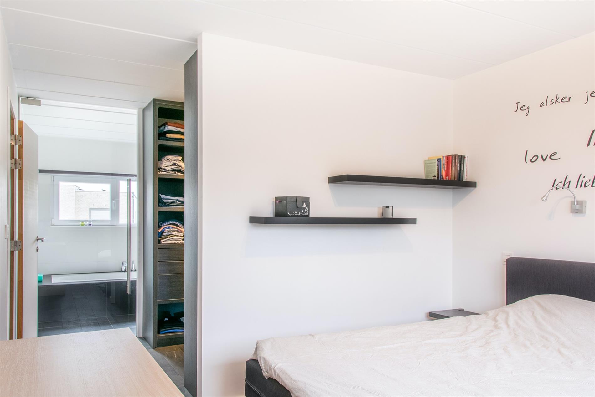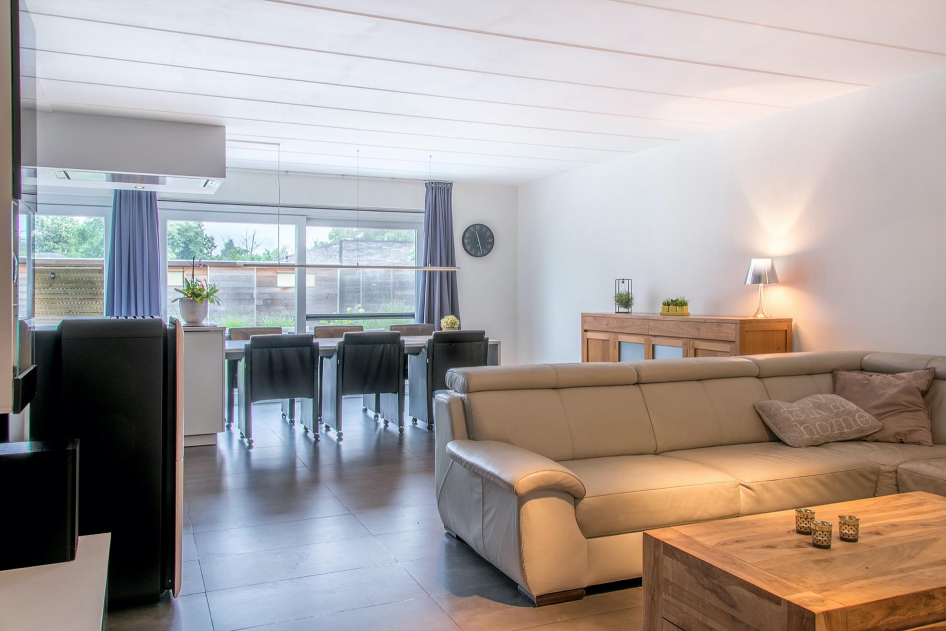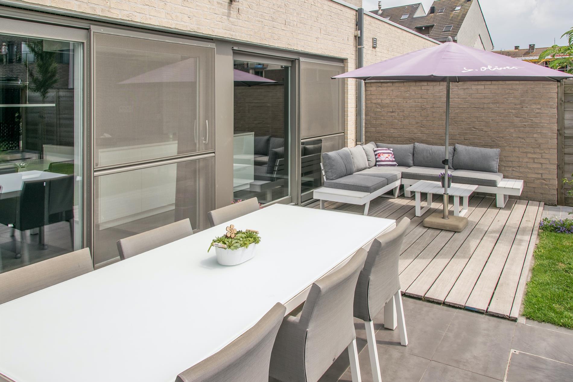 Deze moderne woning is super rustig gelegen in een doodlopende straat, maar toch letterlijk op wandelafstand van alle faciliteiten van Lochristi (school, openbaar vervoer, winkels, ...). De ruime inkomhal incl. gastentoilet zet met de stijlvolle trap meteen de toon. De L-vormige leefruimte met de open keuken is heel ruim, en de gevelbrede glaspartij zorgt er voor dat er altijd contact met de aangename tuin en het gezellige terras is. Een pelletkachel zorgt bovenop de vloerverwarming voor extra sfeer in huis. De keuken is zeer strak, met een prachtig lang kookeiland, aansluitende eettafel en op maat gemaakte wandkasten. Naast de keuken is er een handige wasplaats/opbergruimte die doorloopt naar de garage . Op de eerste verdieping bevindt zich de master bedroom met en suite dressing en aansluitende badkamer met ligbad. Daarnaast heb je nog twee mooie slaapkamers, een tweede badkamer met douche en een afzonderlijk tweede toilet. De massief houten vloer zorgt voor een bijzonder extra warm gevoel ! De prachtig aangelegde tuin heeft aan de achterzijde via een poortje verbinding met een fietspad. De tuinberging is deel afgesloten en deels een overdekte lounge.10 zonnepanelen. Boven elek. rolluiken. EPC 125.