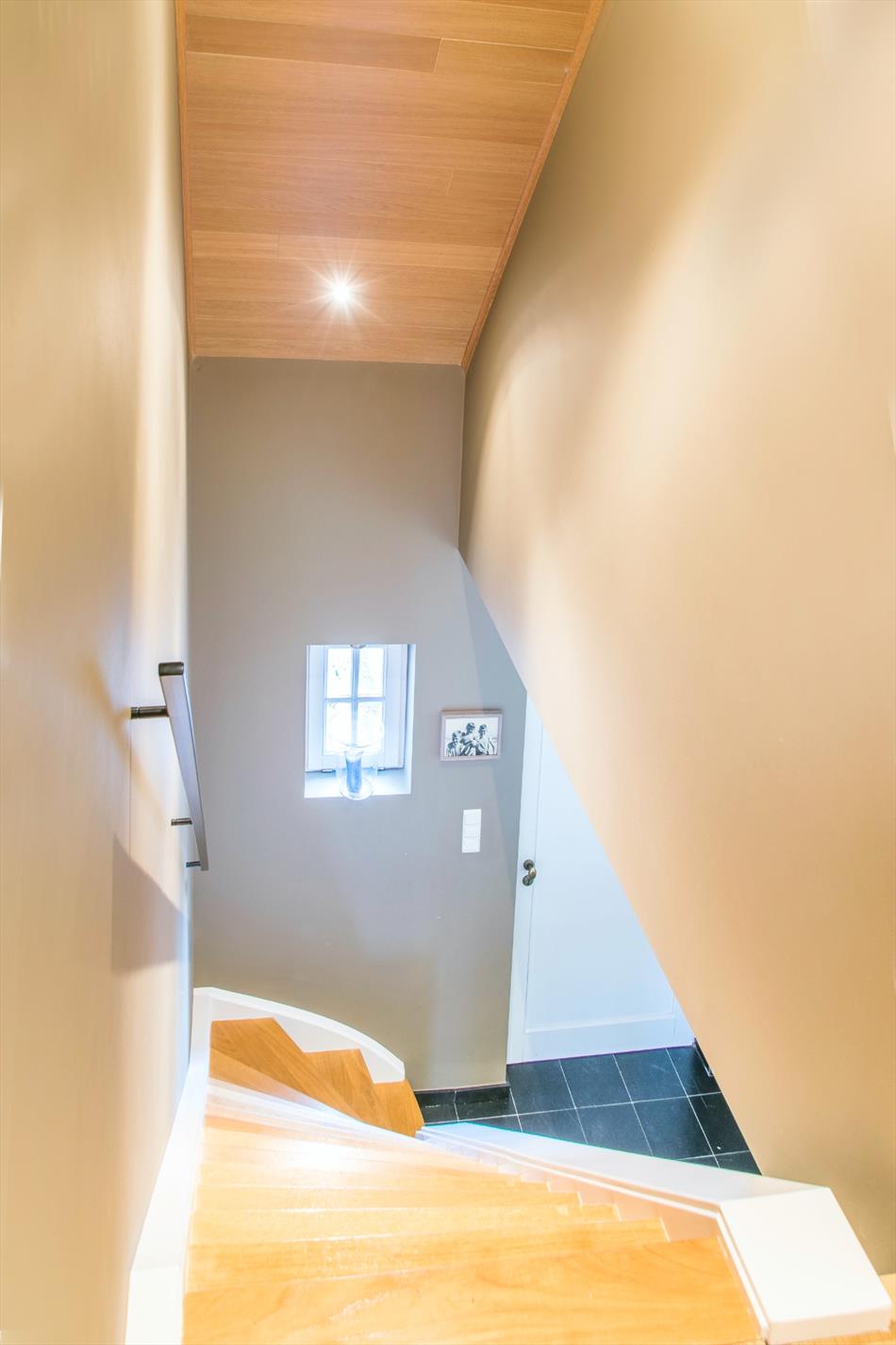 De stijlvolle combinatie van materialen, kleuren en afwerking zal je dan ook overal terugvinden. Ook de volledig uitgeruste keuken draagt bij aan de warme, huiselijke sfeer van het gelijkvloers. Verder bevindt zich op deze verdieping nog een ruime garage en wasplaats.