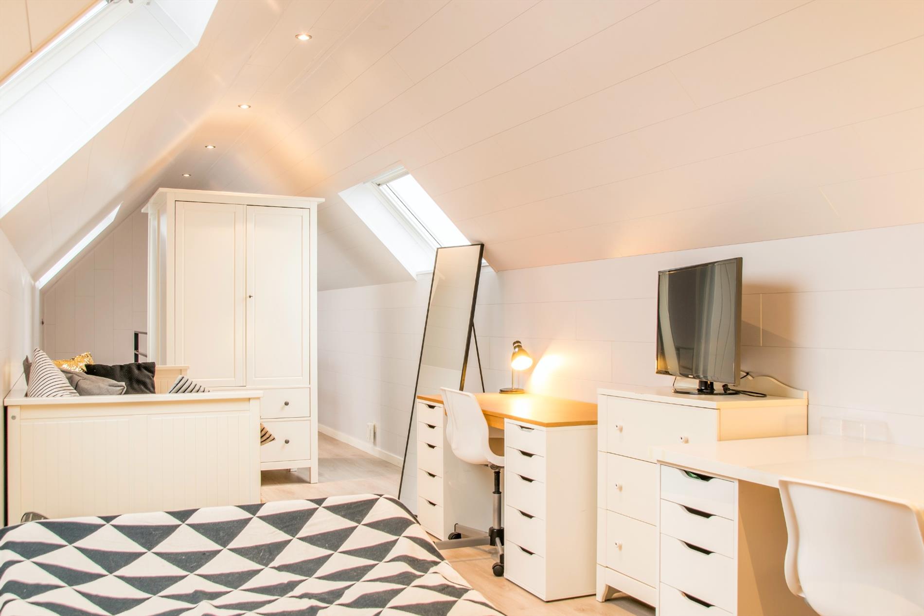 De afgewerkte zolderverdieping heeft ruimte in overvloed als extra slaap-,hobbykamer, bureel, ... en is voorzien van 3 veluxen en vaste trap.