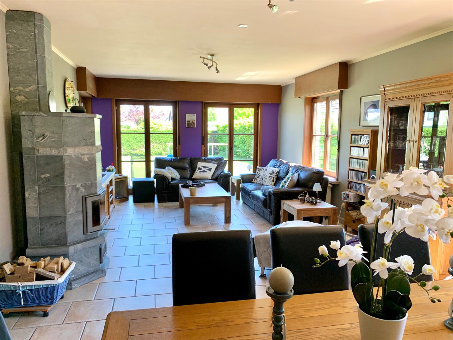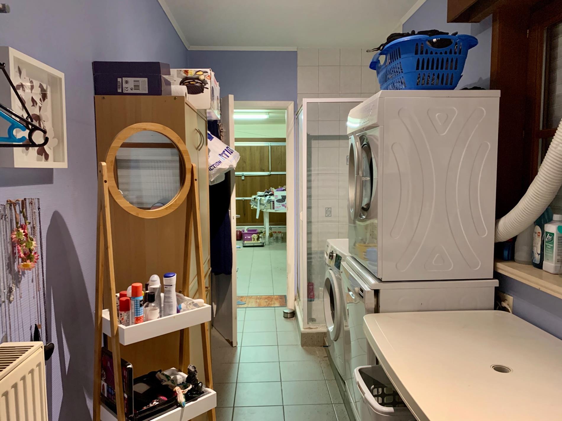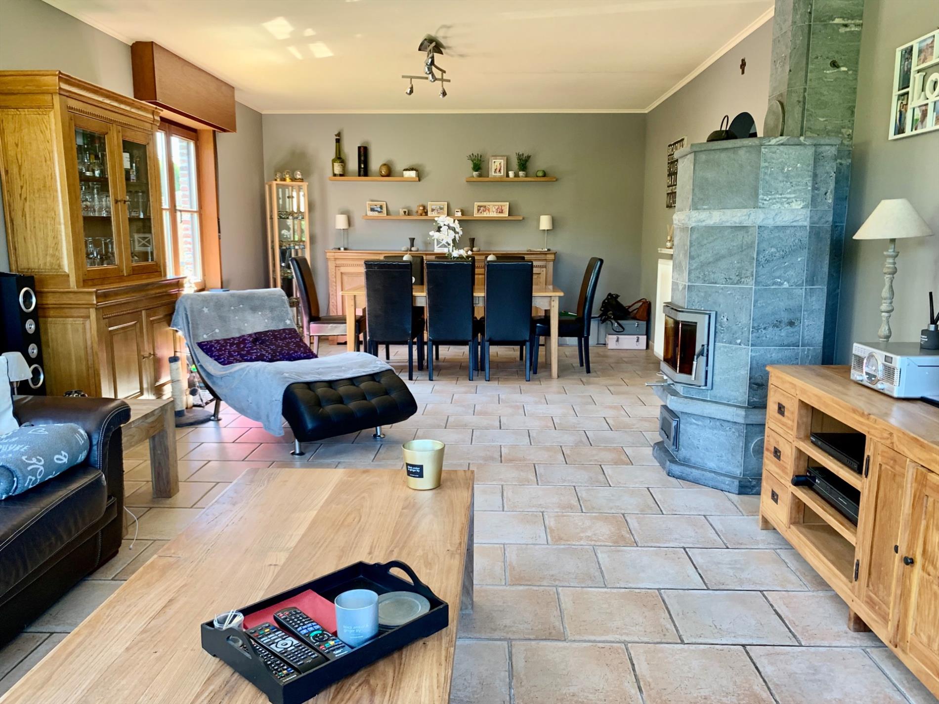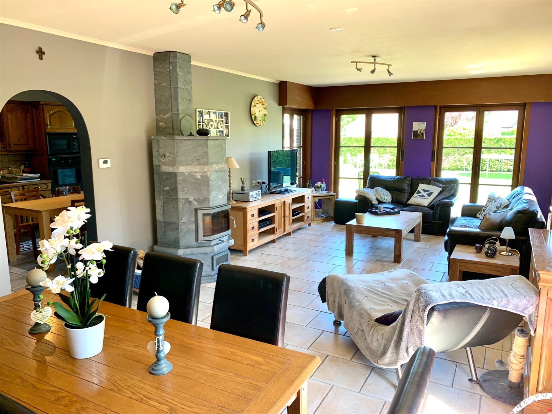 In de zonovergoten woonkamer is een speksteenhaard voorzien, maar toch is er overal ook aardgas. Aangrenzend heeft u de half open keuken met aansluitend een grote berging met extra douche, lavabo en aansluiting voor wasmachine en droogkast. Van hieruit kan u ook de garage bereiken.