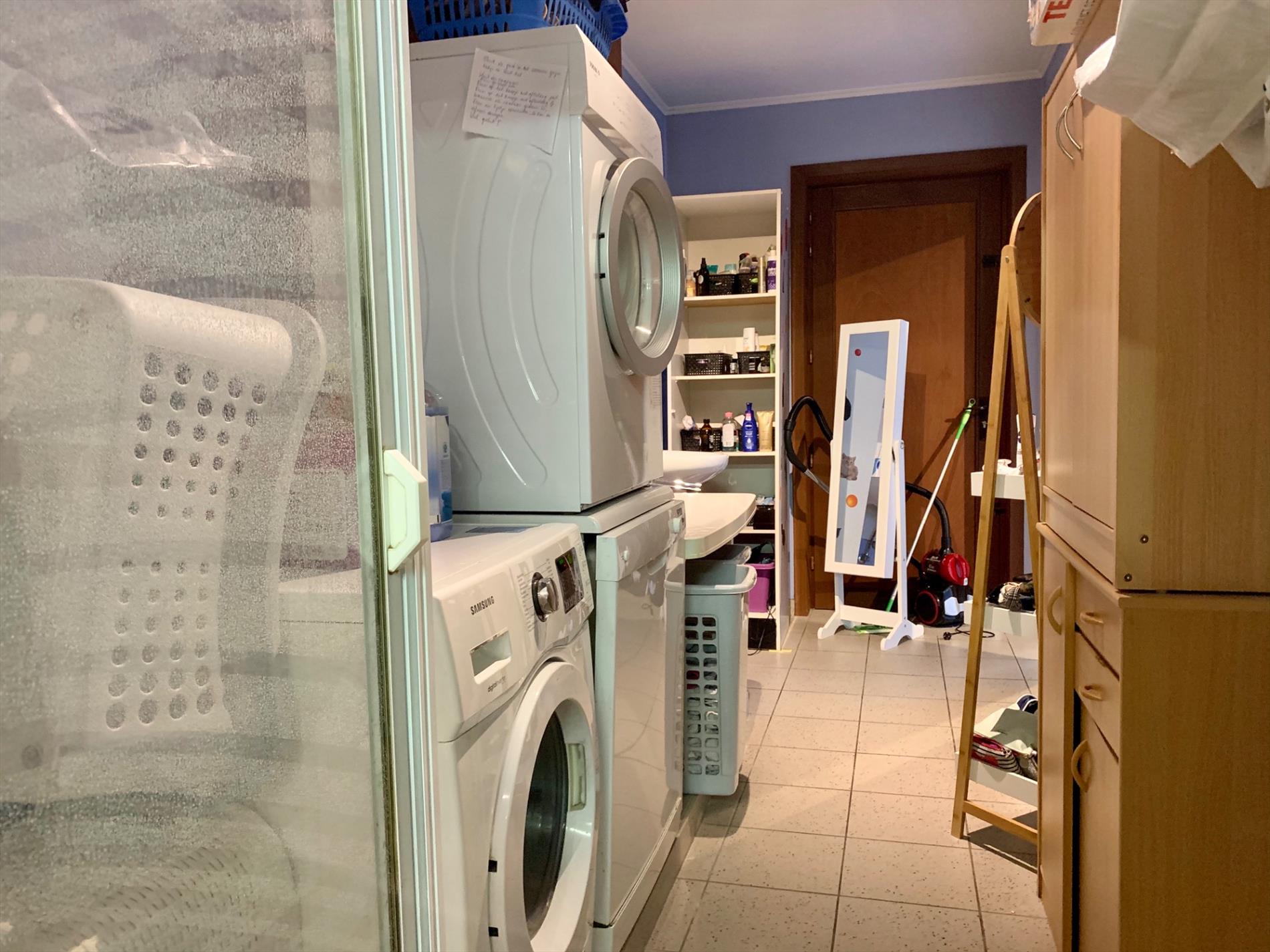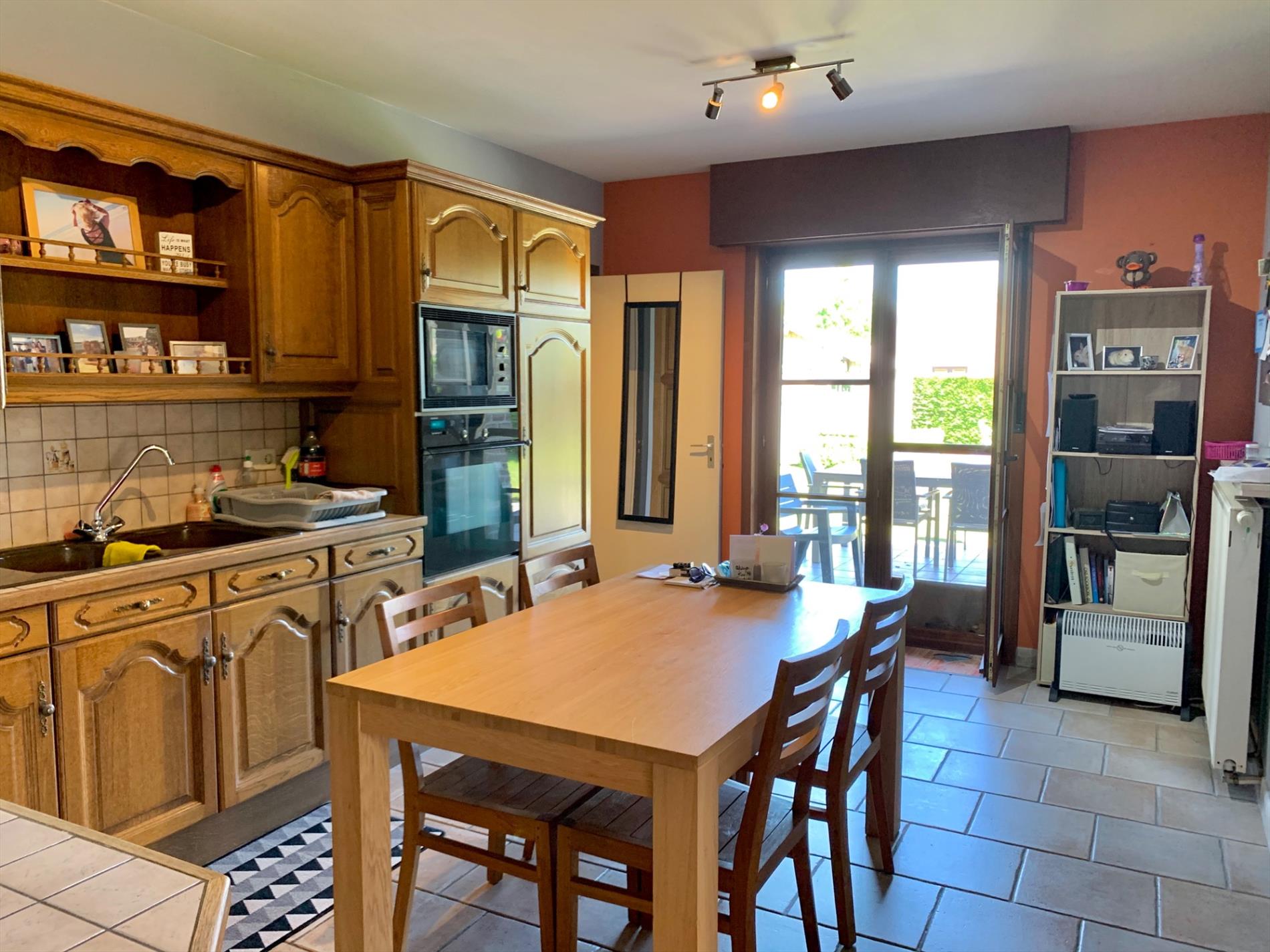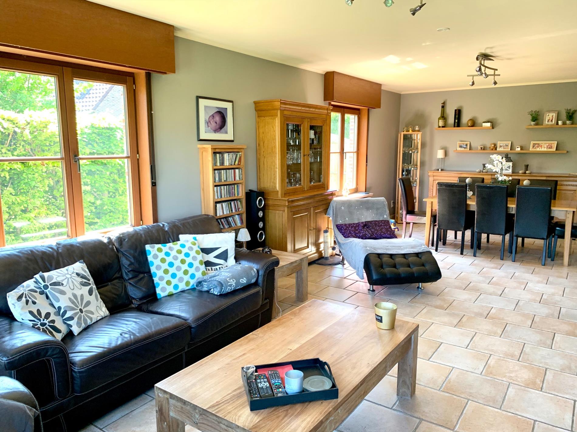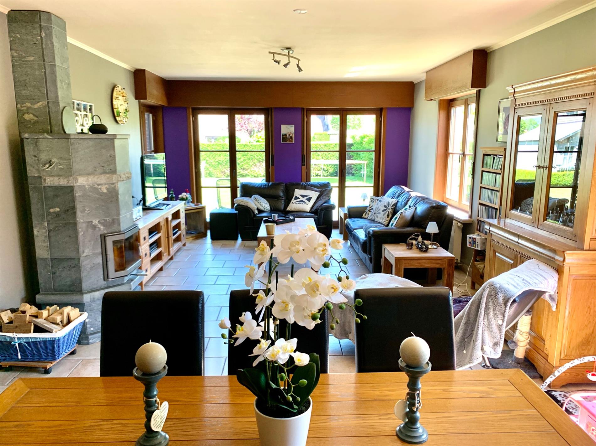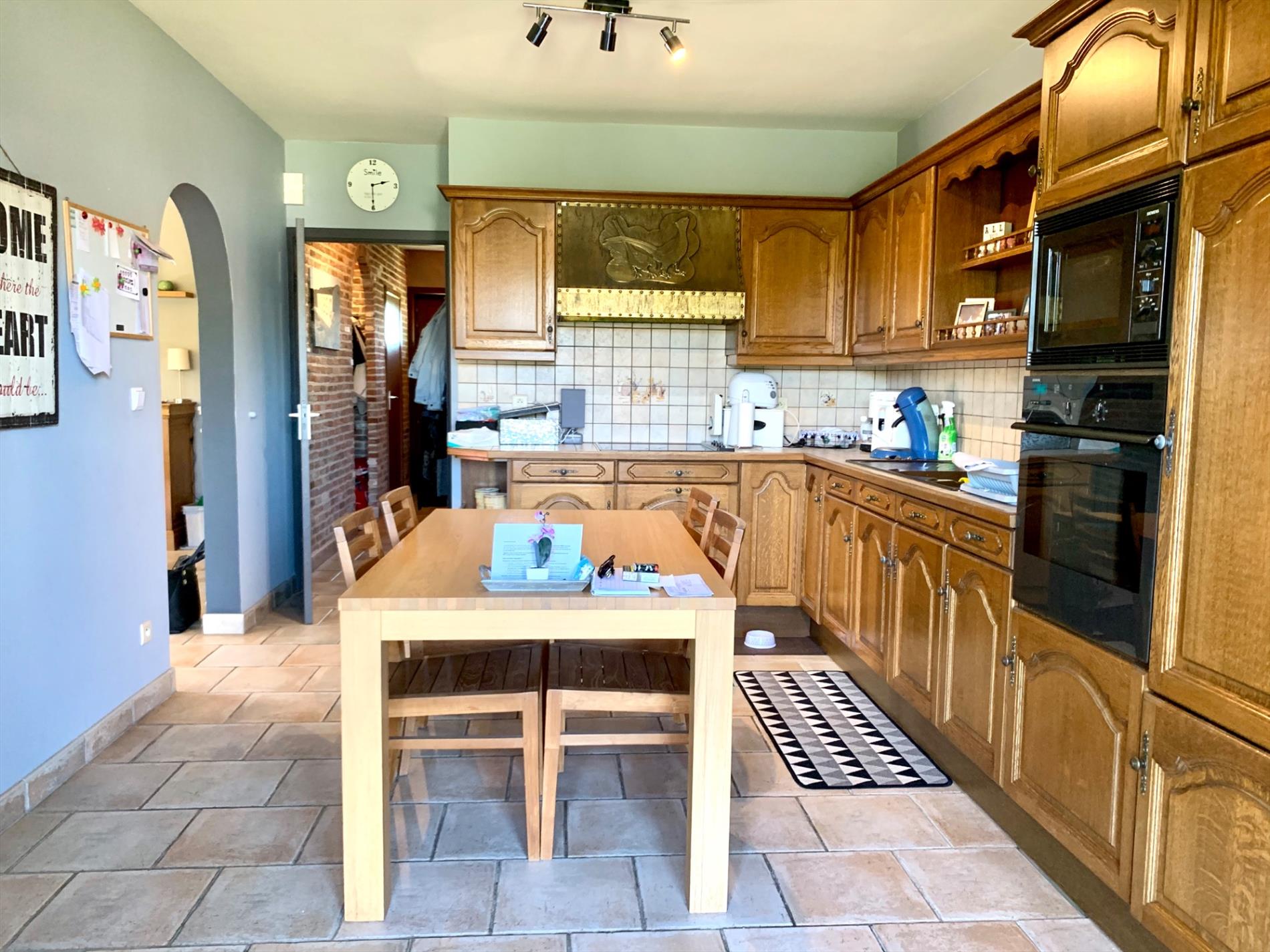 In de zonovergoten woonkamer is een speksteenhaard voorzien, maar toch is er overal ook aardgas. Aangrenzend heeft u de half open keuken met aansluitend een grote berging met extra douche, lavabo en aansluiting voor wasmachine en droogkast. Van hieruit kan u ook de garage bereiken.