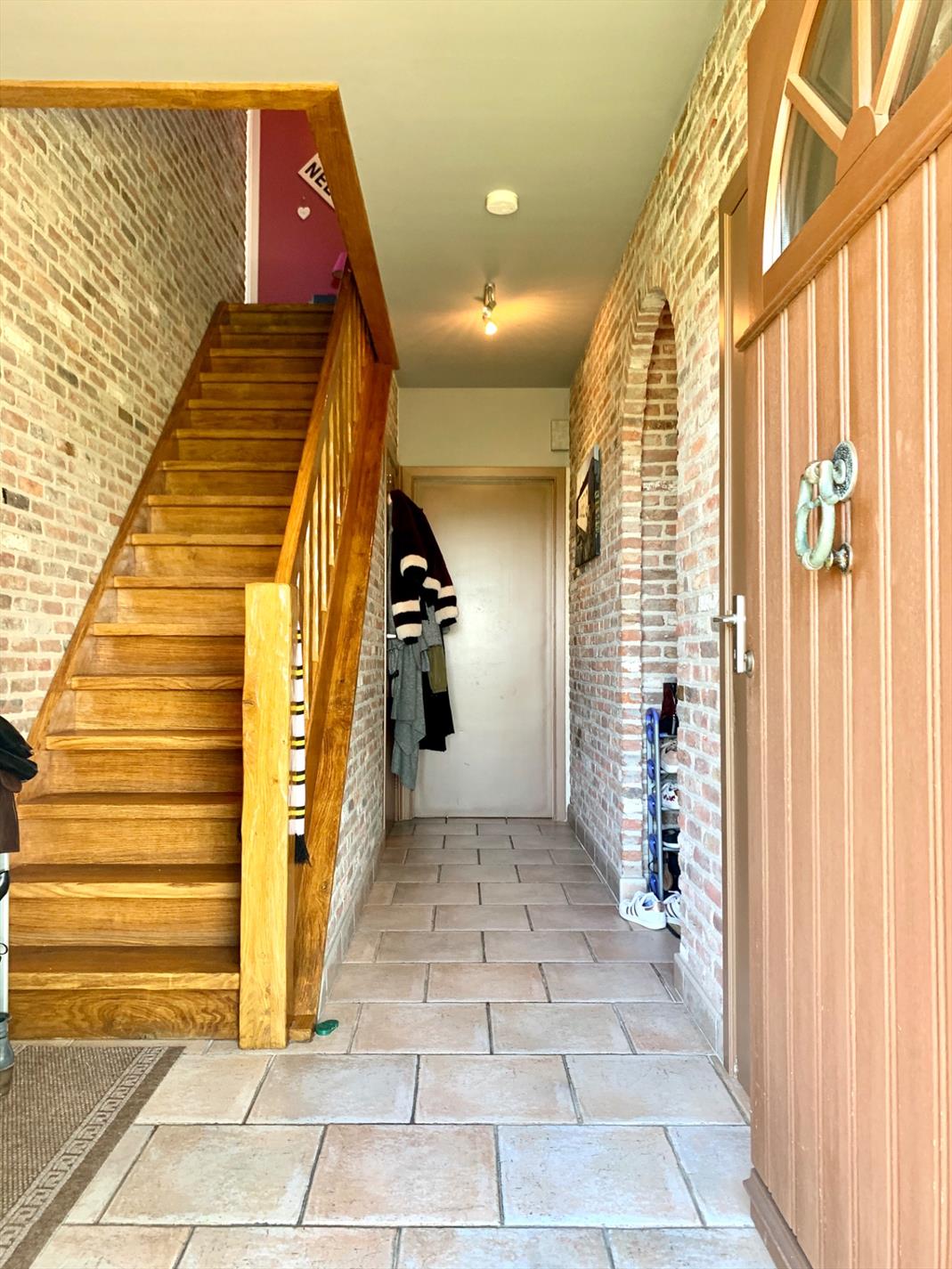 In de inkomhal kan u het gastentoilet en de grote, droge (wijn)-kelder vinden. Aan de andere zijde bevindt zich de eerste slaapkamer, nu ingericht als bureauruimte en kan evengoed een praktijkruimte worden.