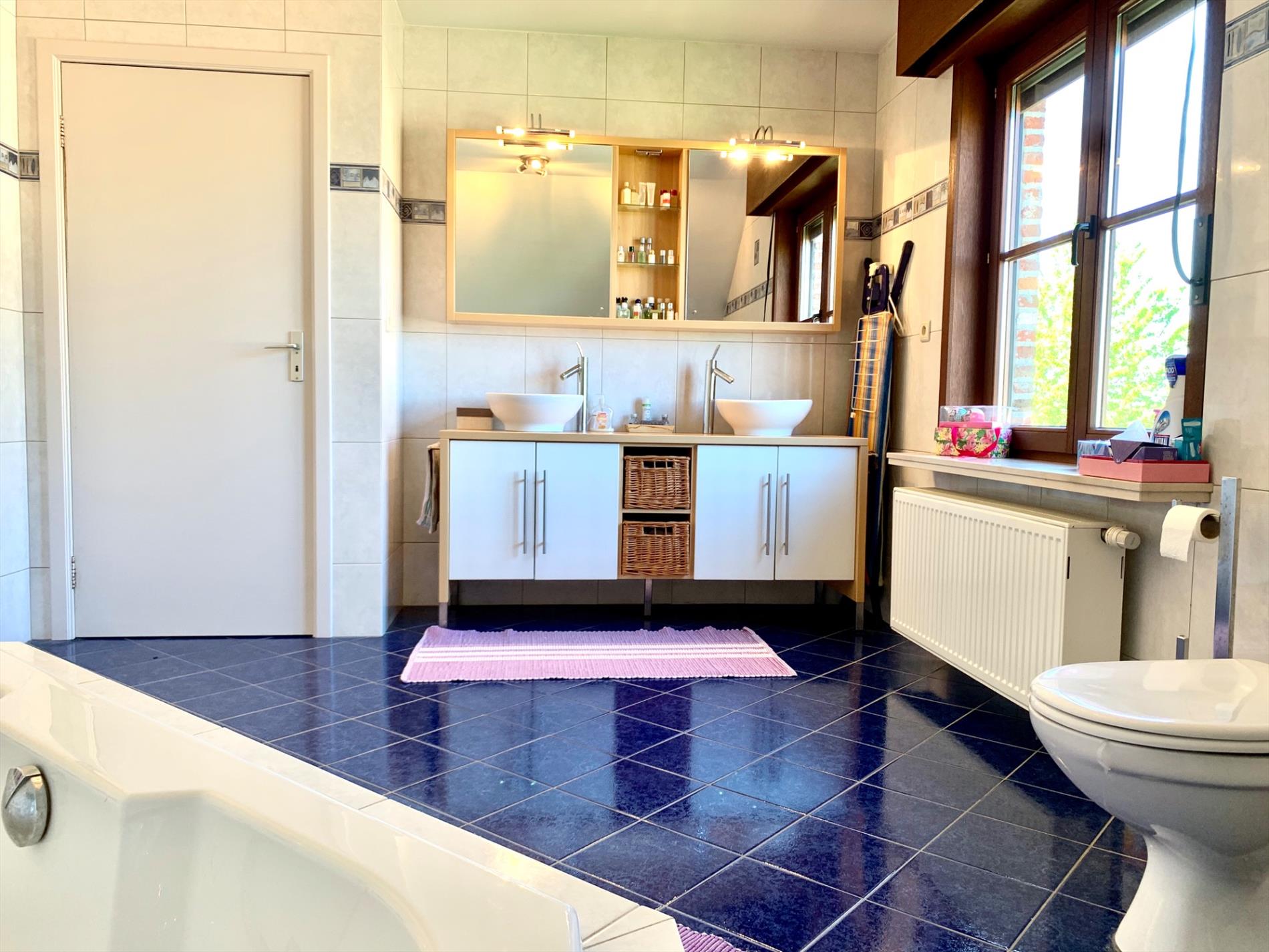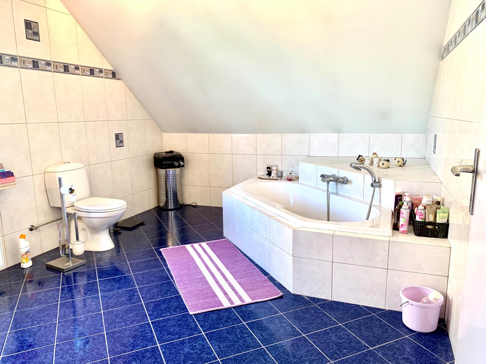 Op de eerste verdieping bevinden zich nog 3 ruime slaapkamers, een mega grote badkamer met ligbad, dubbel lavabomeubel en 2de toilet. Er is ook nog een extra kleine kamer die toegang geeft naar de volledig geïsoleerde zolder waar nog een 5de kamer kan gecreëerd worden. (Of de kleine kamer als babykamer of bureau)