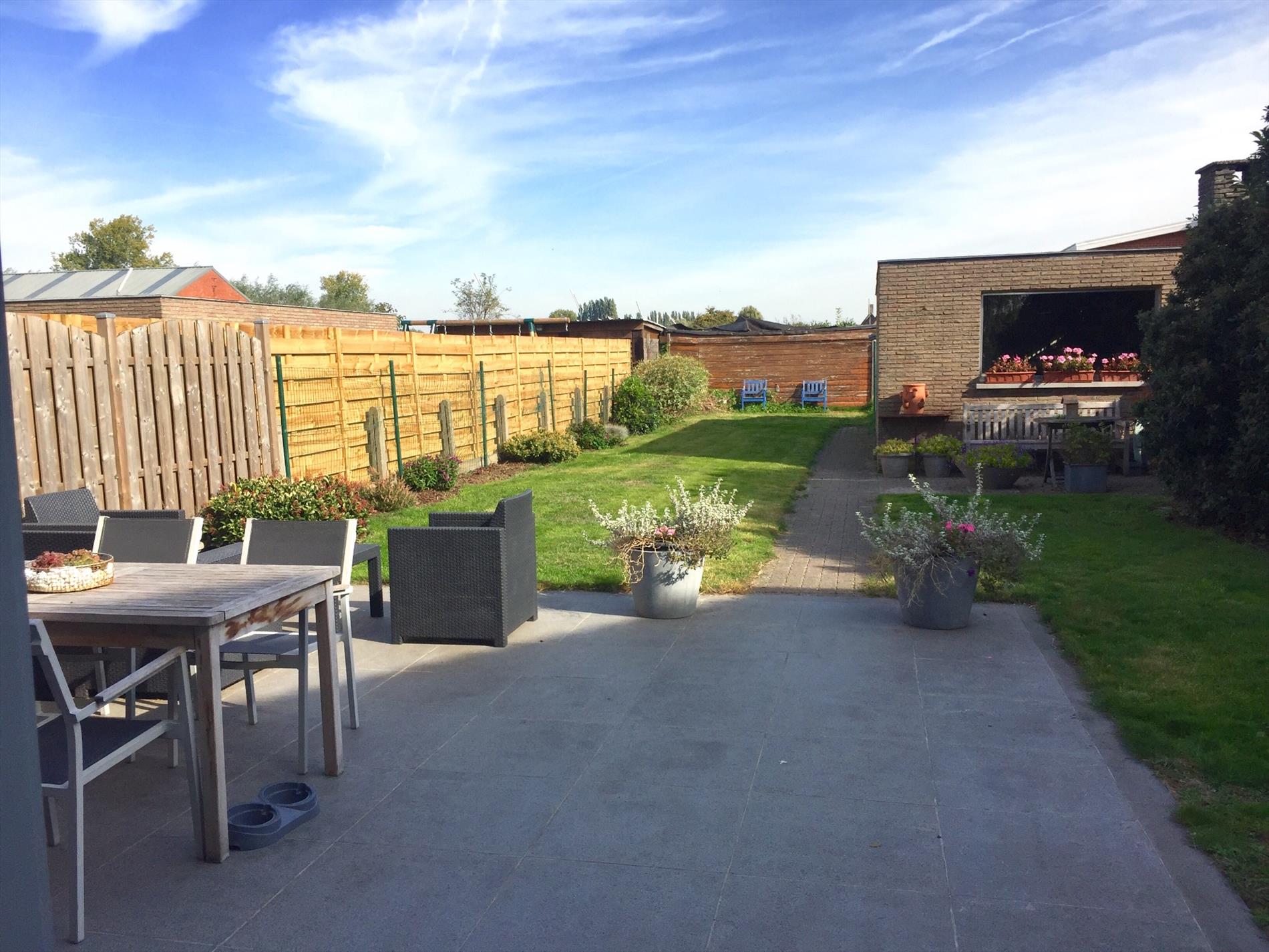 De tuin achteraan is super gezellig en heeft de hele dag door zon. Aan de woning ligt een mooi betegeld terras dat uitgeeft op de lange tuin. Aan de kant van de garage is een knus hoekje voorzien. Via het achterpoortje gaat u naar de garage waar u ook een aparte uitrit heeft. Voor meer info: 0474/966 222 of info@immo-home.be Volg ons op FB en Instagram: Immo-Home Lochristi
