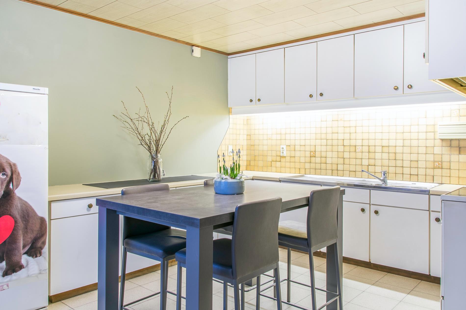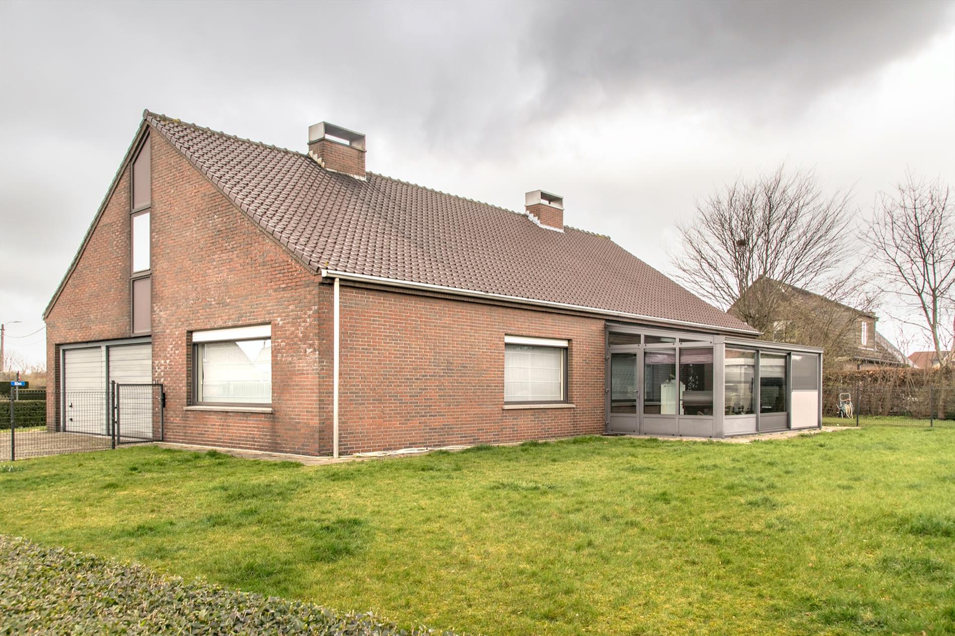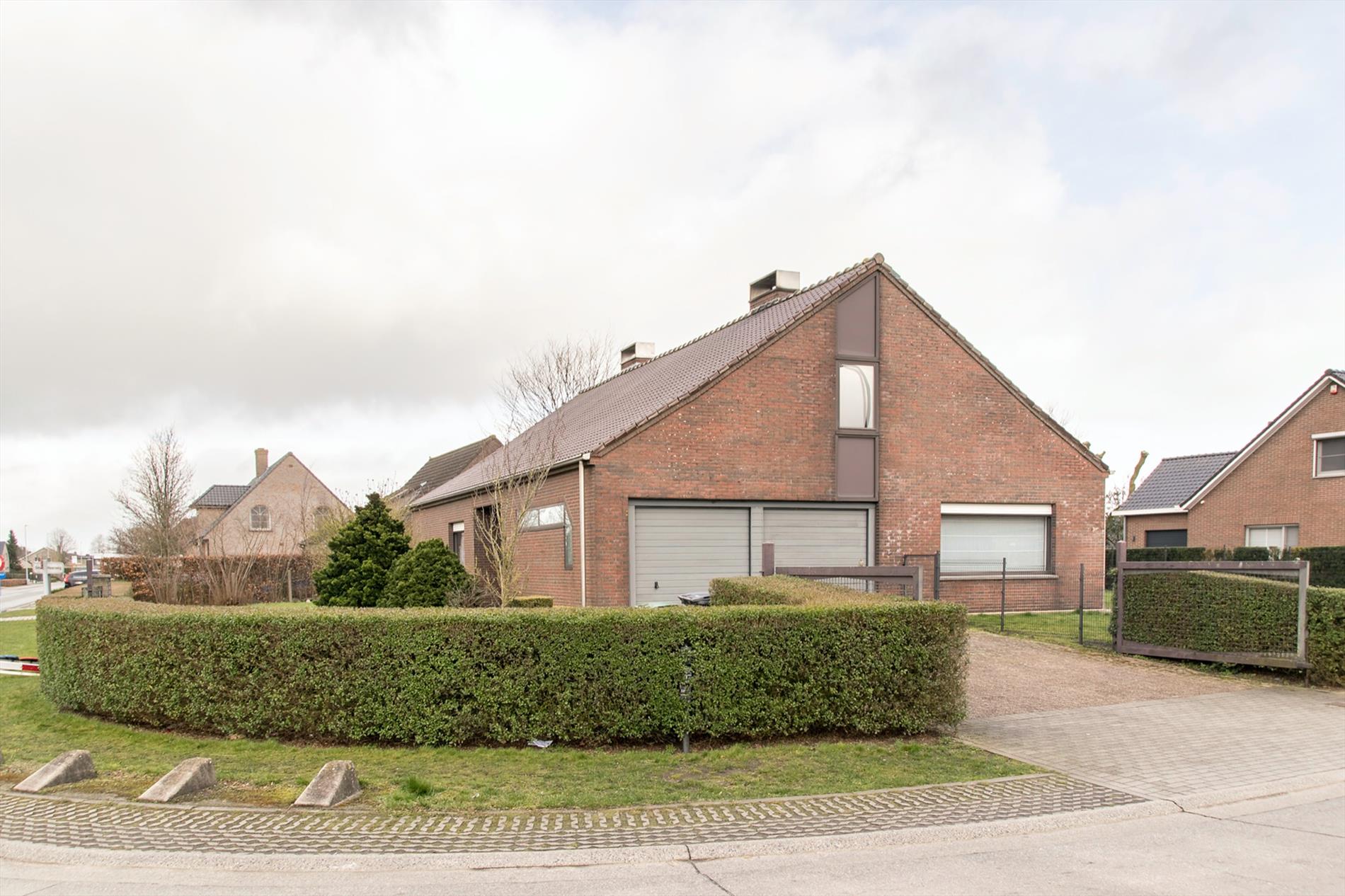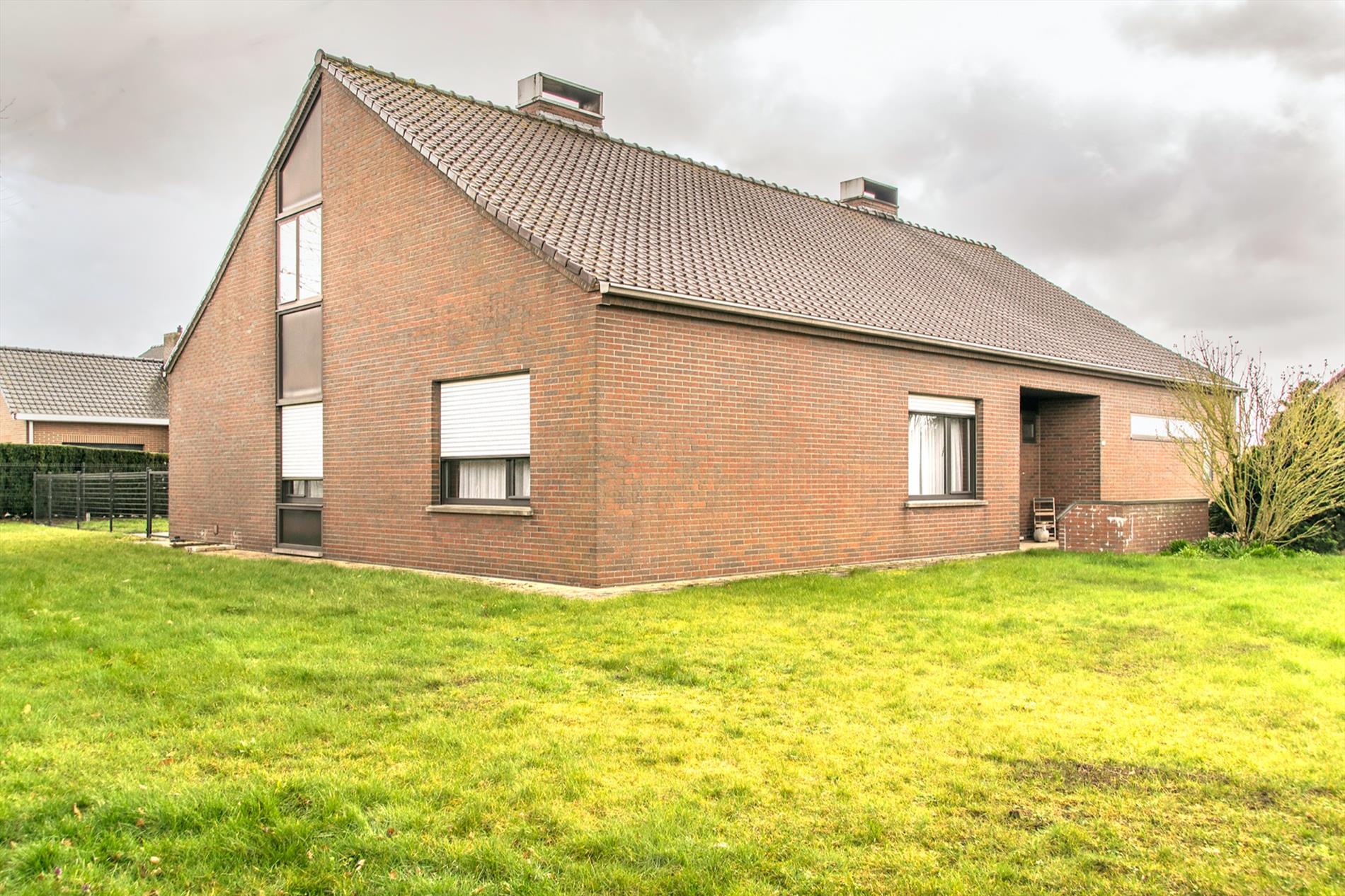 Deze perfect gelegen OB (1058 m2, met maar liefst een bew. opp van 399 m2) vormt een echte opportuniteit voor wie op zoek is naar ruimte en die naar eigen smaak de bovenverdieping verder kan inrichten. Het gelijkvloers is opgebouwd rond de centraal gelegen inkomhal, voorzien van ingemaakte kasten. Deze verwelkomt je in een open sfeer, met toegang tot bijna alle ruimtes van het gelijkvloers. Te beginnen met het gastentoilet en de leefruimte, maar uiteraard ook tot de drie ruime slaapkamers en de mooi gerenoveerde badkamer (met een tweede toilet, modern badkamermeubel en een groot ligbad mét bubbels !). De ruime woonkamer baadt in het licht door de grote raampartijen en de ingewerkte houtkachel zorgt voor nog meer gezelligheid. Aansluitend bevindt zich de ruime keuken met daarnaast een koele berging. Via een brede gang (incl. ingemaakte kasten) bereik je de wasplaats en de sfeervolle veranda waarin het op elke dag van het jaar heerlijk vertoeven is. De extra bonus bevindt zicht op de eerste verdieping : hier is een gigantische open ruimte, waar door de oerdegelijke constructie (overal betonnen gewelven, massieve dakconstructie) de weg open ligt voor al je dromen (praktijkruimte, extra kamers,2de badkamer...) Er is een trapgat voorzien dat uitkomt in de inkomhal ! Momenteel bereik je deze verdieping via een industriële metalen trap vanuit de dubbele garage (met 2 elektrische poorten). De grote, zuidgerichte tuin is volledig afgesloten. Grondwater 13M /regenput 15 000 L /rolluiken.
